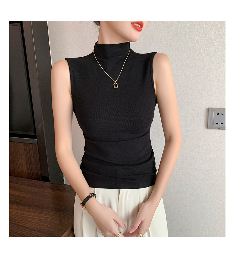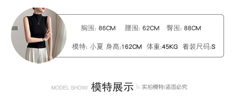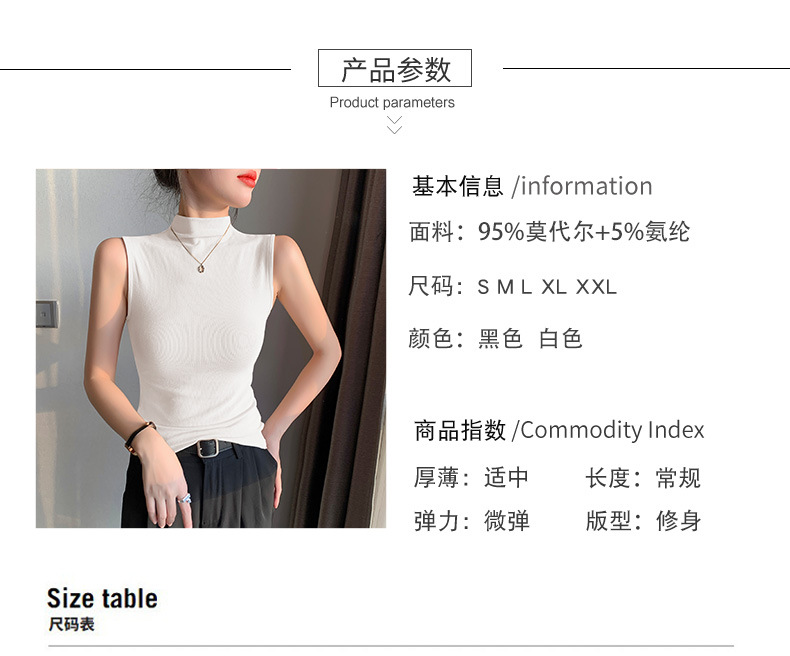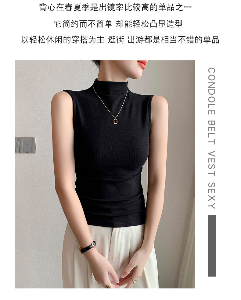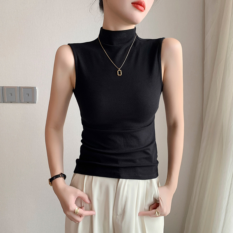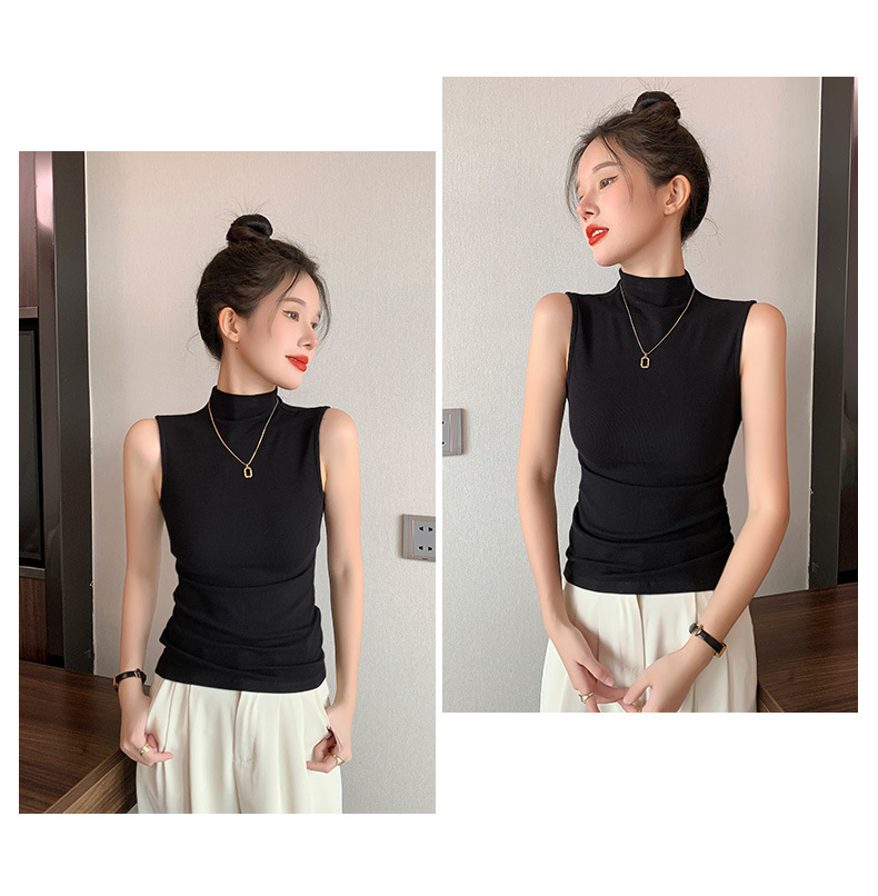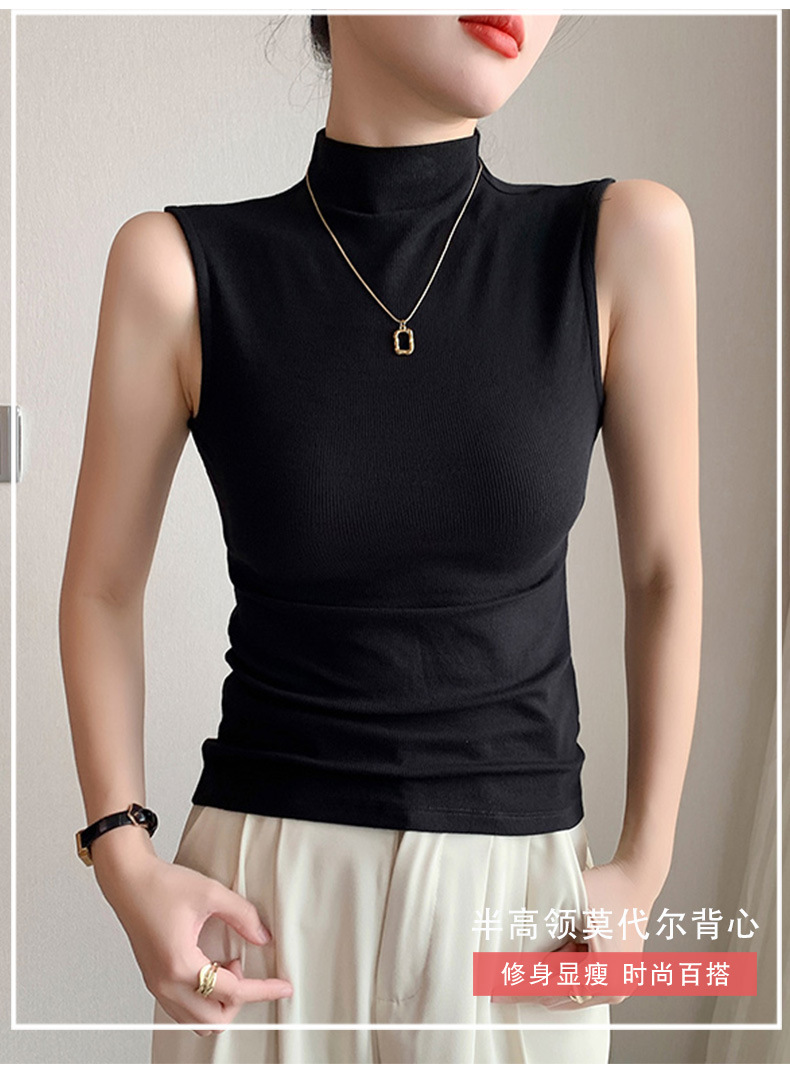 여자 하프 하이 칼라 조끼 2025 년 봄과 여름 새로운 블랙 모달 어깨 슬림-여성을위한 올 매치 민소매 탑