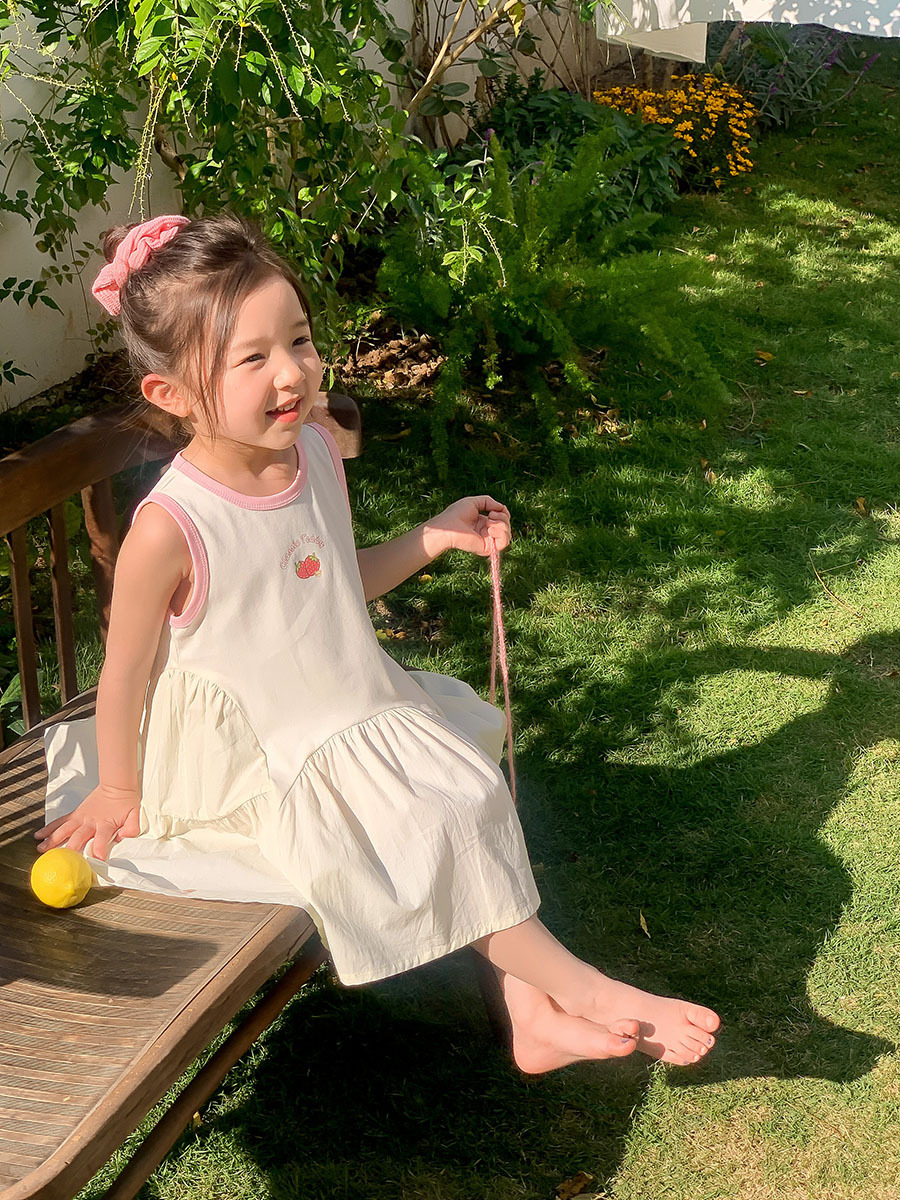여아 여름 민소매 원피스 2026 신상 아동복 한국 스타일 세련된 리본 화이트 민소매 원피스 면 원피스스토어 가기