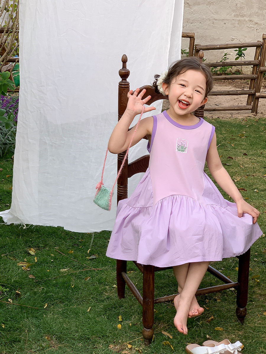 여아 여름 민소매 원피스 2026 신상 아동복 한국 스타일 세련된 리본 화이트 민소매 원피스 면 원피스