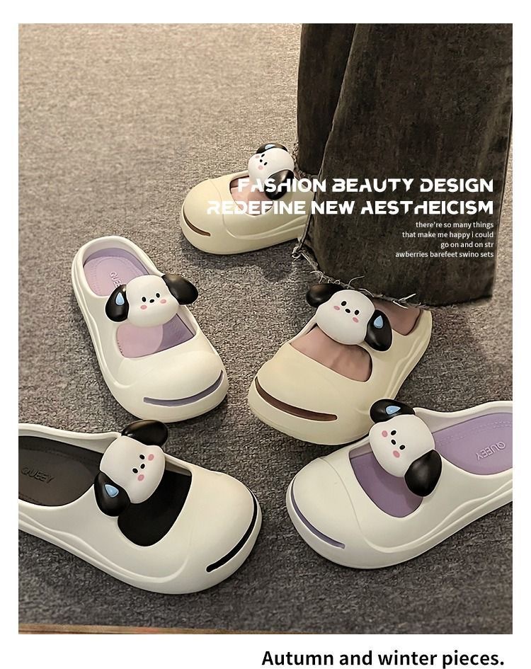 2025 새로운 스타일 Baotou 하프 슬리퍼 외부 착용 여름 여성 만화 강아지 두꺼운 단독 신발