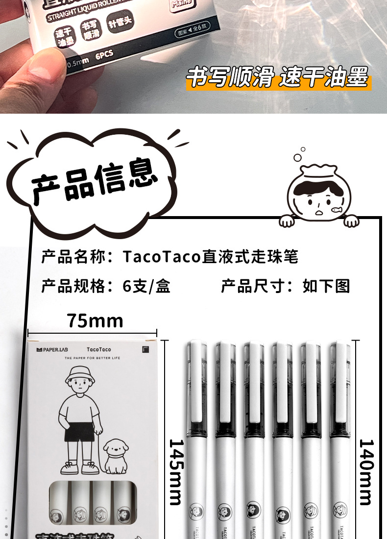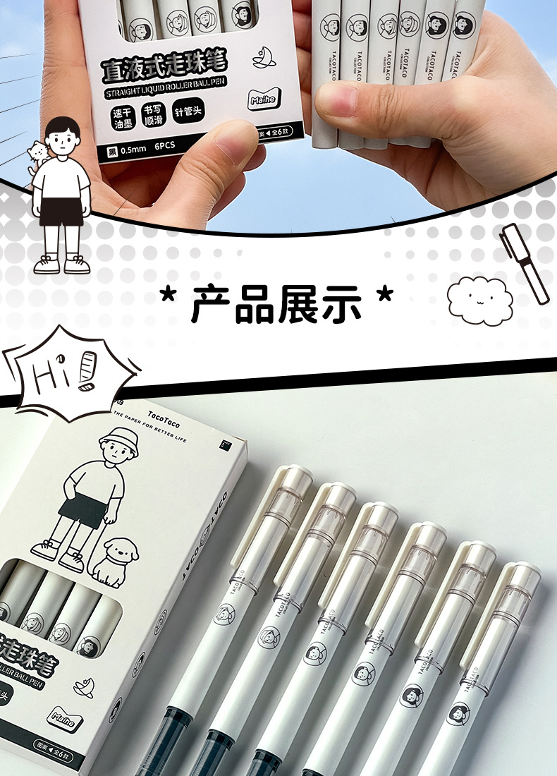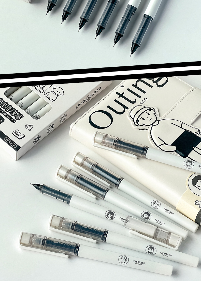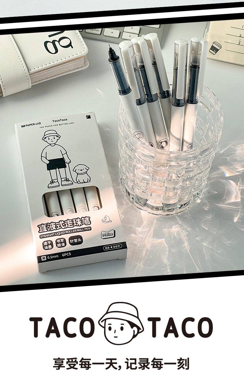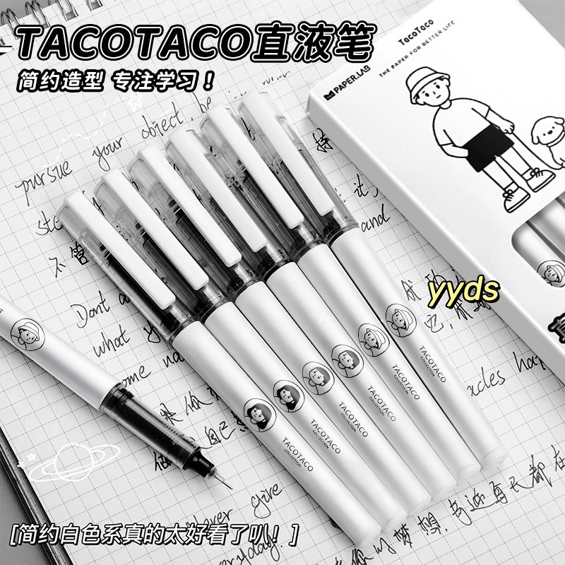 TacoTaco 스트레이트 액상 볼펜 고가 속건 니들 헤드 중성 펜 브러쉬 질문 펜 특수 시험 검정 펜