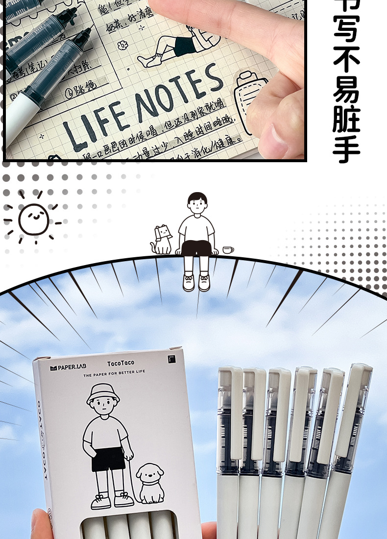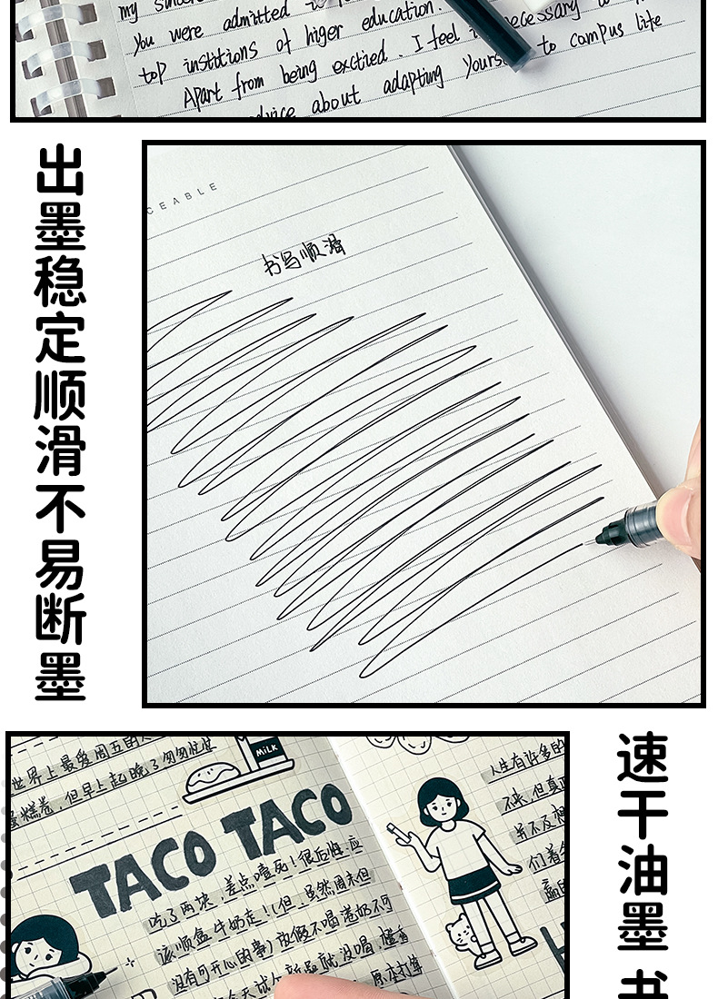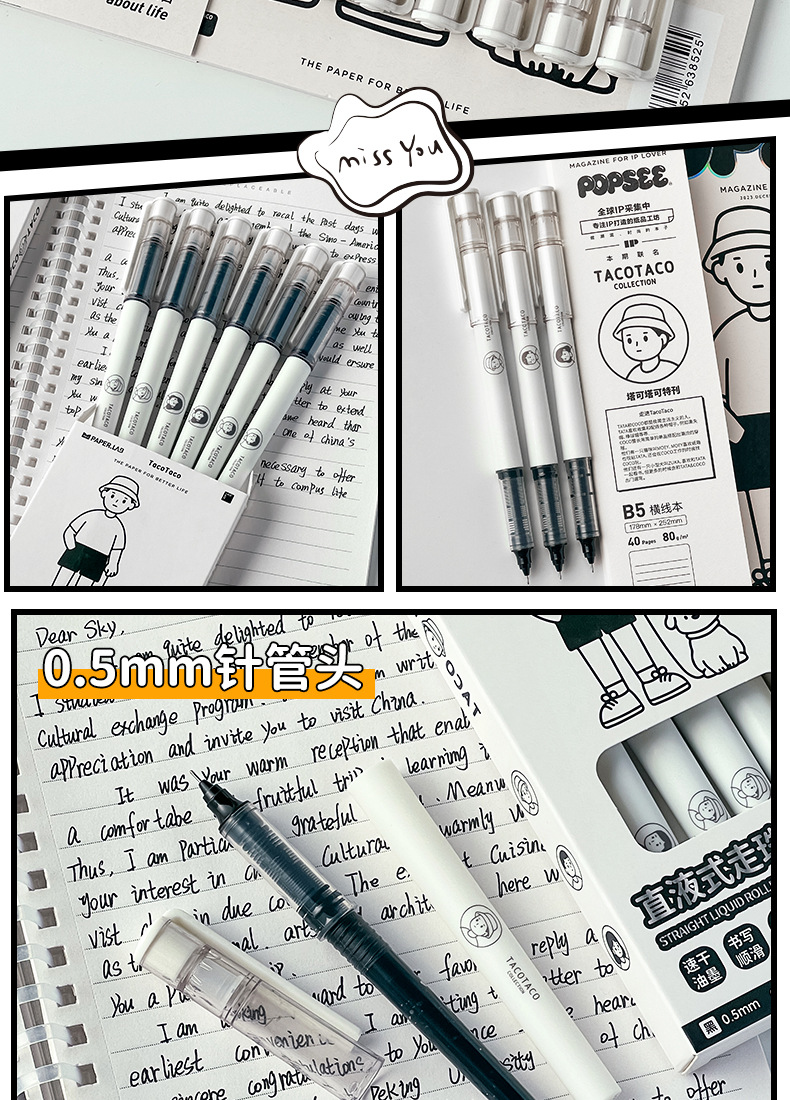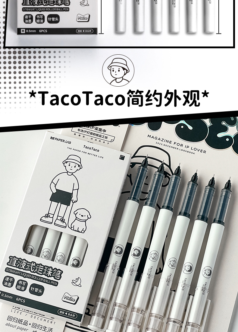TacoTaco 스트레이트 액상 볼펜 고가 속건 니들 헤드 중성 펜 브러쉬 질문 펜 특수 시험 검정 펜