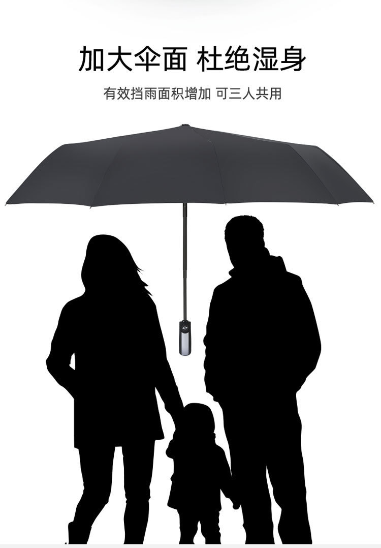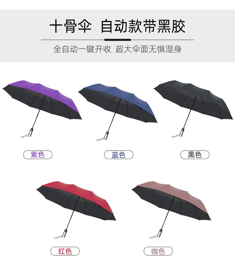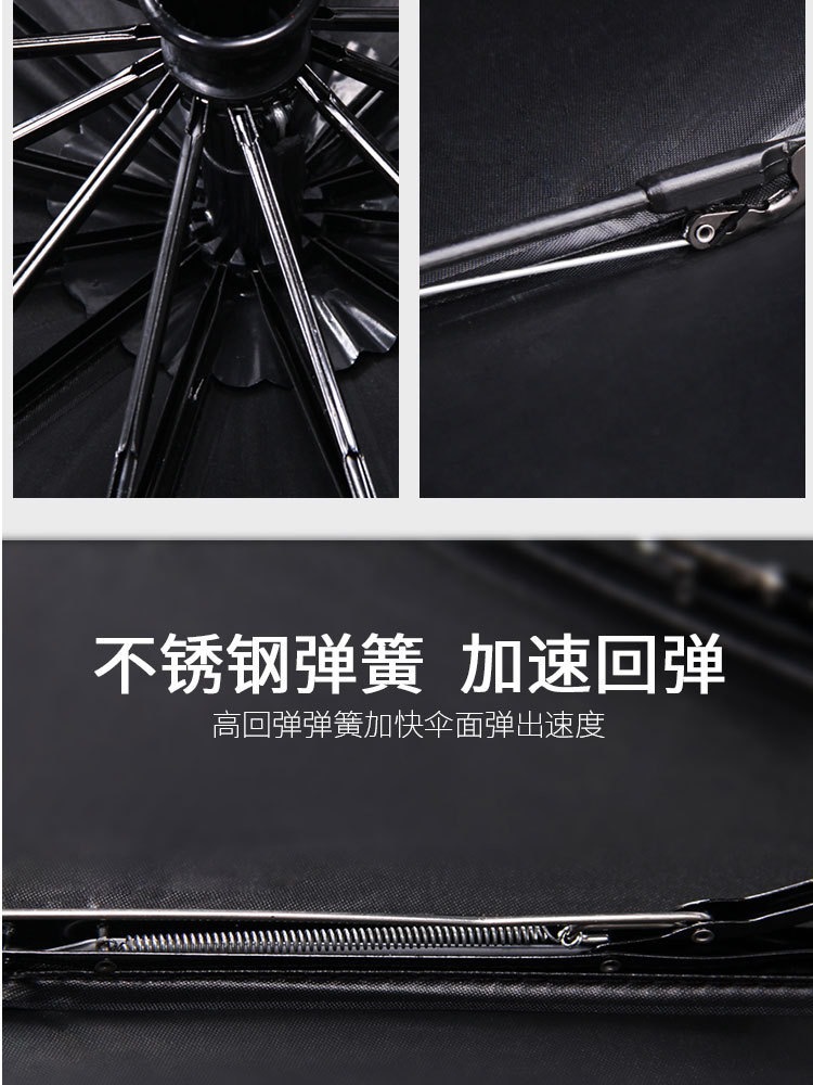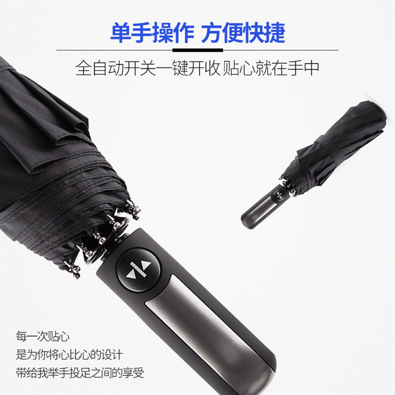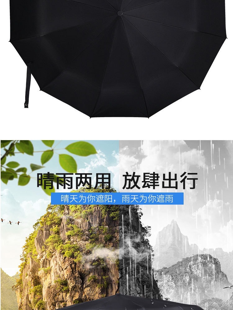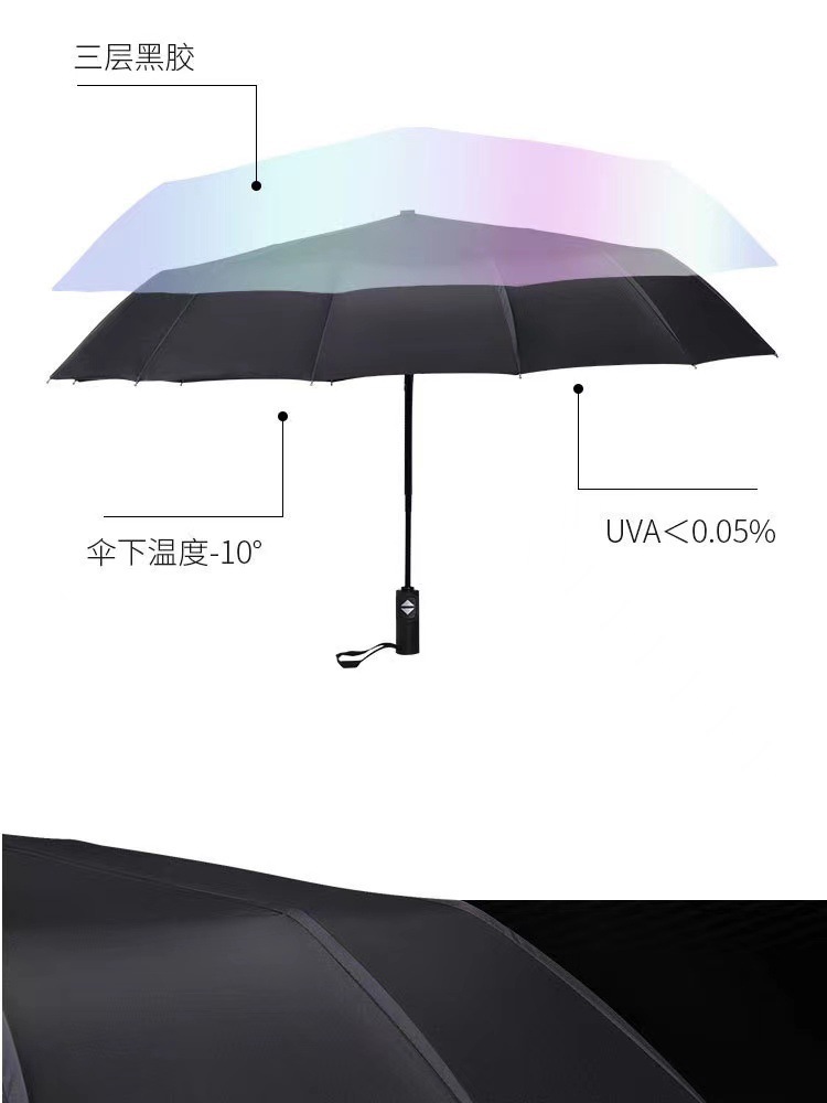 10단 완전 자동 양산/우산 광고용 우산 로고 인쇄 가능 대형 비즈니스 블랙 글로시 자외선 차단 접이식 우산스토어 가기