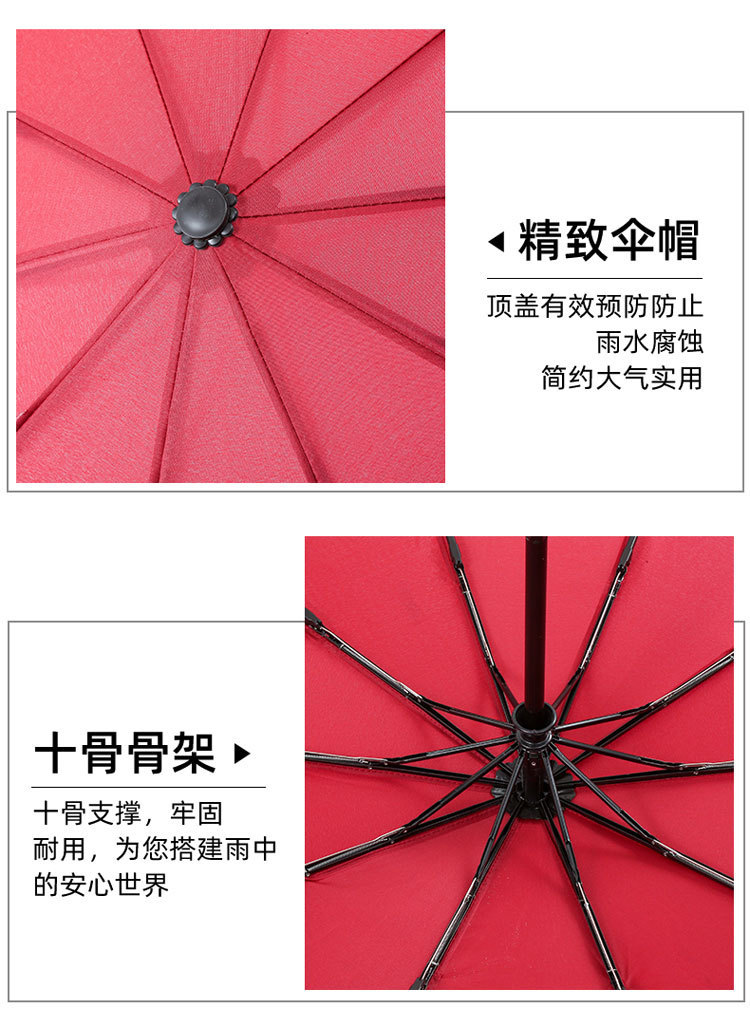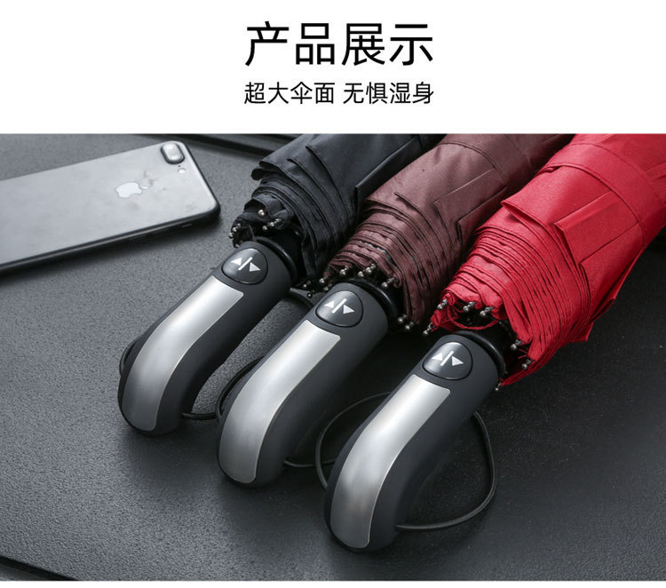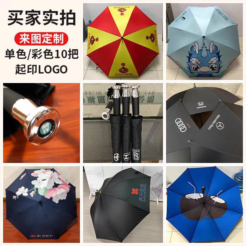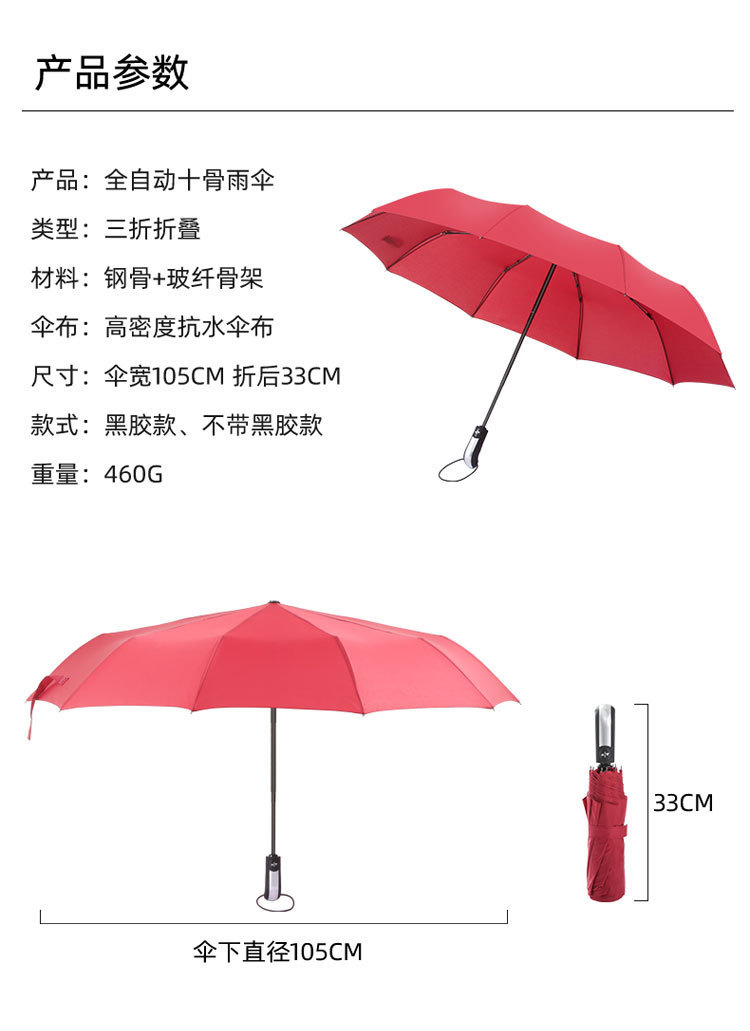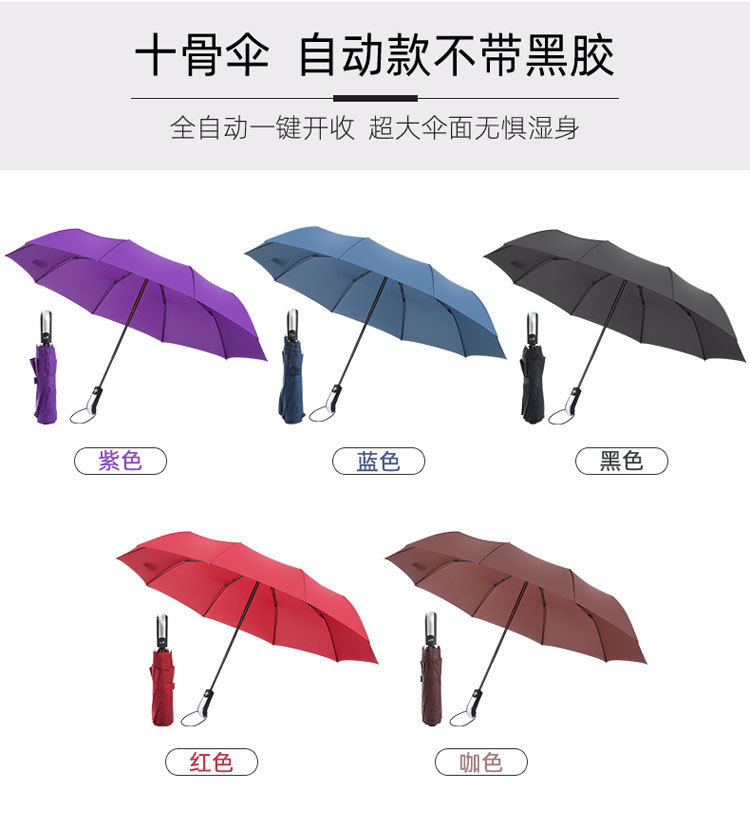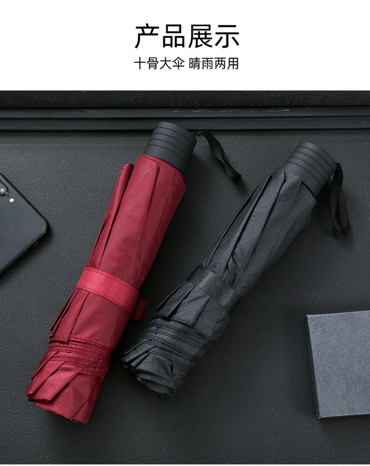 10단 완전 자동 양산/우산 광고용 우산 로고 인쇄 가능 대형 비즈니스 블랙 글로시 자외선 차단 접이식 우산스토어 가기