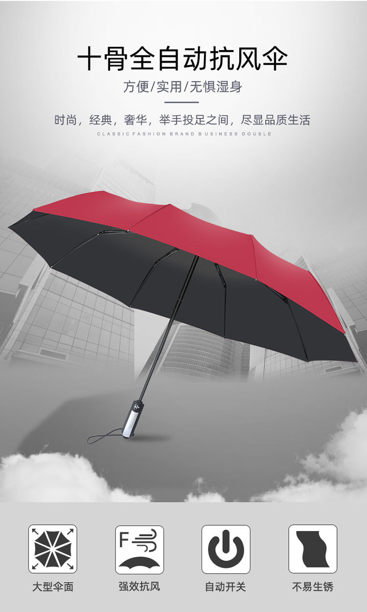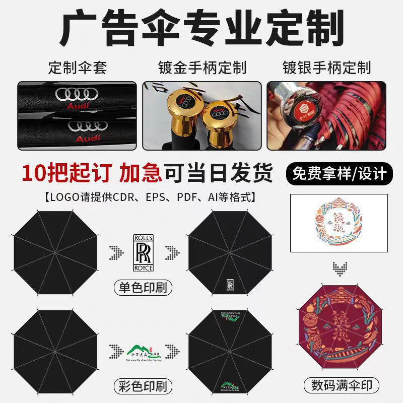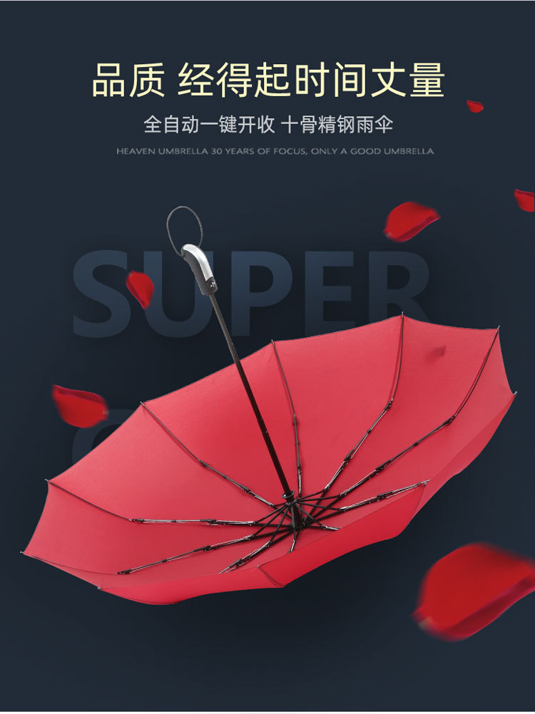 10단 완전 자동 양산/우산 광고용 우산 로고 인쇄 가능 대형 비즈니스 블랙 글로시 자외선 차단 접이식 우산