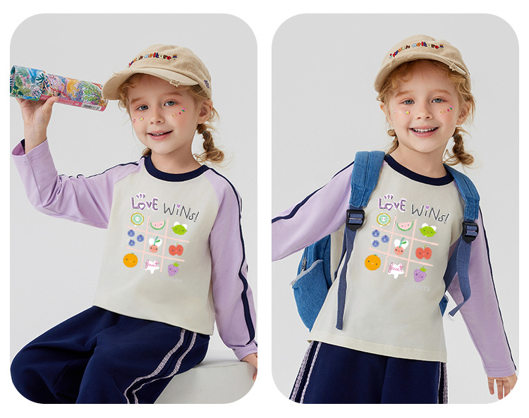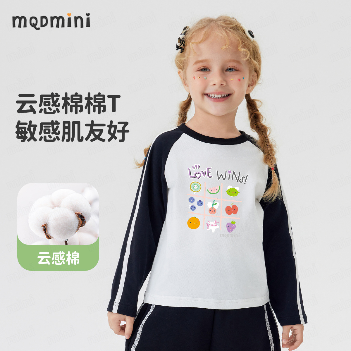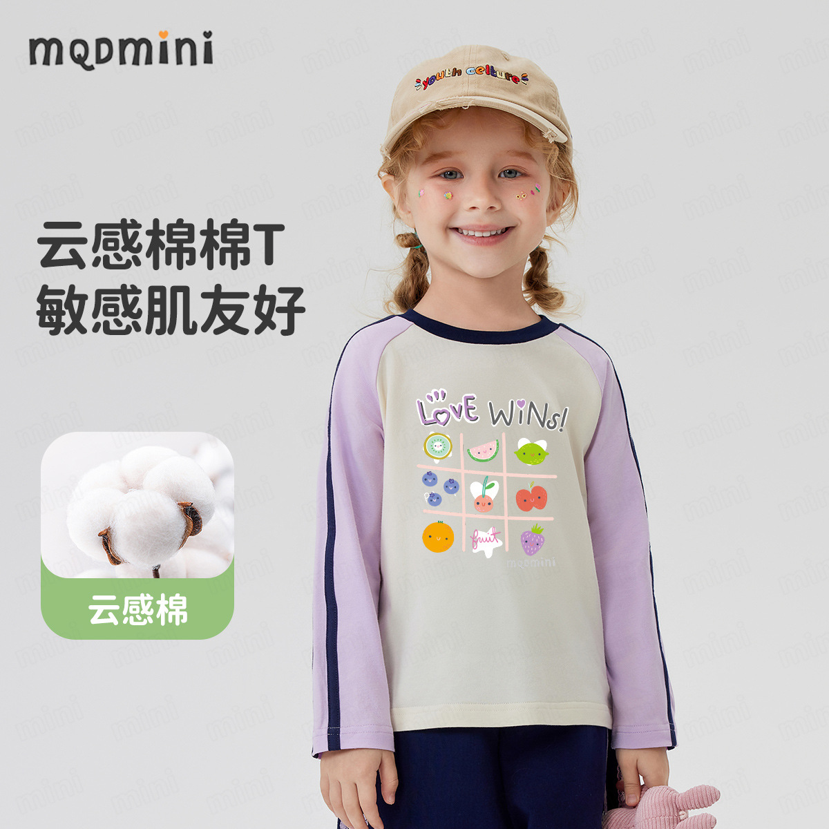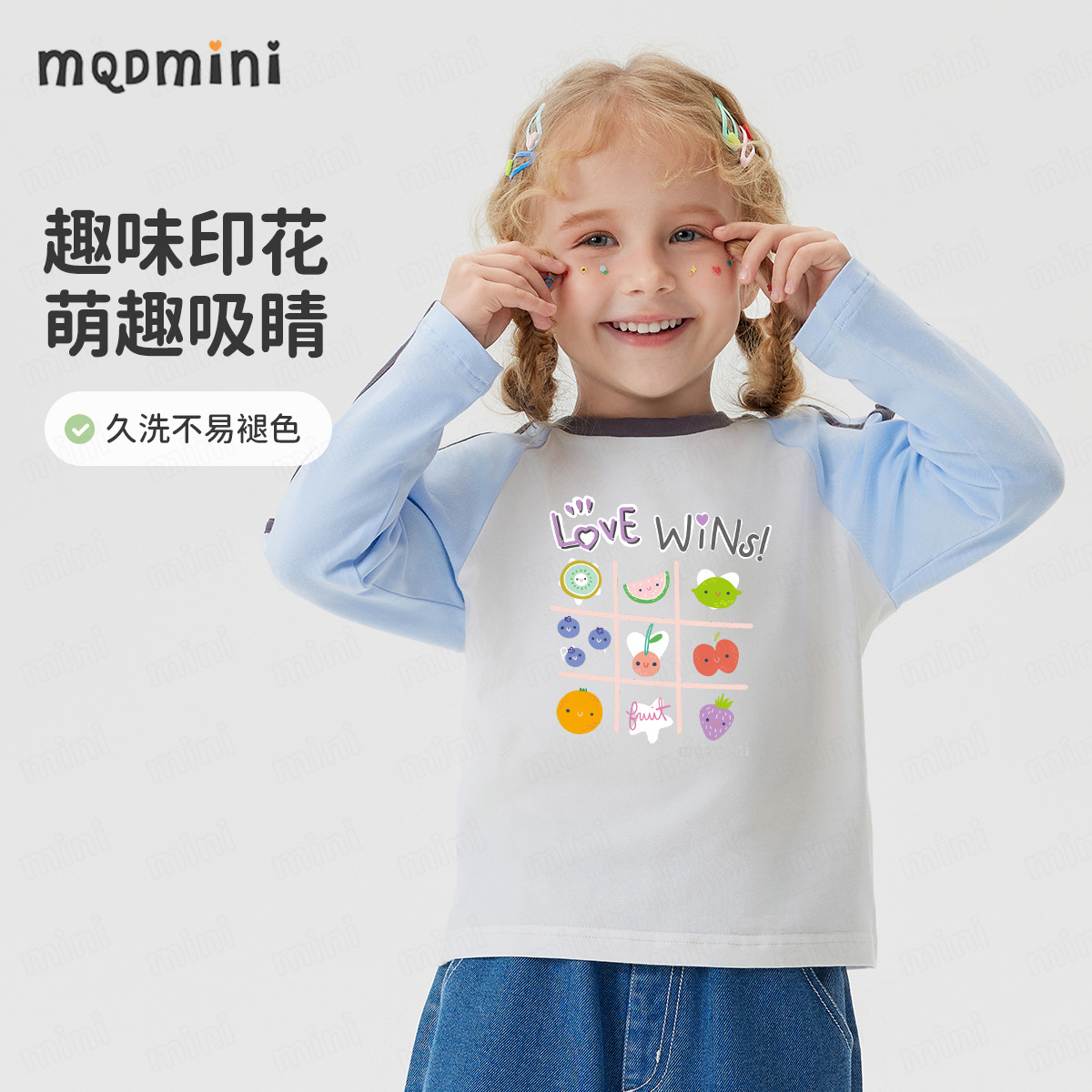 MQDmini 아동복 아동복 긴팔 티셔츠 소녀 프린트 크루 넥 탑 어린이 봄 옷베이스 셔츠 아기 옷스토어 가기