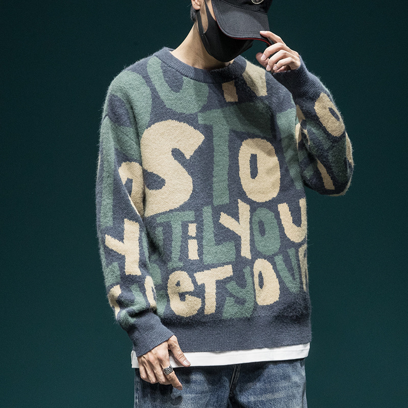 가을 겨울 레트로 스웨터 남성 루즈핏 트렌디 브랜드 라운드넥 니트웨어 빅사이즈 2026 겨울 두꺼운 니트 자켓 트렌드스토어 가기