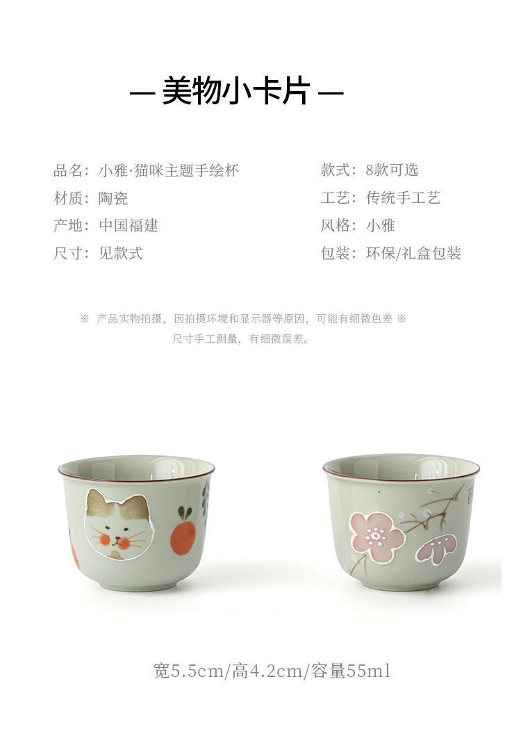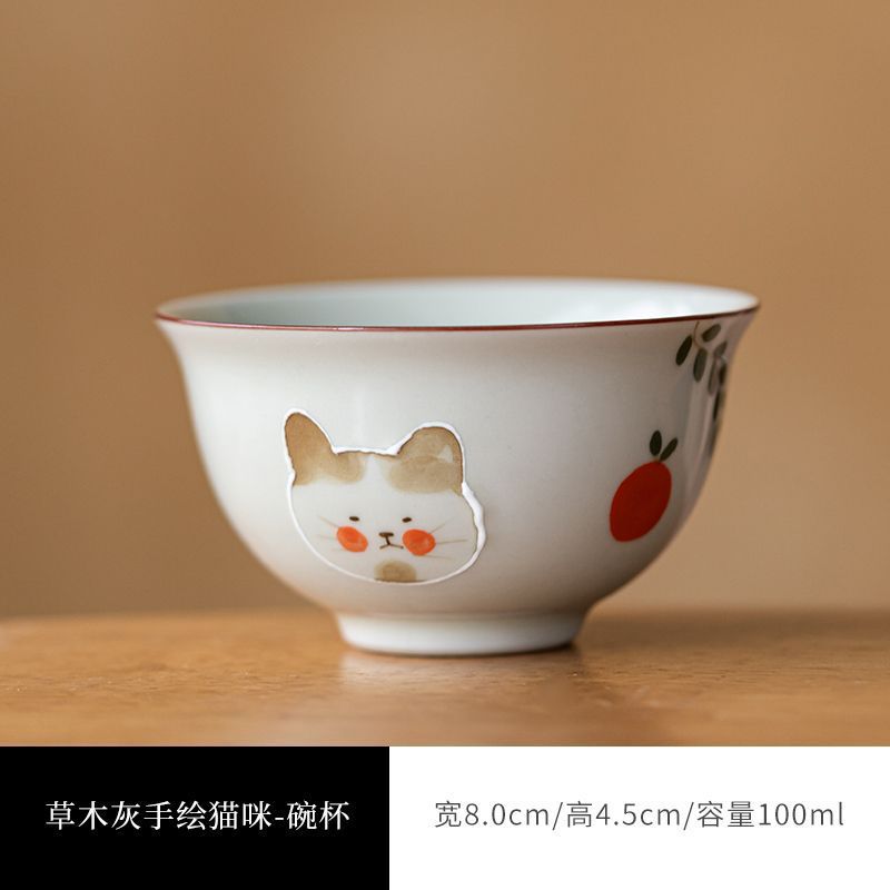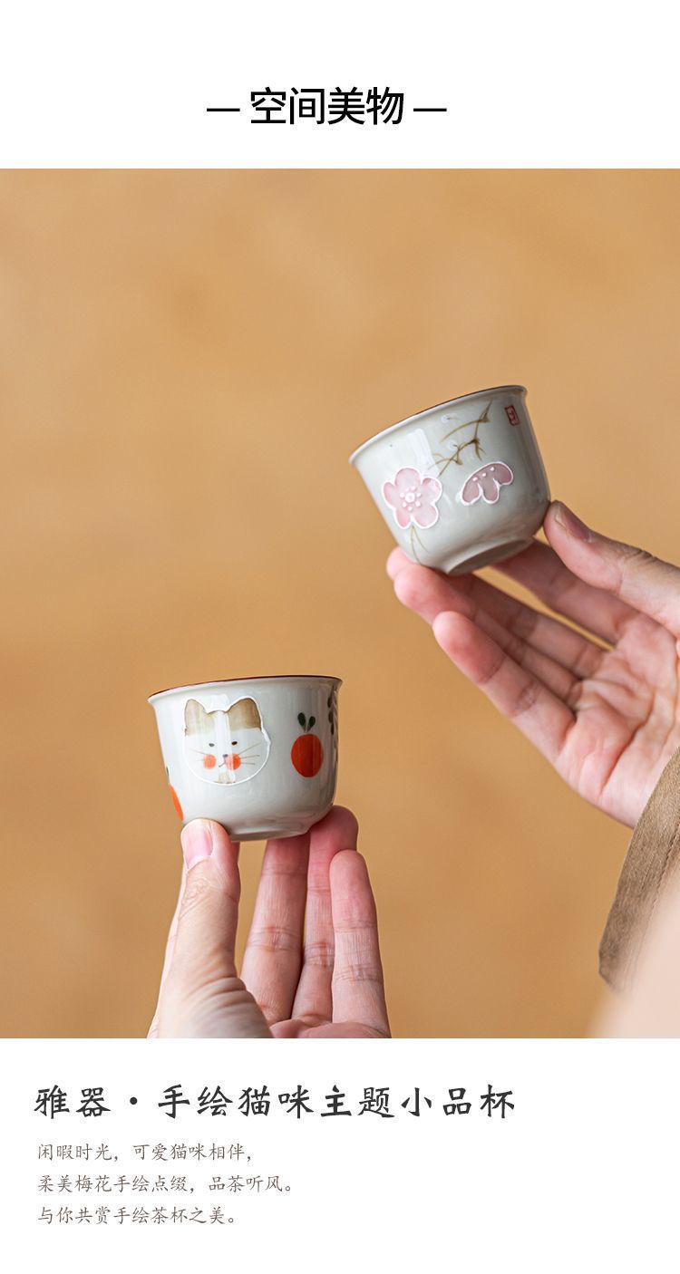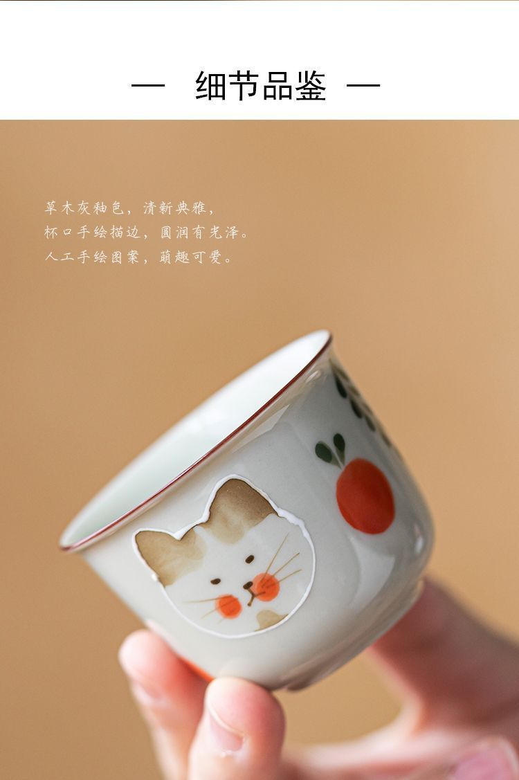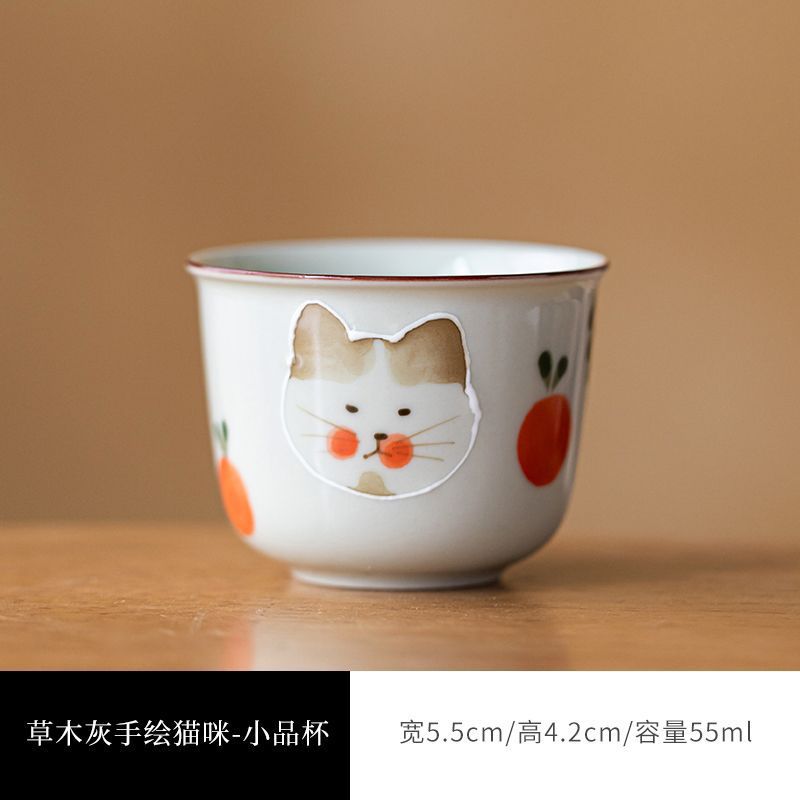 식물 재 유약 손으로 그린 고양이 마스터 컵 홈 쿵푸 차 세트 차 시음 컵 숙녀 귀여운 작은 차 컵스토어 가기
