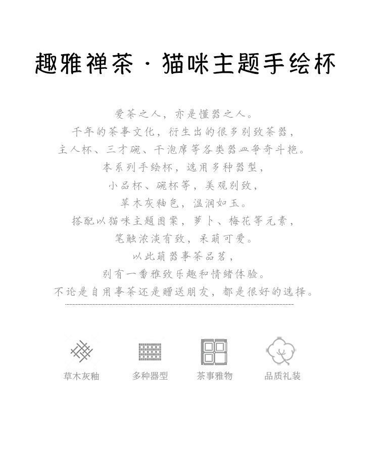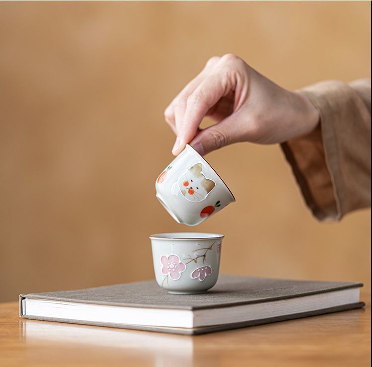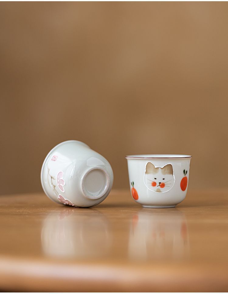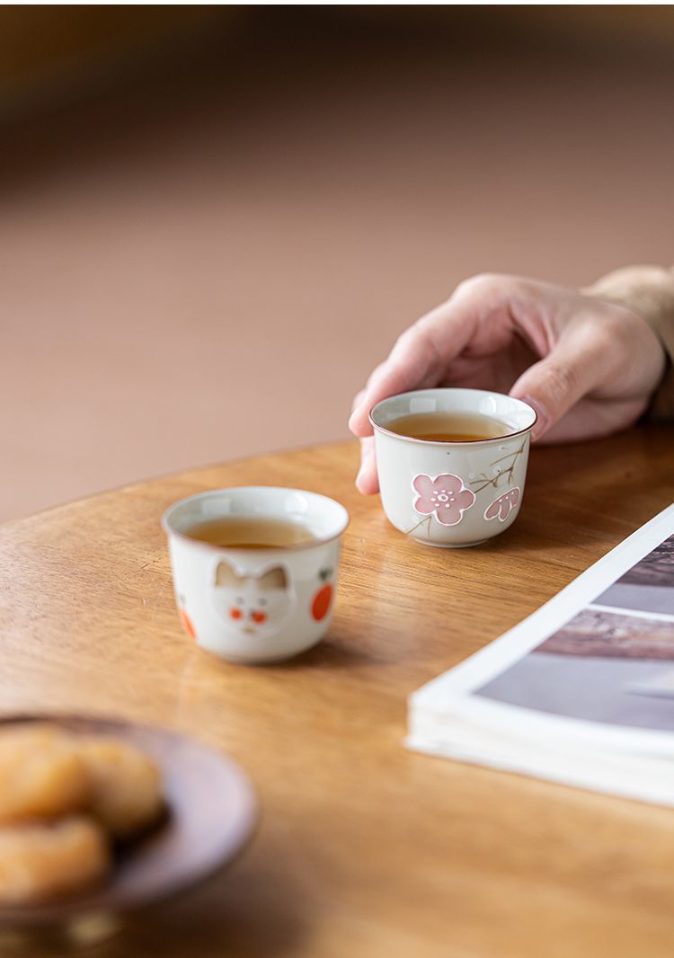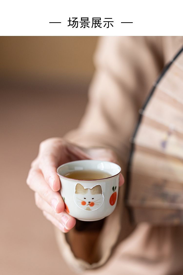 식물 재 유약 손으로 그린 고양이 마스터 컵 홈 쿵푸 차 세트 차 시음 컵 숙녀 귀여운 작은 차 컵스토어 가기