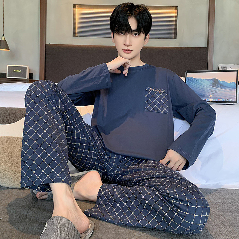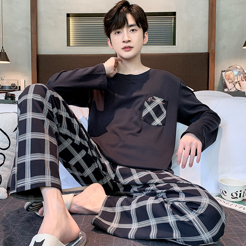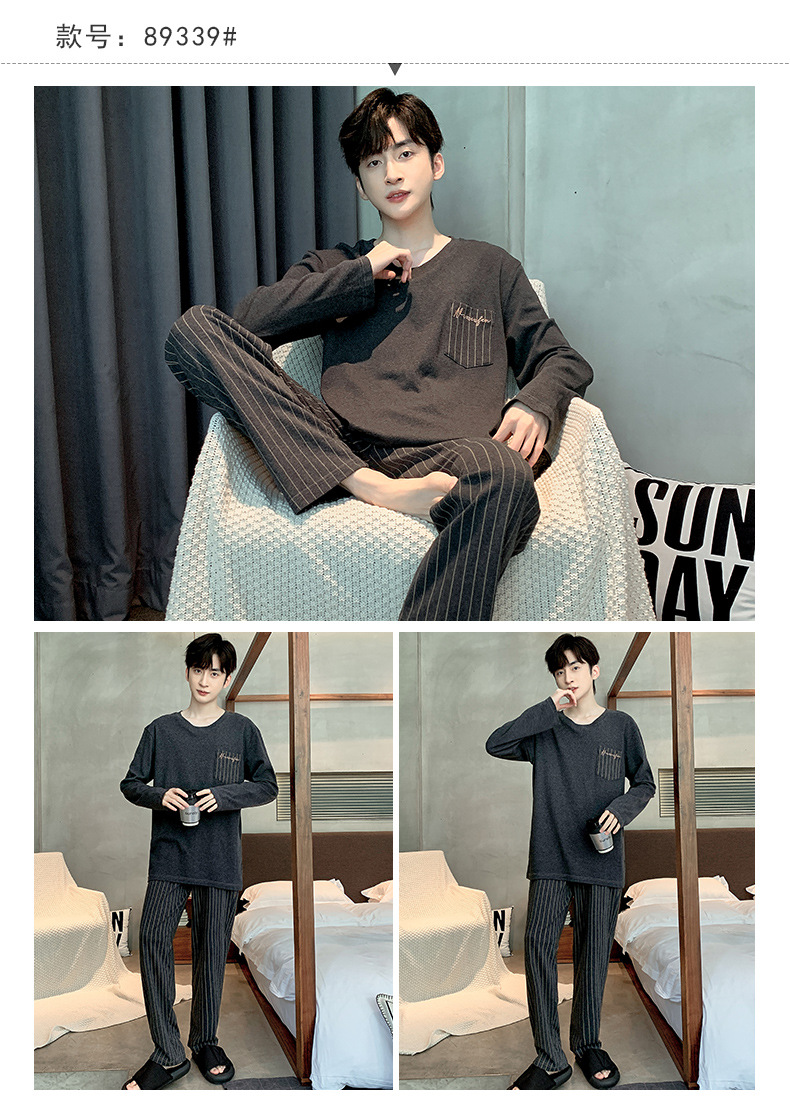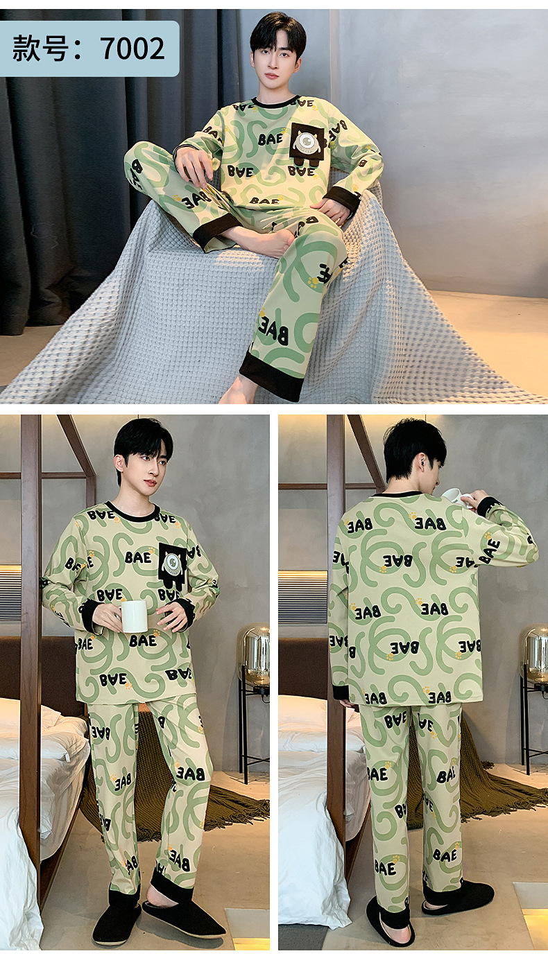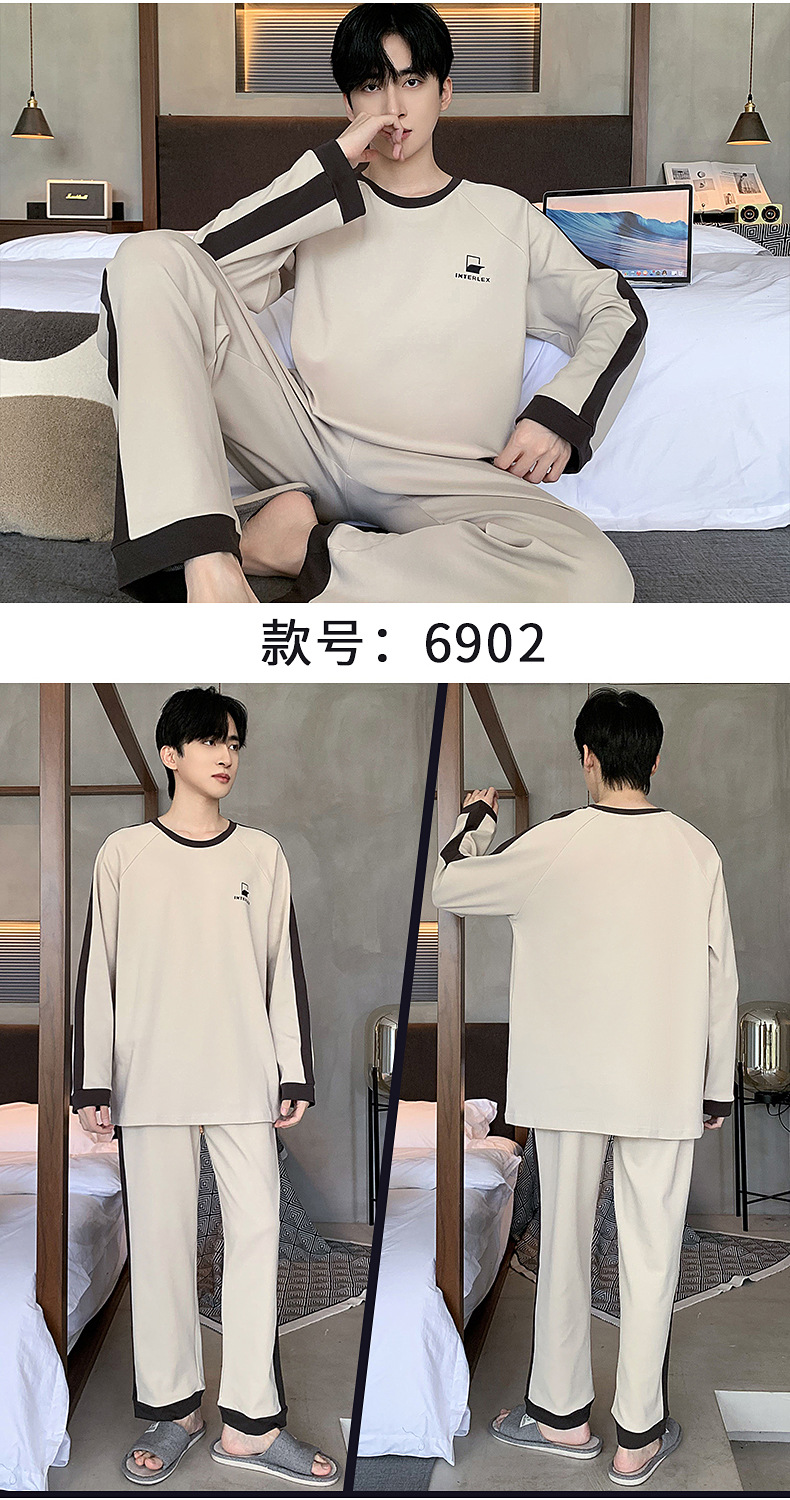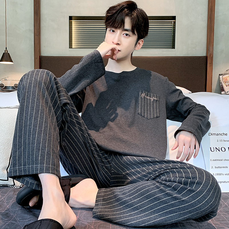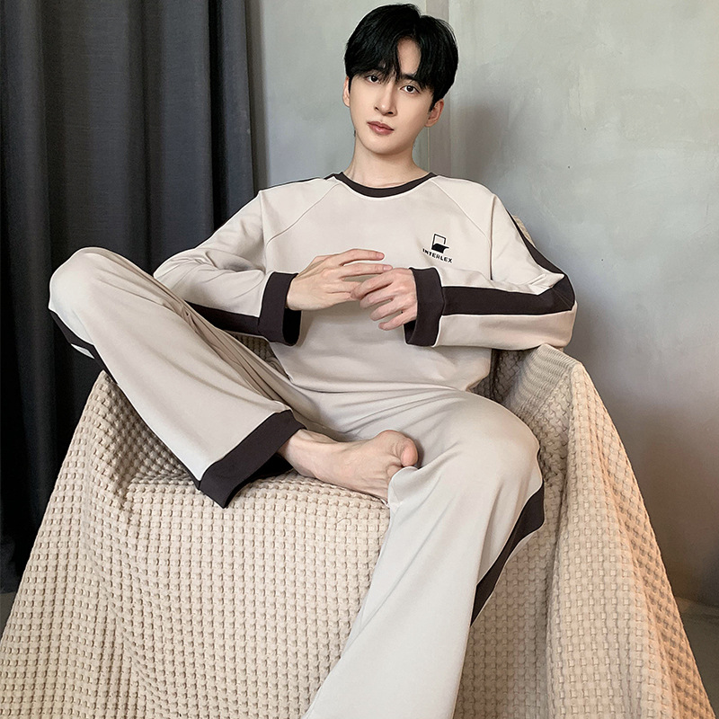 잠옷 남자의 봄과 가을 둥근 목 긴팔 청소년 캐주얼 외주 가정 옷 가을 느슨한 플러스 사이즈 세트스토어 가기