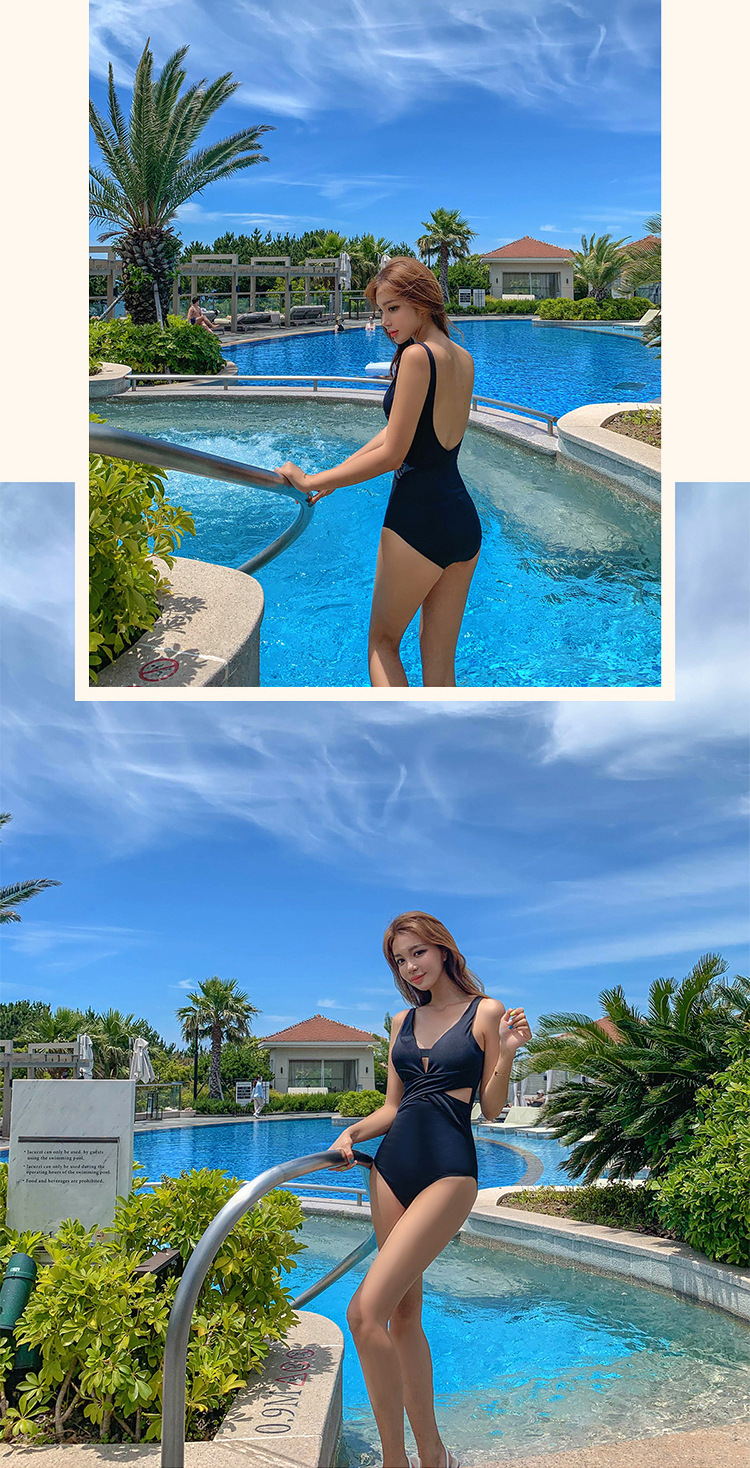 국경 간 한국 여성 스타일 컷 아웃 백리스 로우 컷 섹시 크로스 벨리 커버 슬리밍 수영복스토어 가기