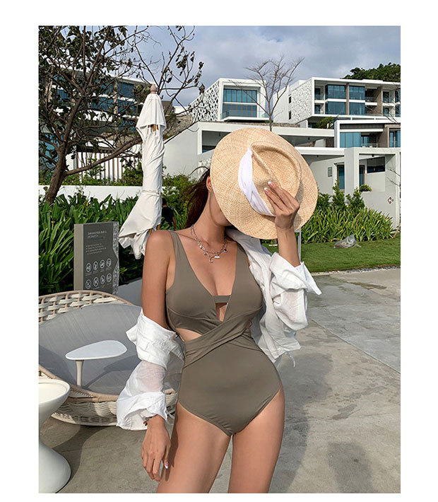 국경 간 한국 여성 스타일 컷 아웃 백리스 로우 컷 섹시 크로스 벨리 커버 슬리밍 수영복