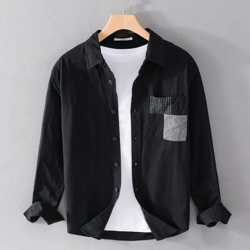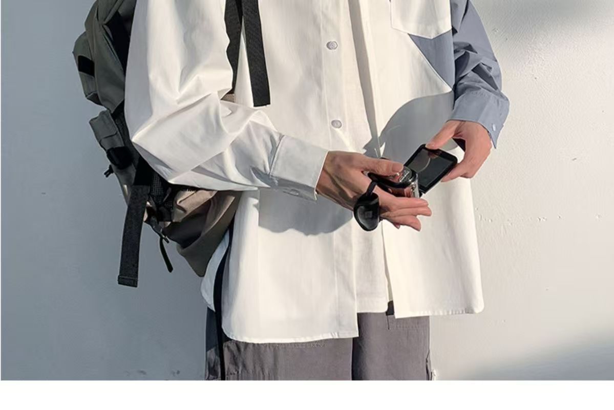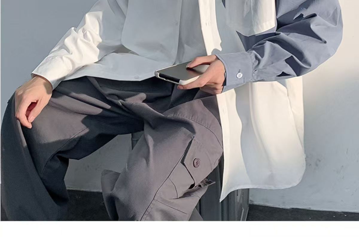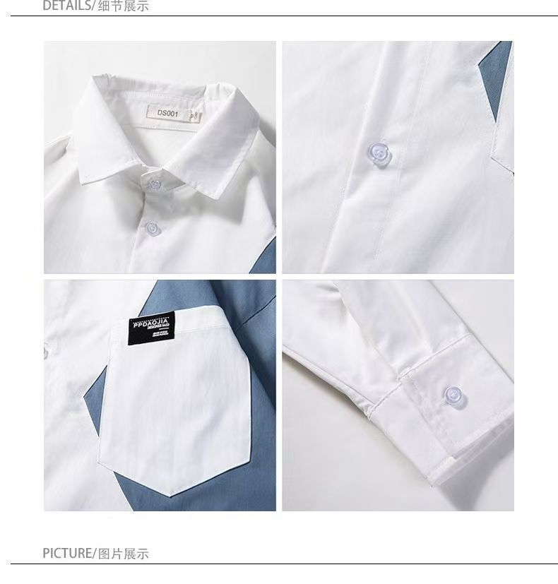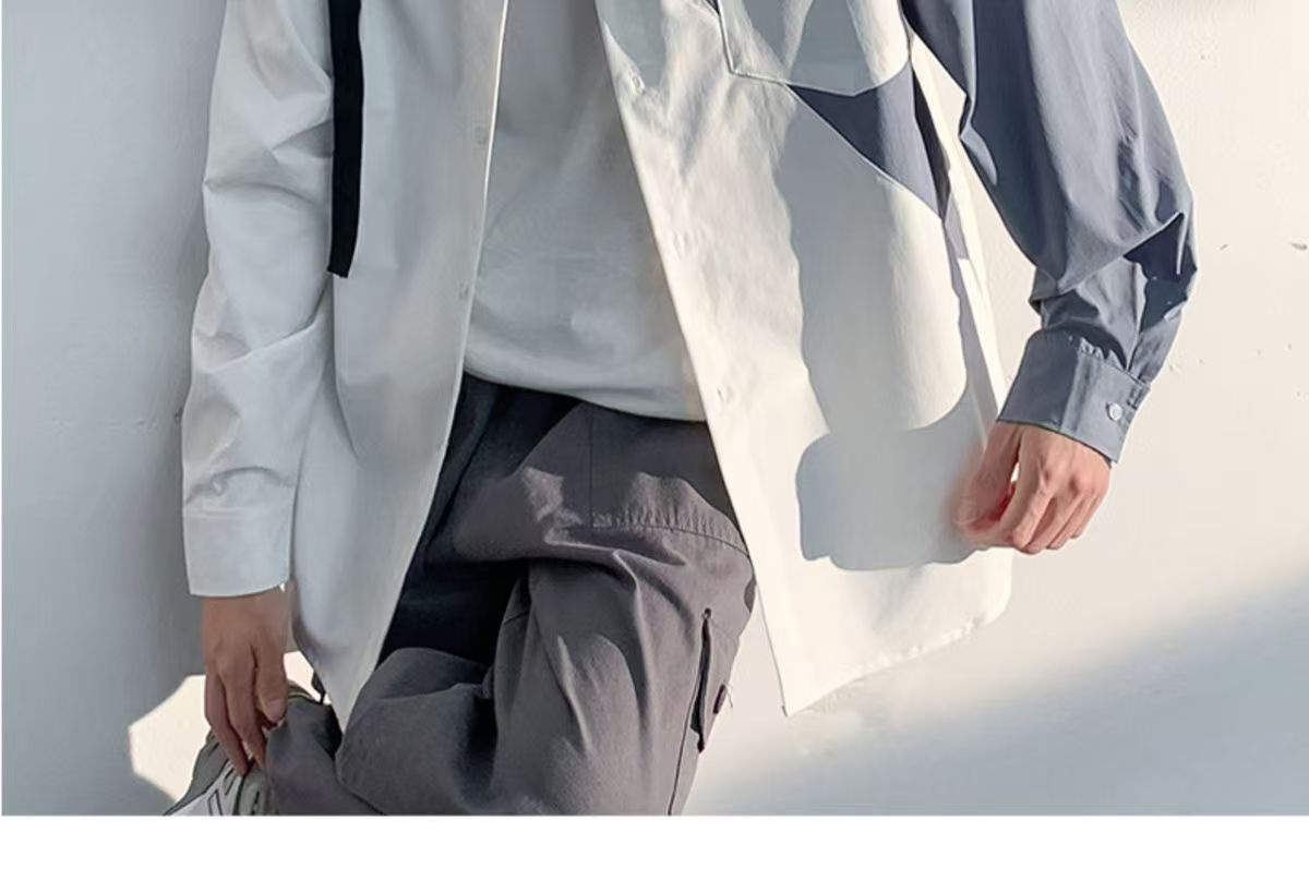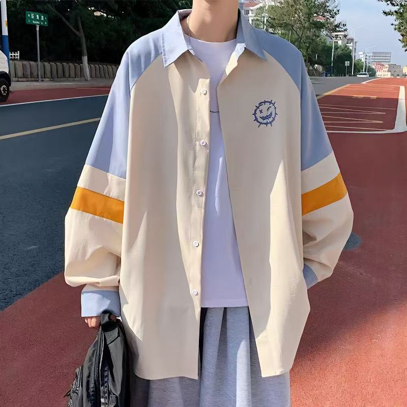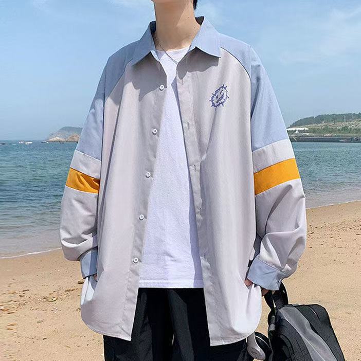 봄과 가을 홍콩 스타일 바느질 셔츠 남성용 긴팔 올매치 느슨한 디자인 센스 트렌디 브랜드 일본 스타일 셔츠 재킷 남성용 단색