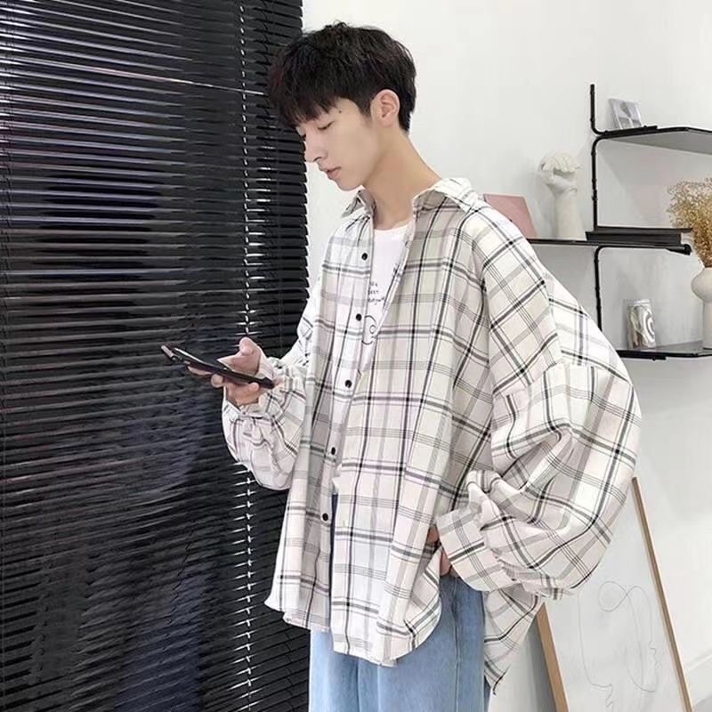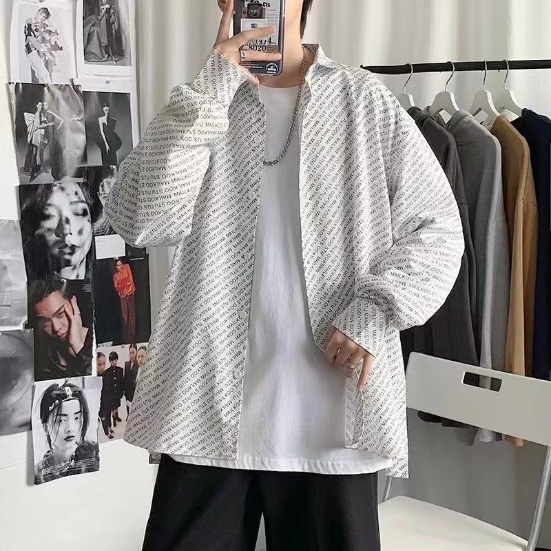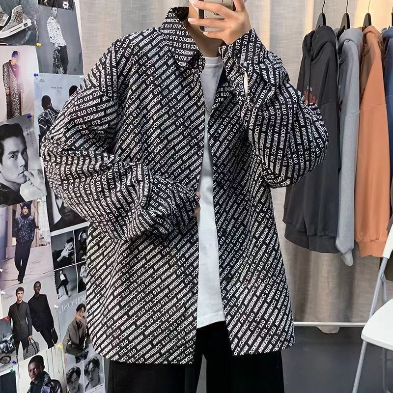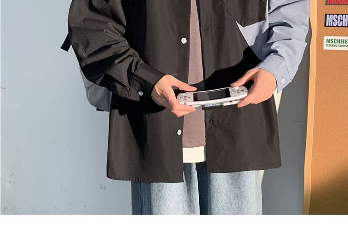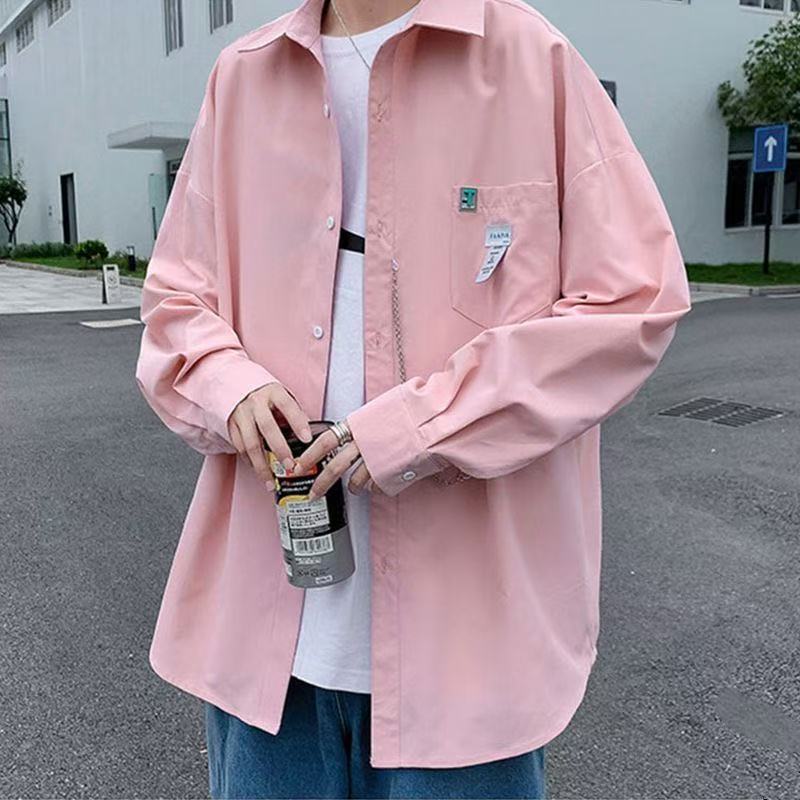 봄과 가을 홍콩 스타일 바느질 셔츠 남성용 긴팔 올매치 느슨한 디자인 센스 트렌디 브랜드 일본 스타일 셔츠 재킷 남성용 단색스토어 가기