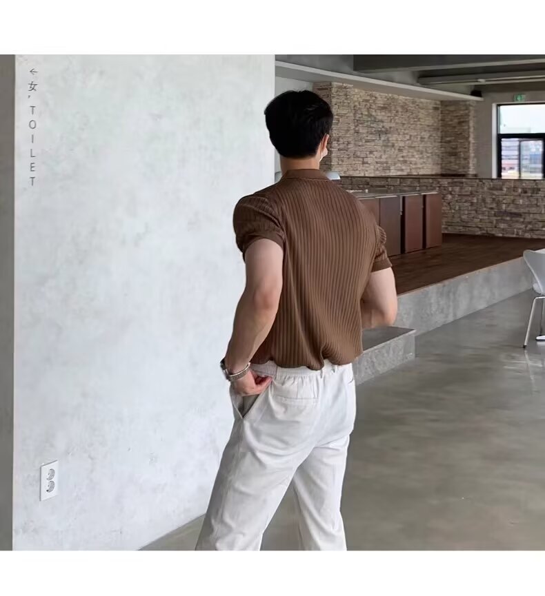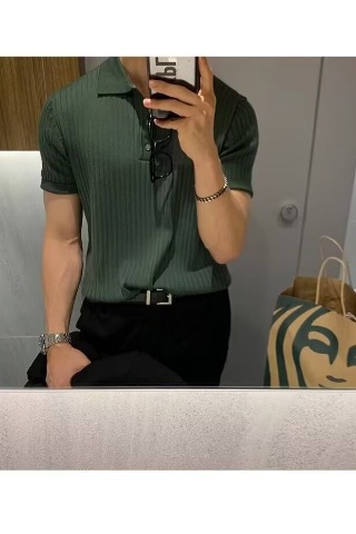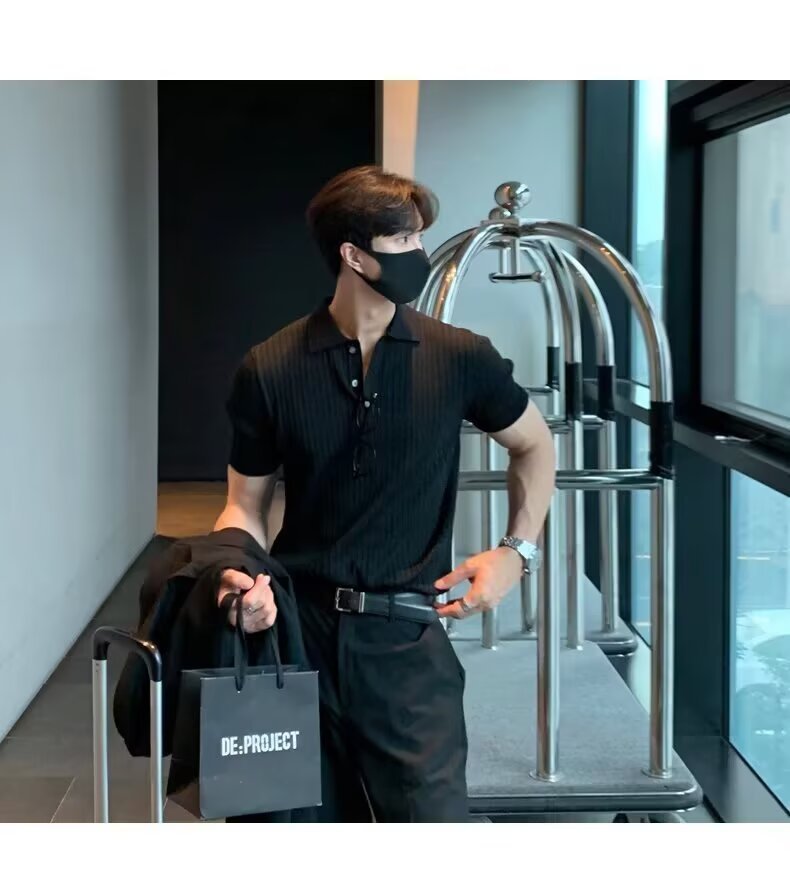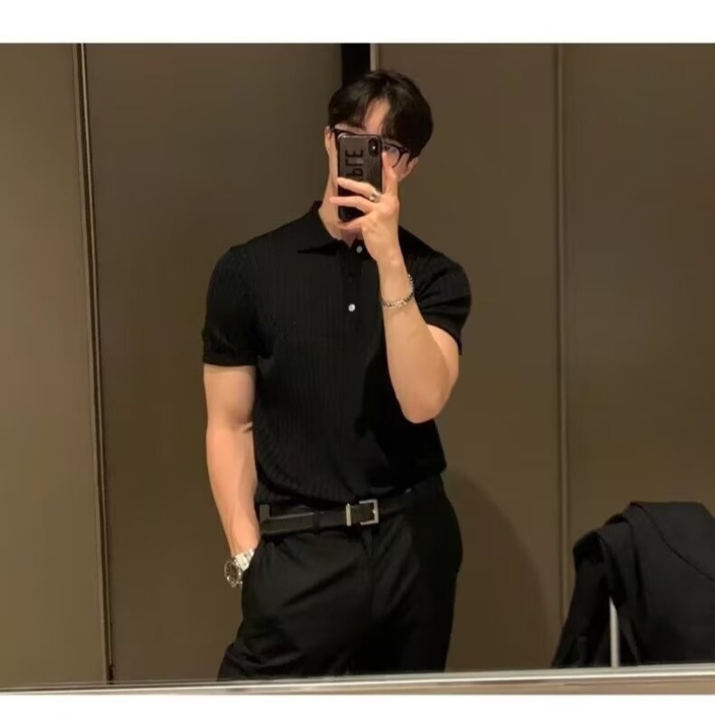 니트 반팔 티셔츠 남성용 폴로 셔츠 여름 트렌디 브랜드 하이 엔드 캐주얼 탑 패션 심플 라르 한국 티셔츠스토어 가기