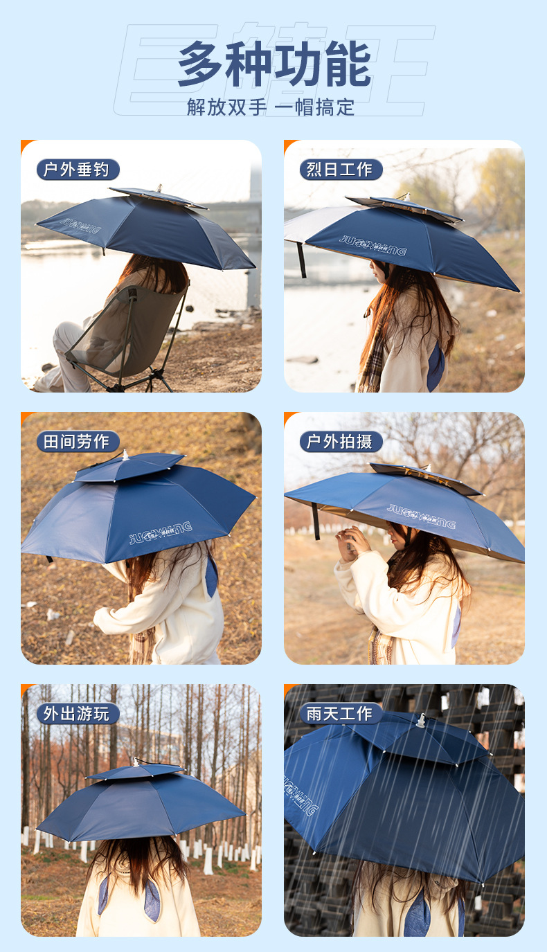 새로운 낚시 우산 모자 머리 장착 우산 접이식 머리띠 우산 이중 자외선 차단제 야외 낚시 차양 낚시 우산 도매