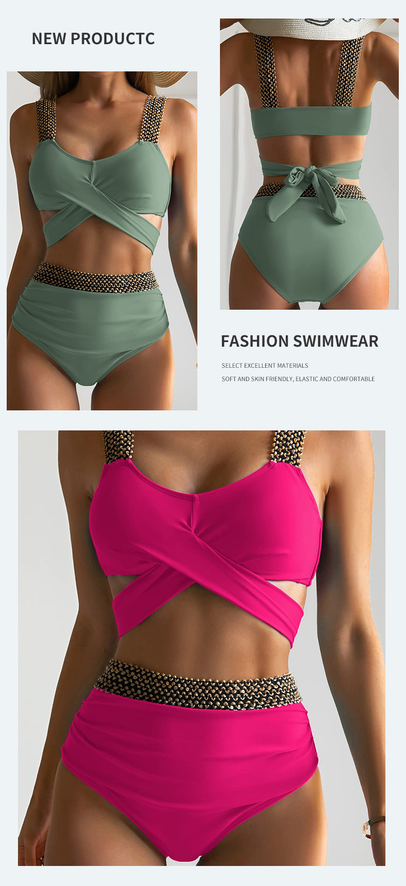 2026년 신상 유럽 및 미국 스타일 비키니, 여성스러운 크로스 백리스 비키니, 아마존 수영복스토어 가기