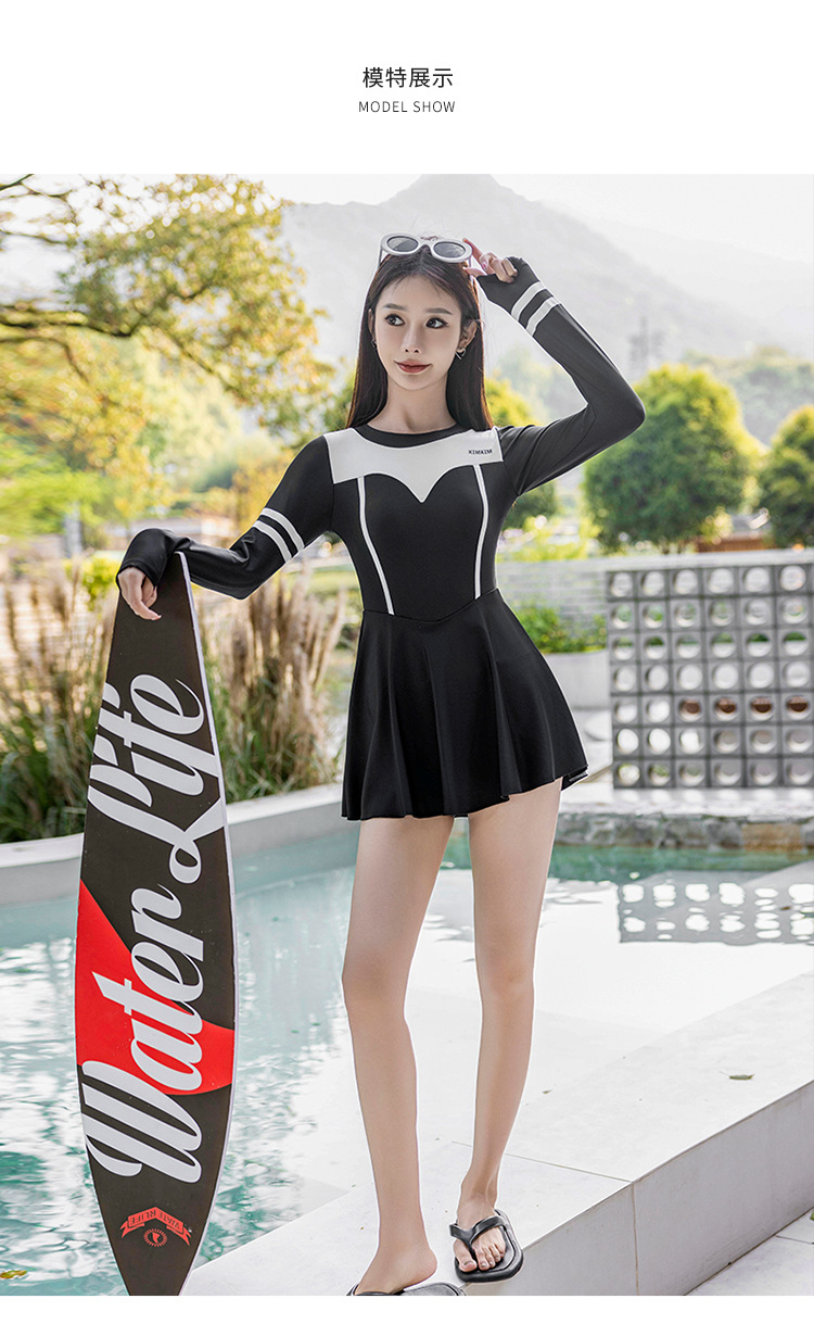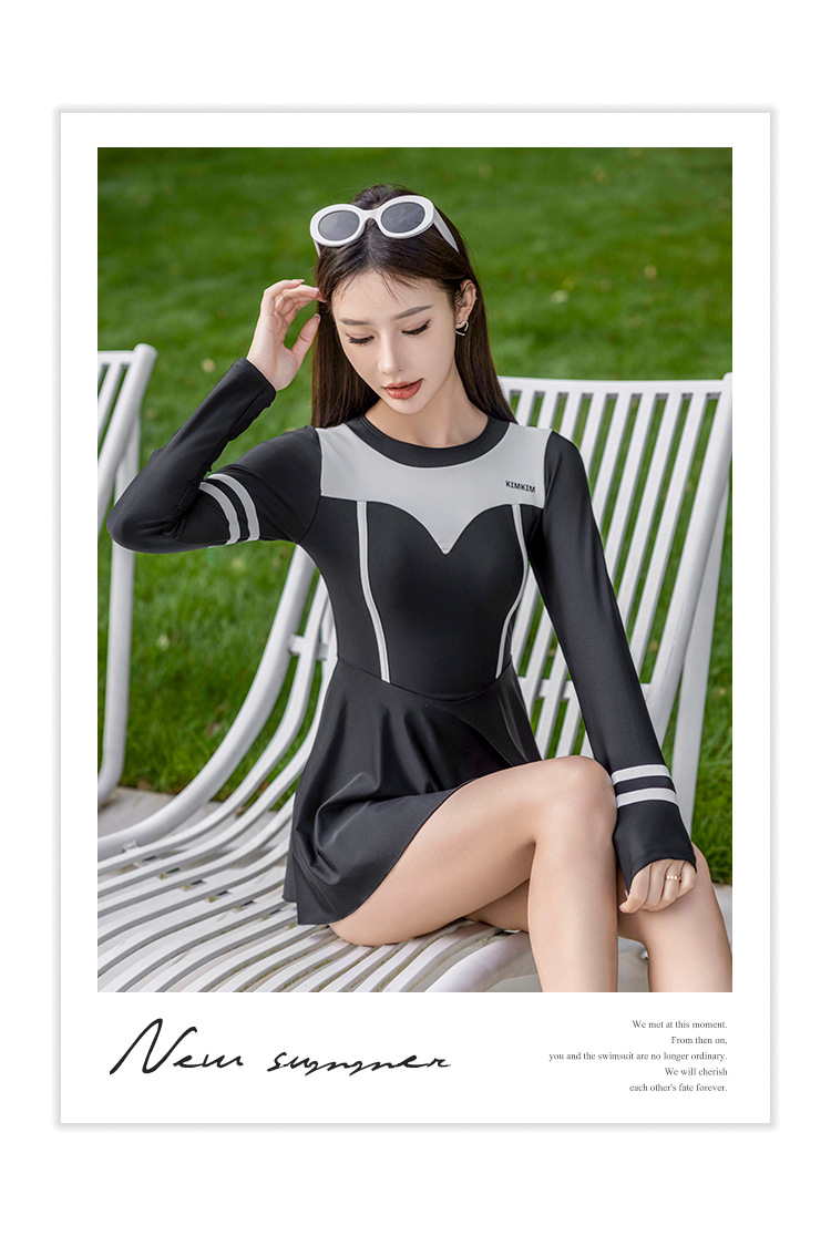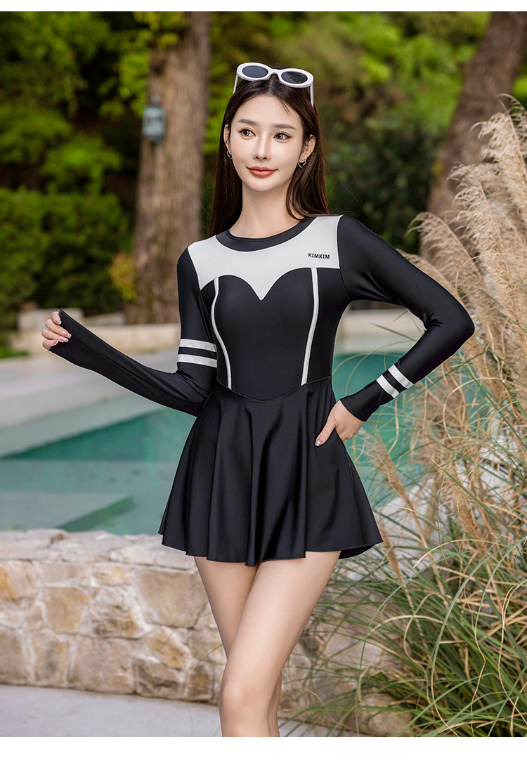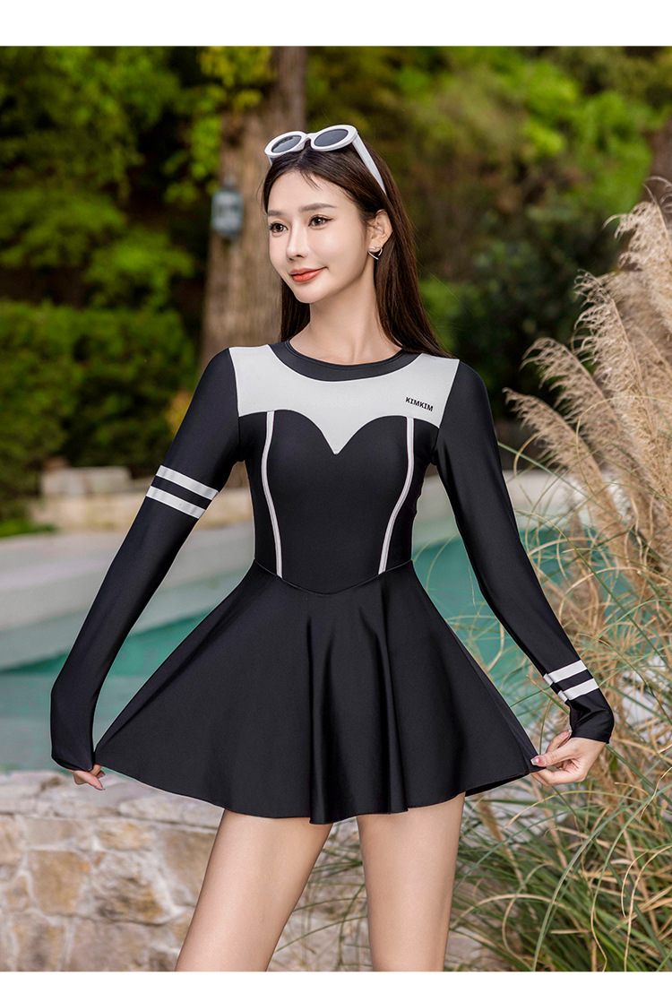 수영복 여성 여름 2025 새로운 긴팔 선 스크린 스포츠 스커트 육체 커버 보수적 통통녀 배꼽 커버 슬림 수영복스토어 가기