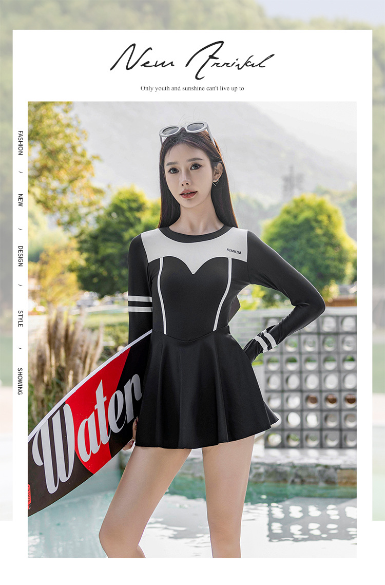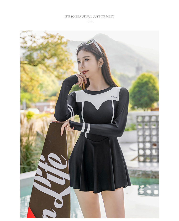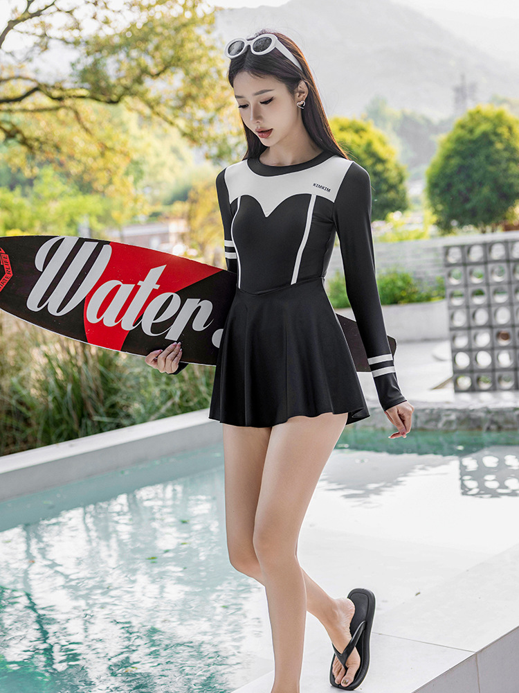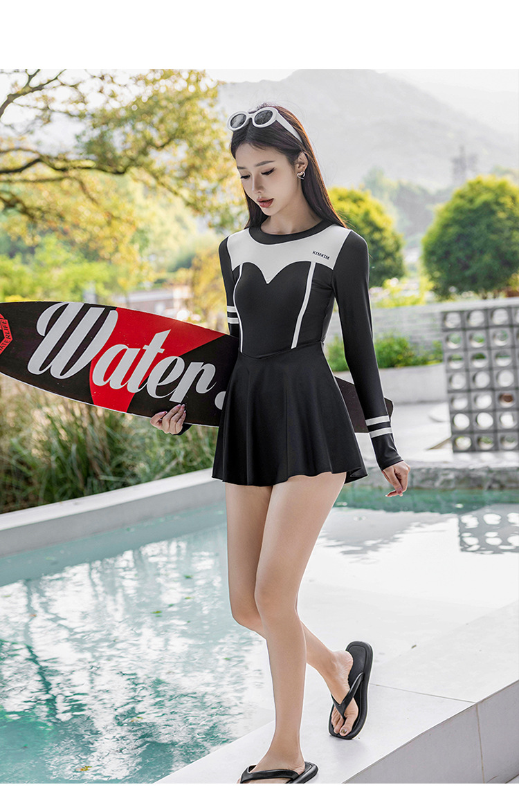 수영복 여성 여름 2025 새로운 긴팔 선 스크린 스포츠 스커트 육체 커버 보수적 통통녀 배꼽 커버 슬림 수영복스토어 가기
