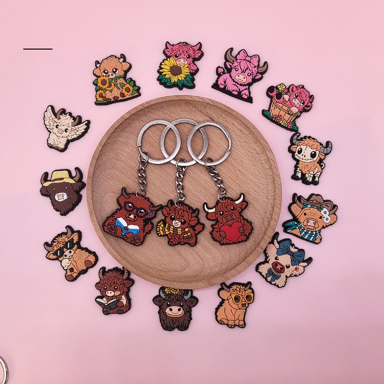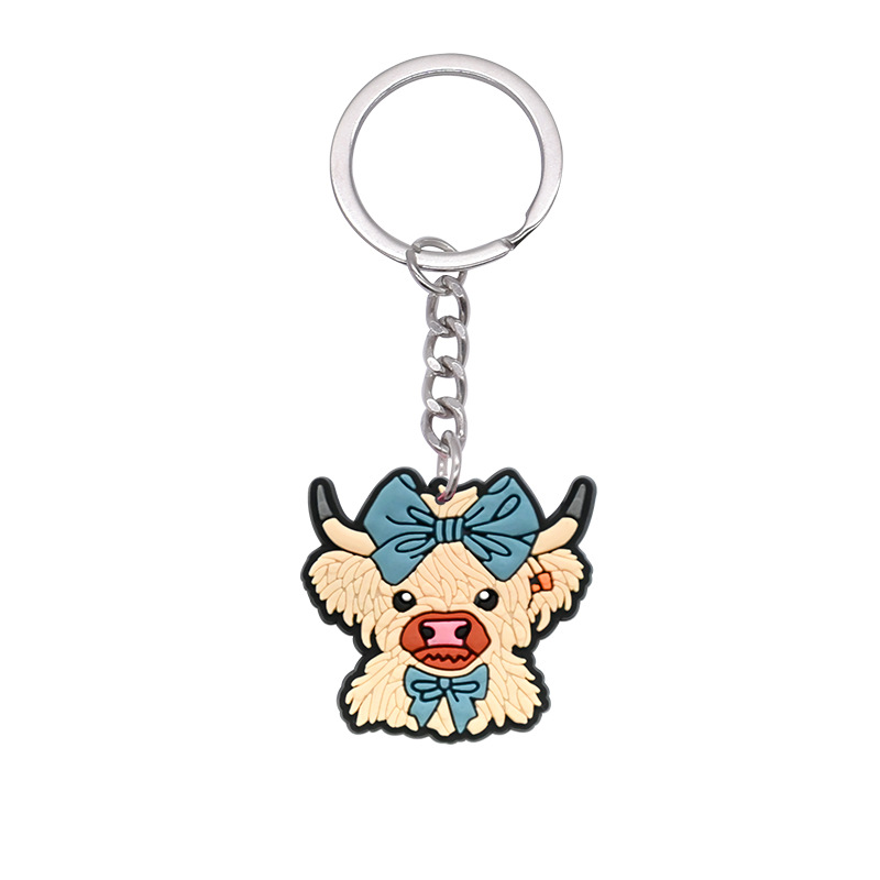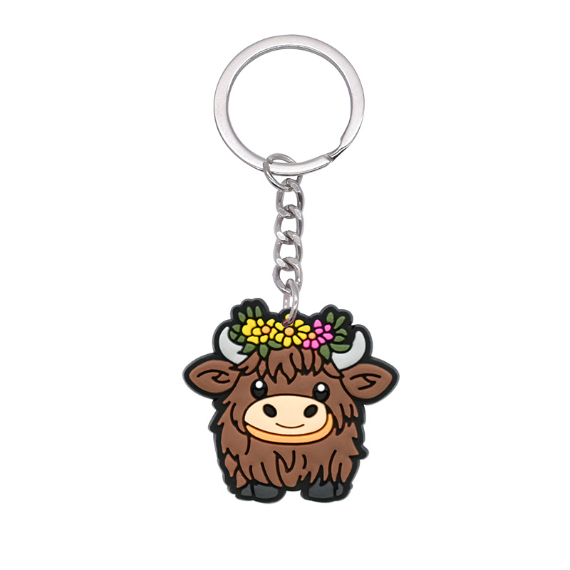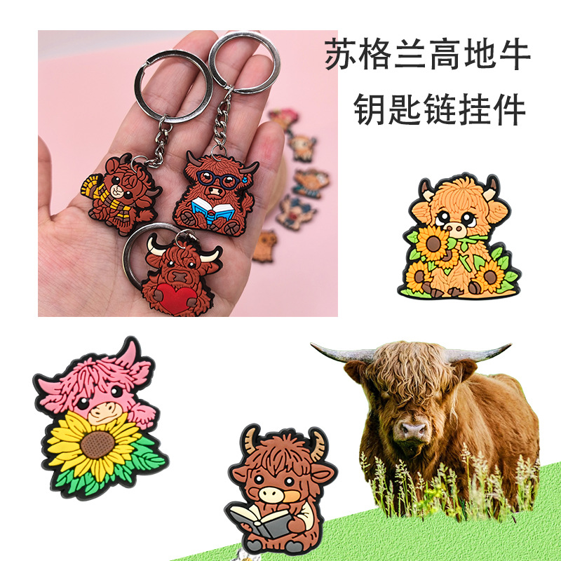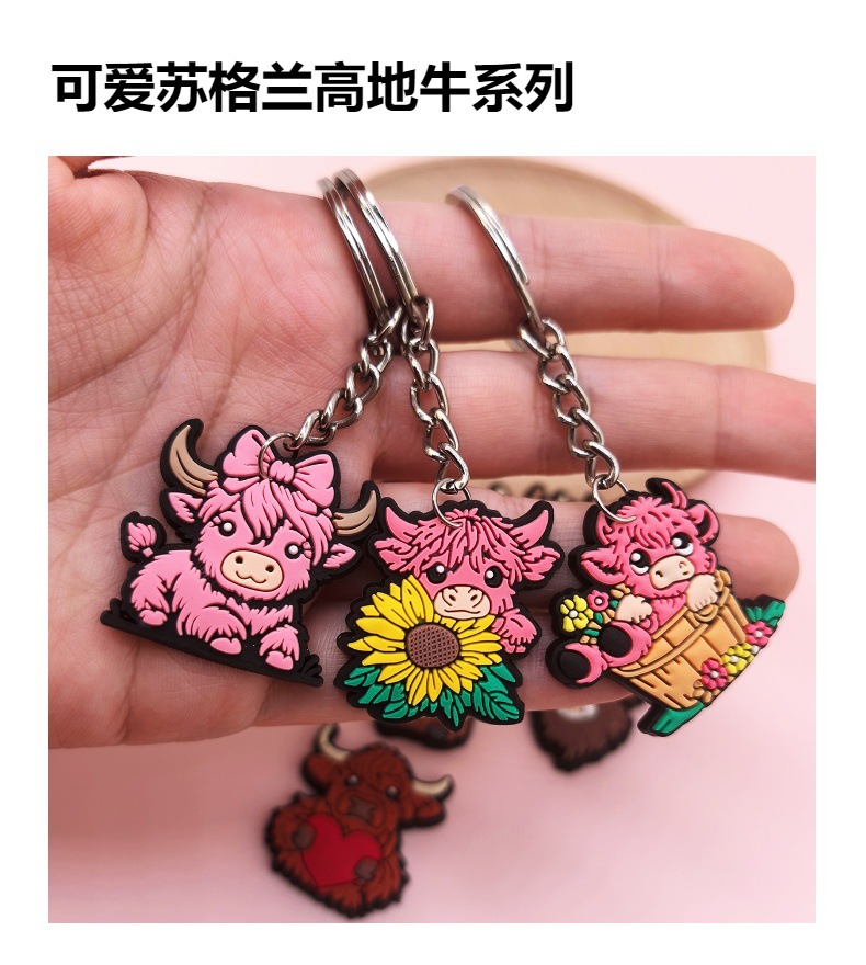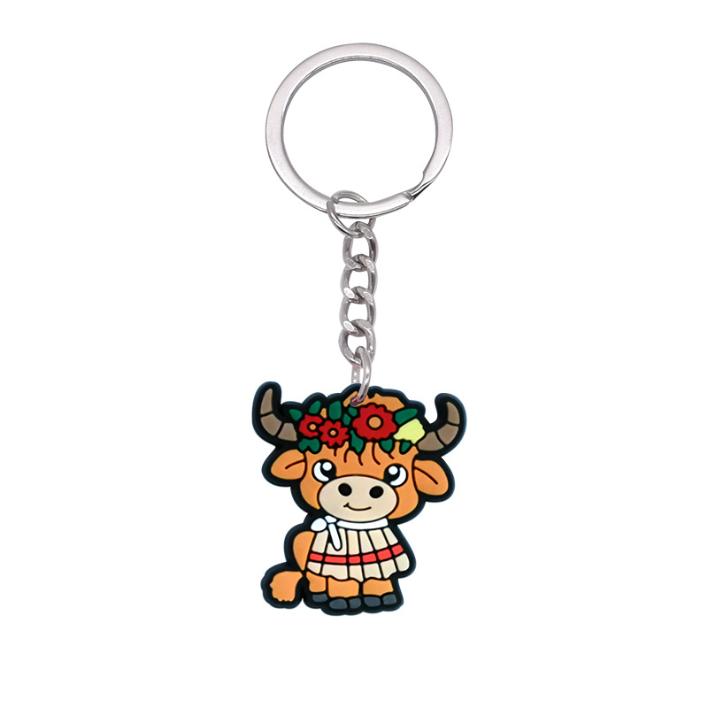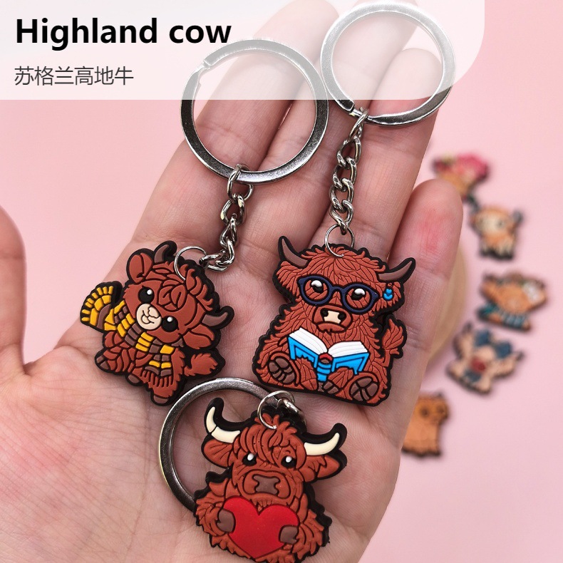 스코틀랜드 하이랜드 소 키 체인 PVC 소프트 고무 키 체인 동물 인형 펜던트 키 체인 대외 무역 국경 배치스토어 가기
