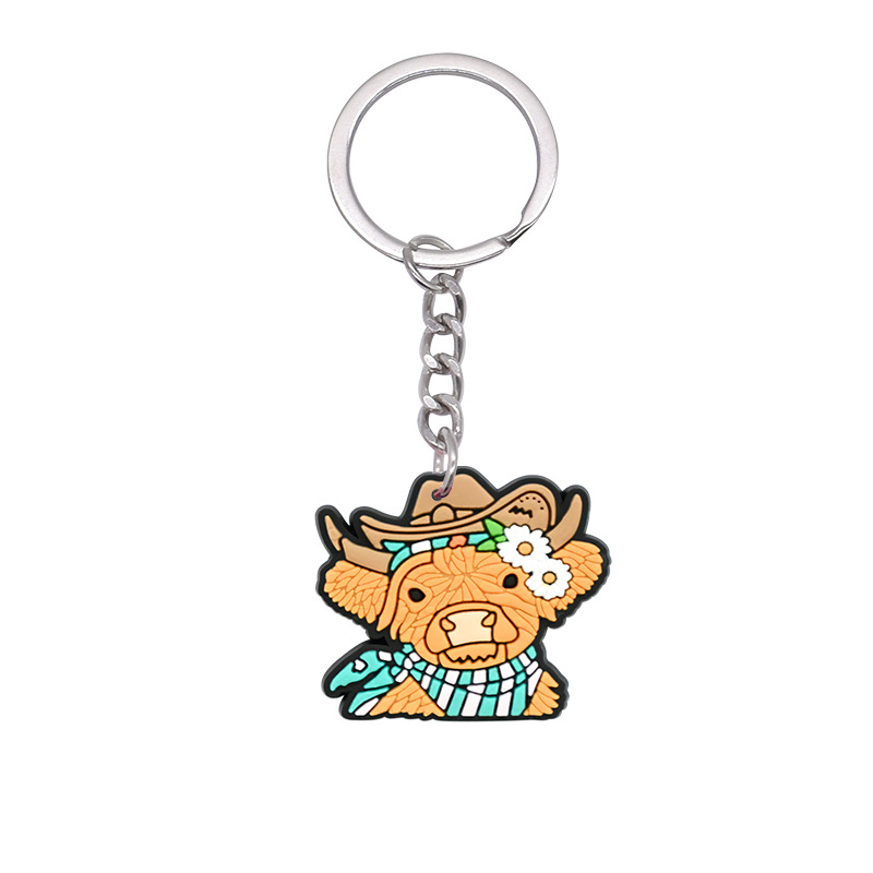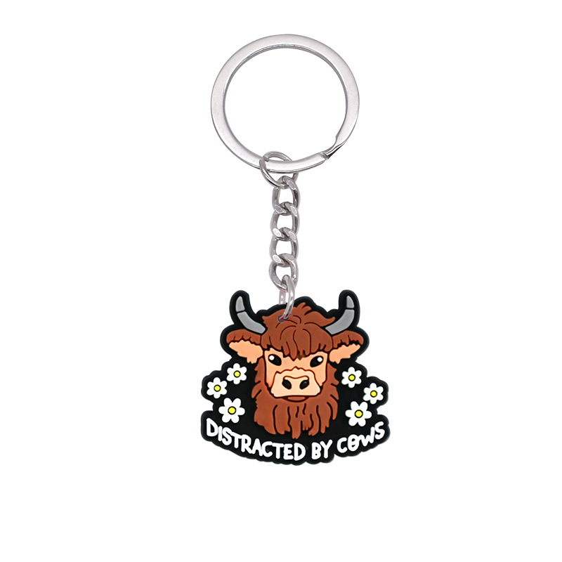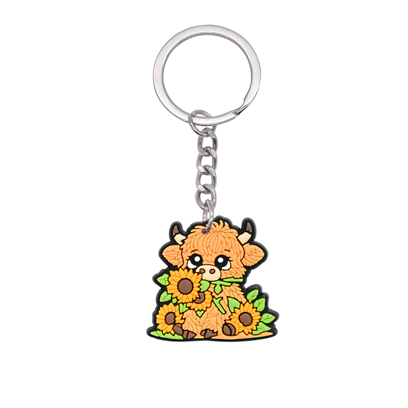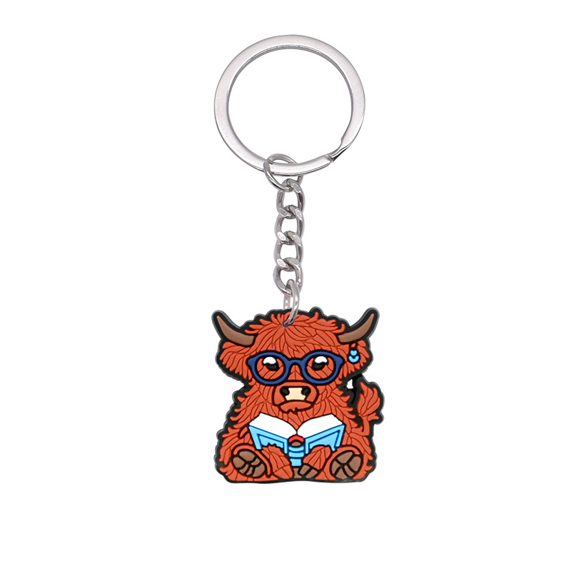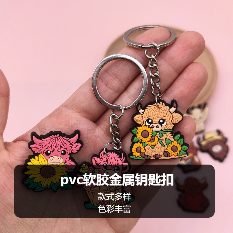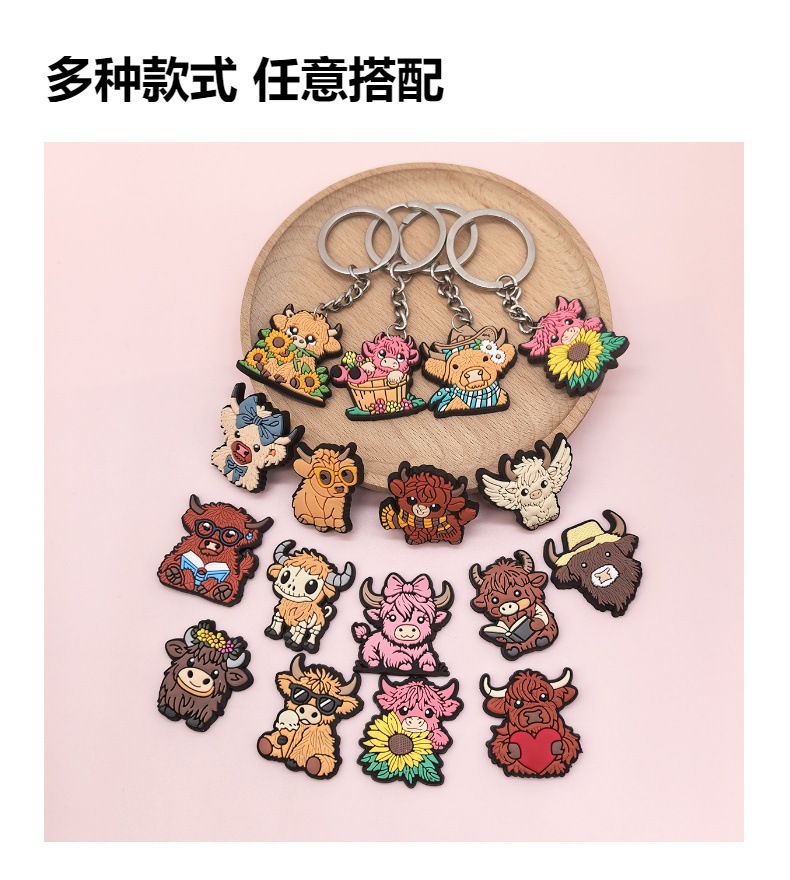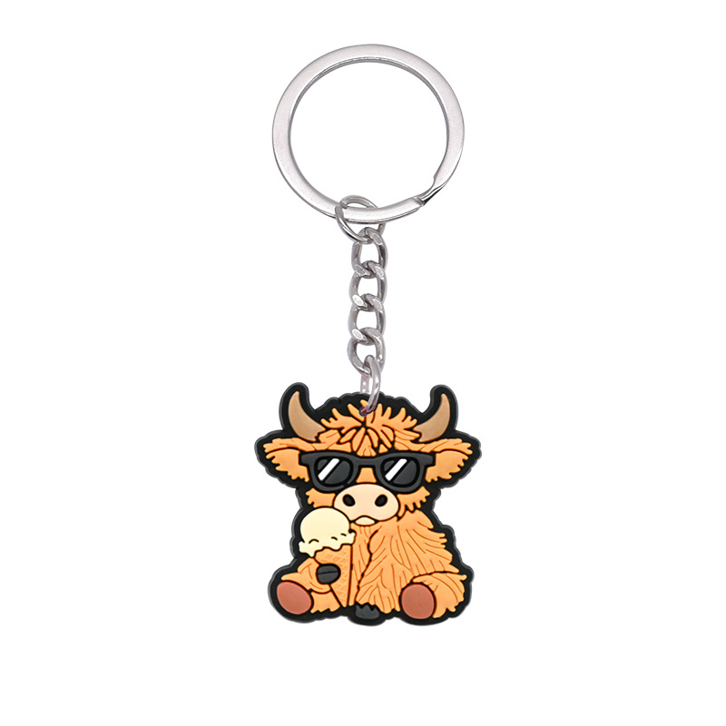 스코틀랜드 하이랜드 소 키 체인 PVC 소프트 고무 키 체인 동물 인형 펜던트 키 체인 대외 무역 국경 배치스토어 가기