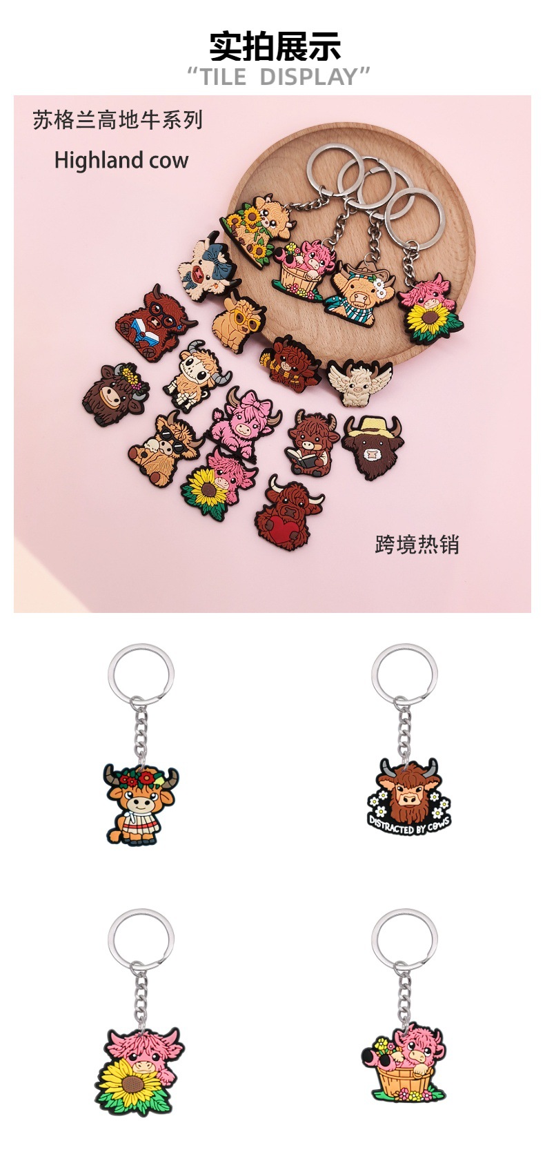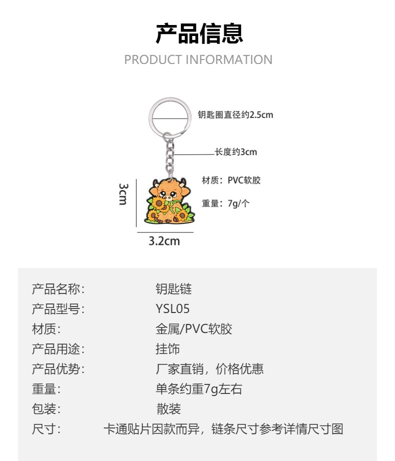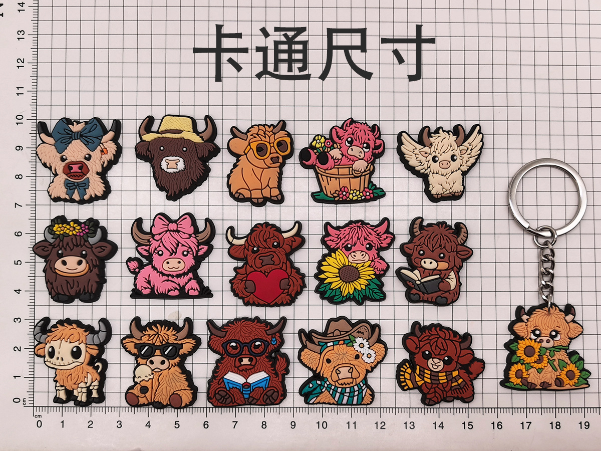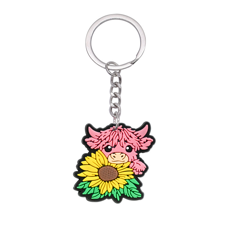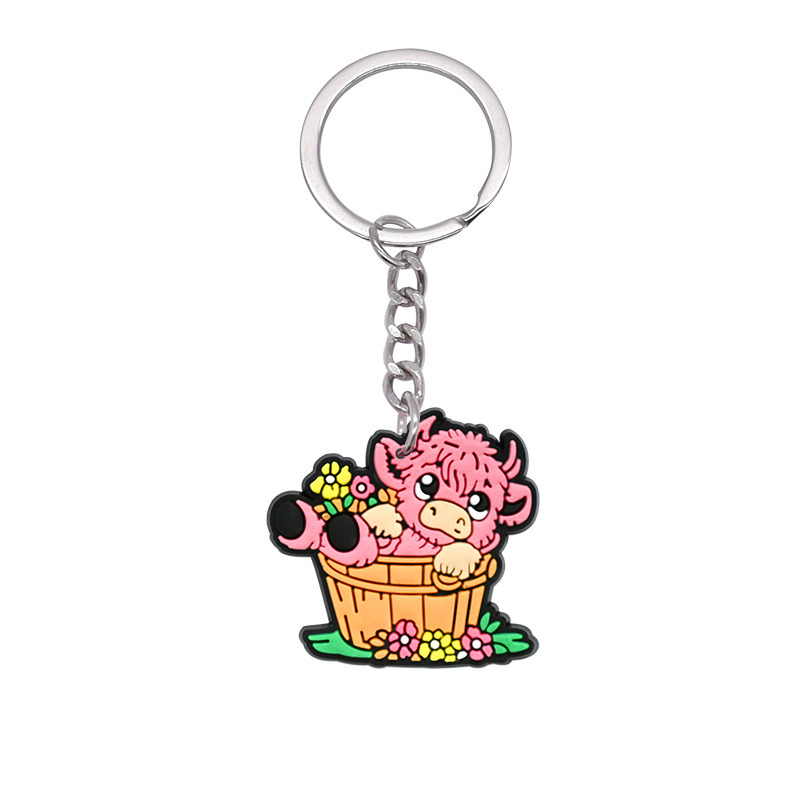 스코틀랜드 하이랜드 소 키 체인 PVC 소프트 고무 키 체인 동물 인형 펜던트 키 체인 대외 무역 국경 배치스토어 가기