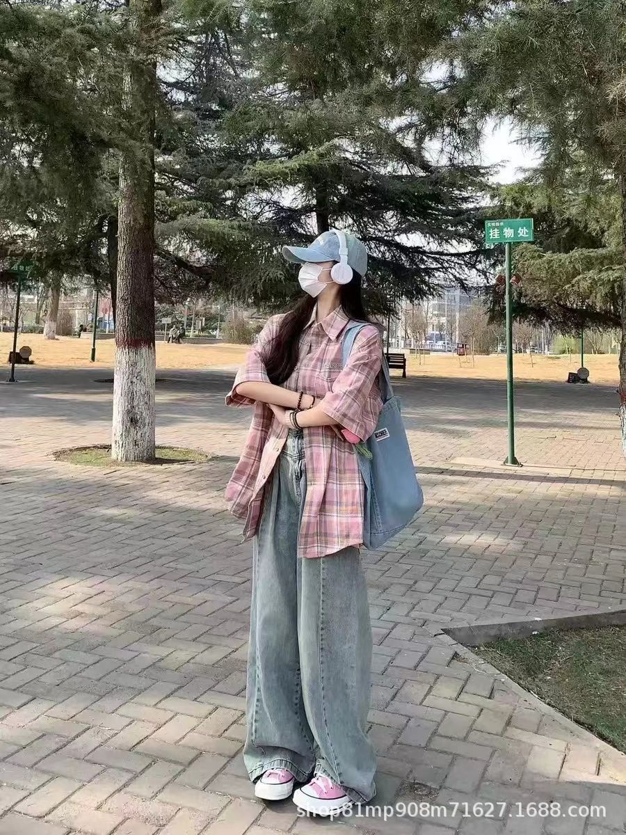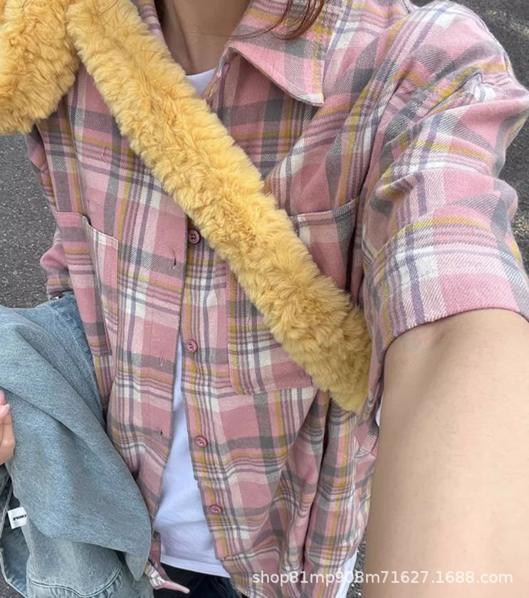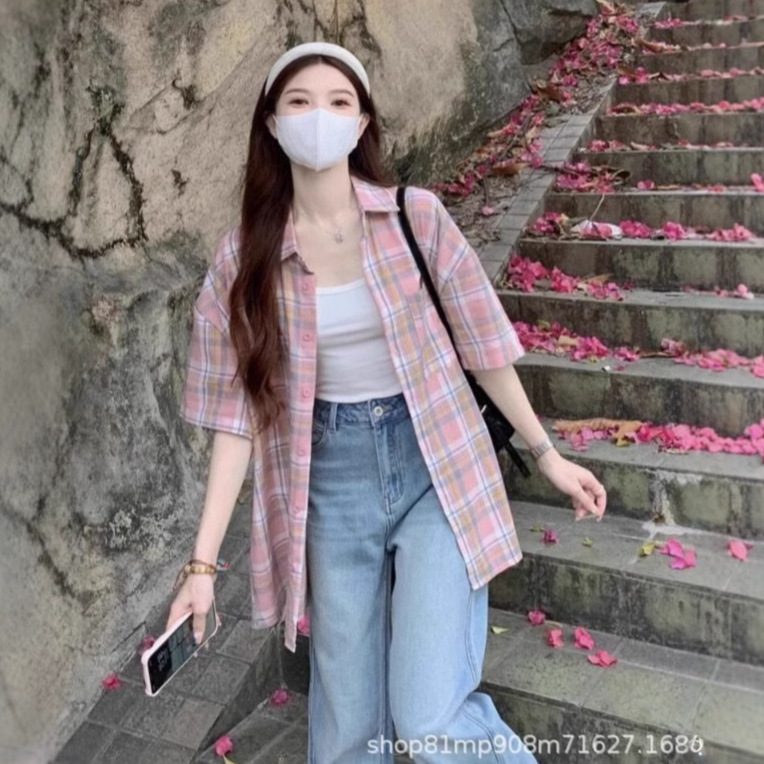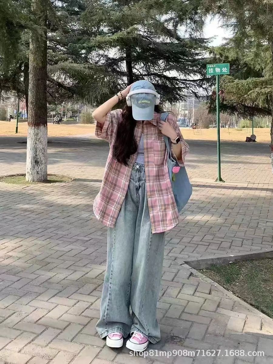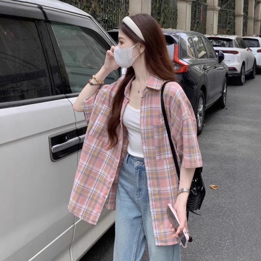 미국식 레트로 핑크 체크무늬 셔츠 여성용 2025 가을 통근용 가디건 캐주얼 긴팔 셔츠 재킷스토어 가기