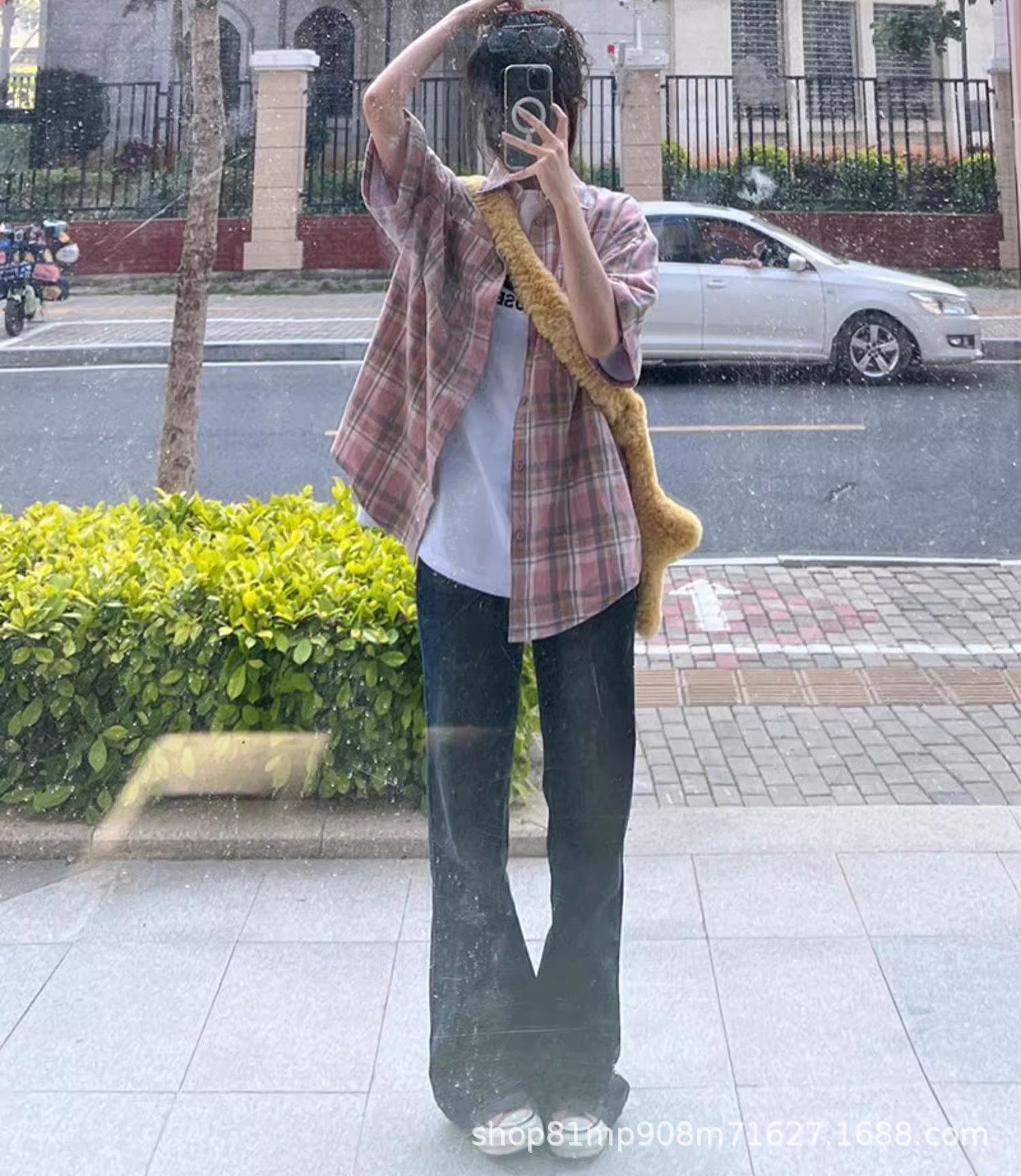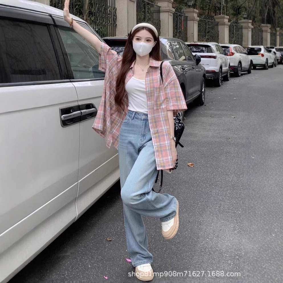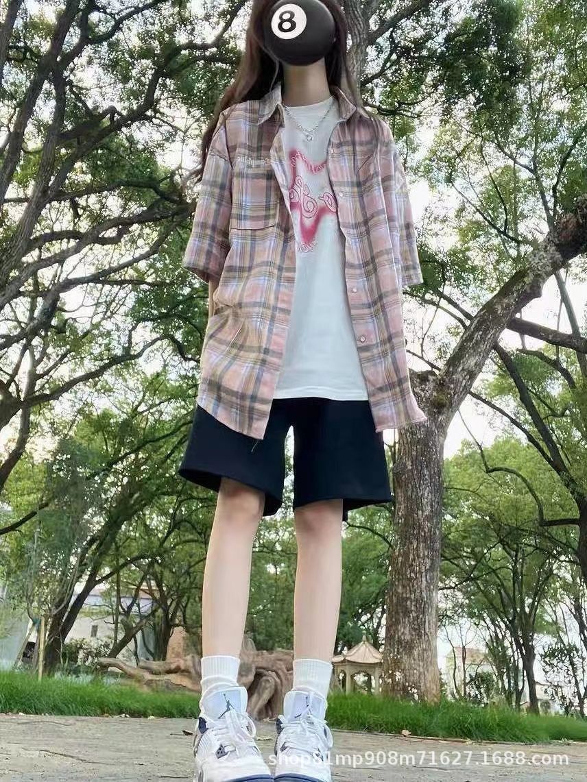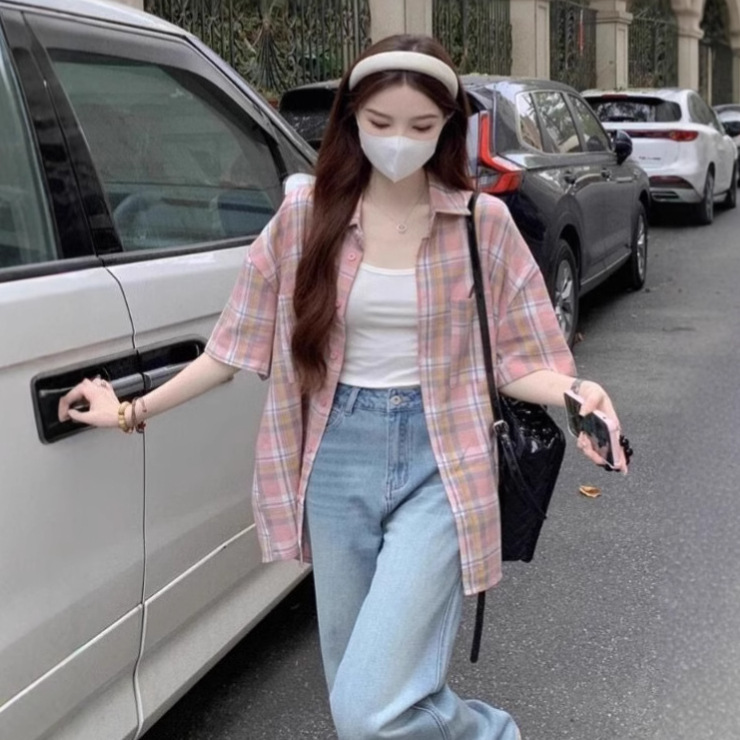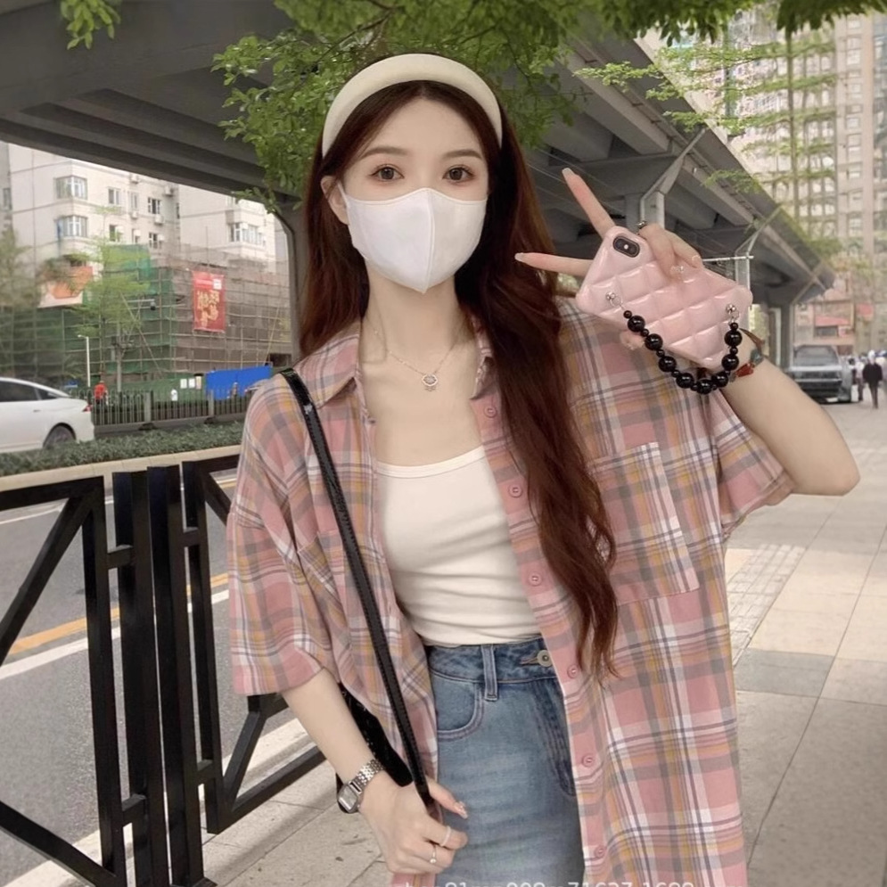 미국식 레트로 핑크 체크무늬 셔츠 여성용 2025 가을 통근용 가디건 캐주얼 긴팔 셔츠 재킷스토어 가기