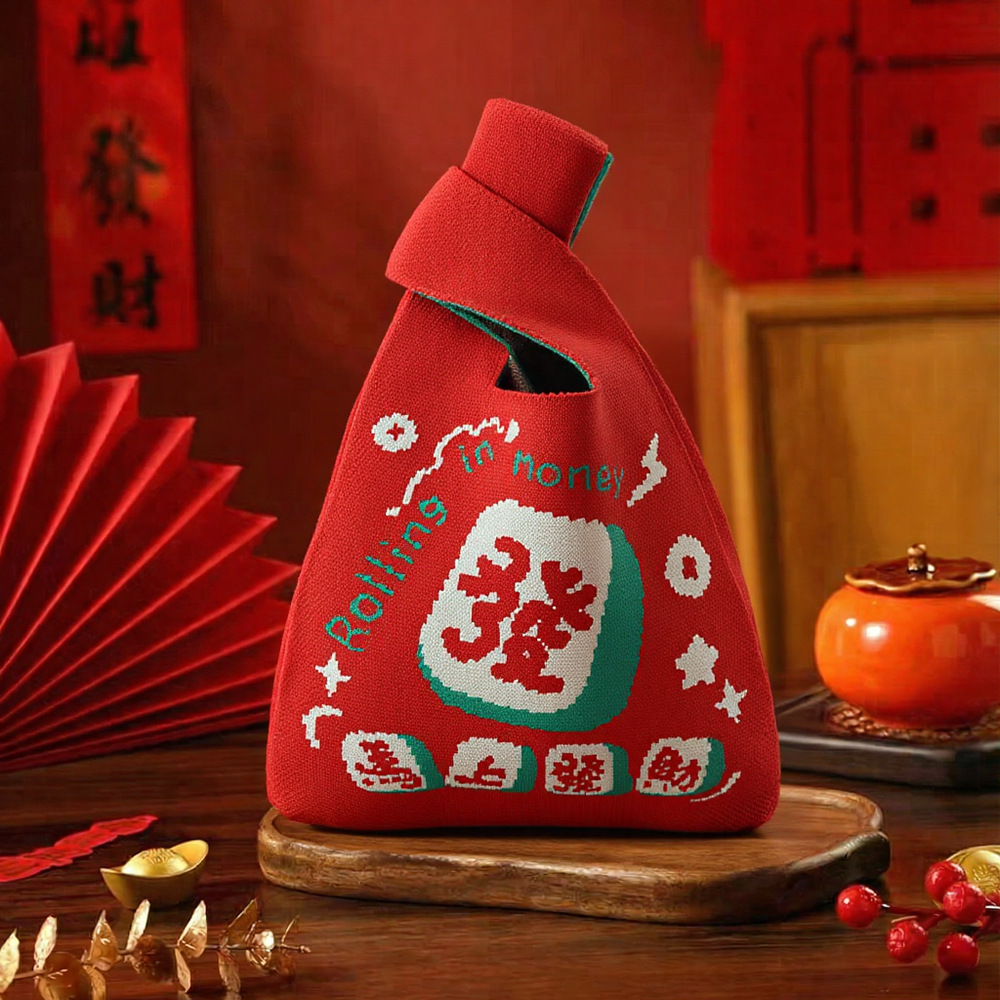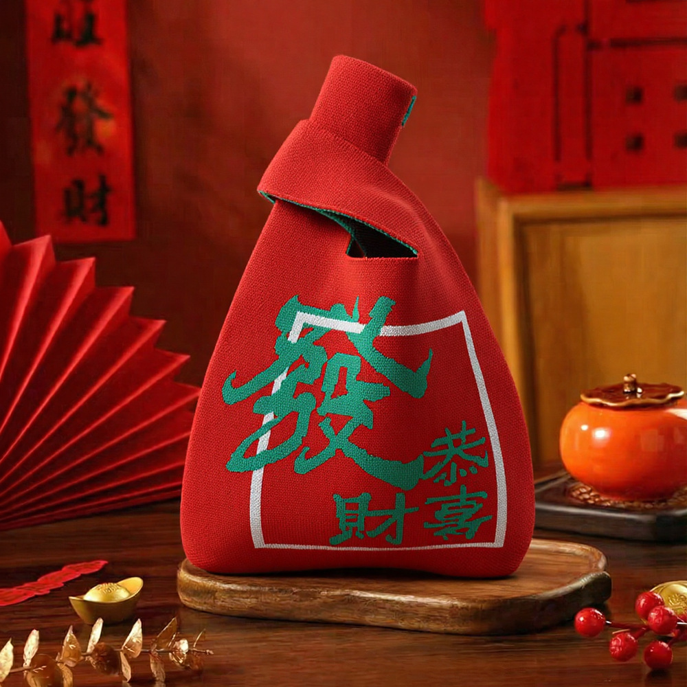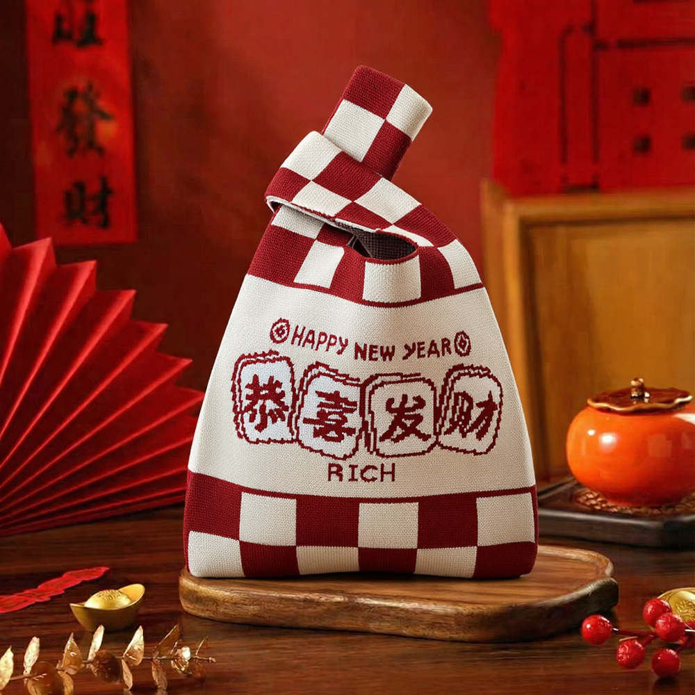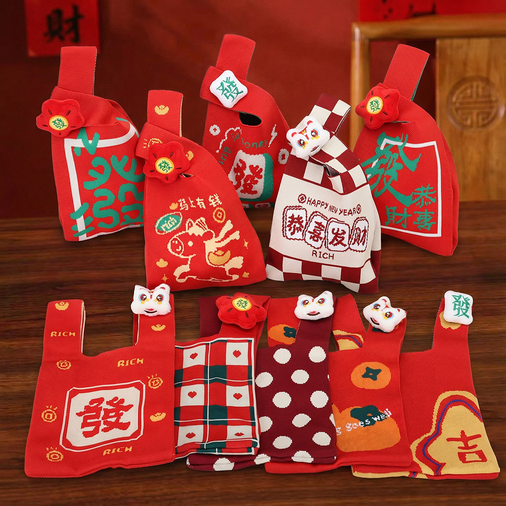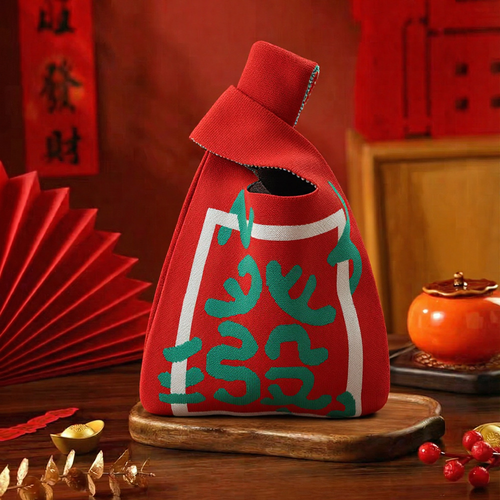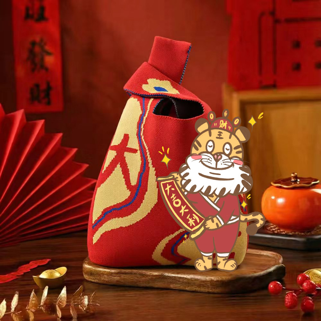 새해 머리 인쇄 축제 니트 핸드백 대용량 통근 보관 가방 Guofeng 손 선물 회사 연례 회의스토어 가기