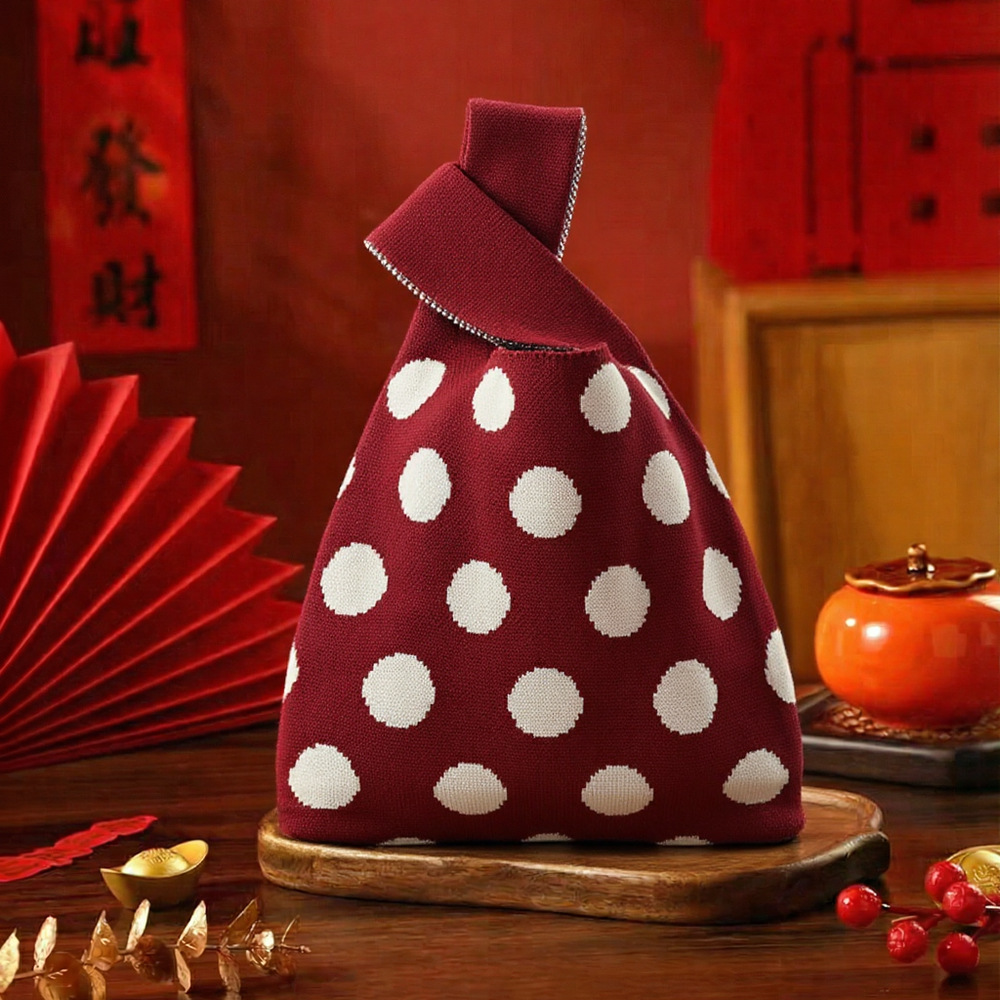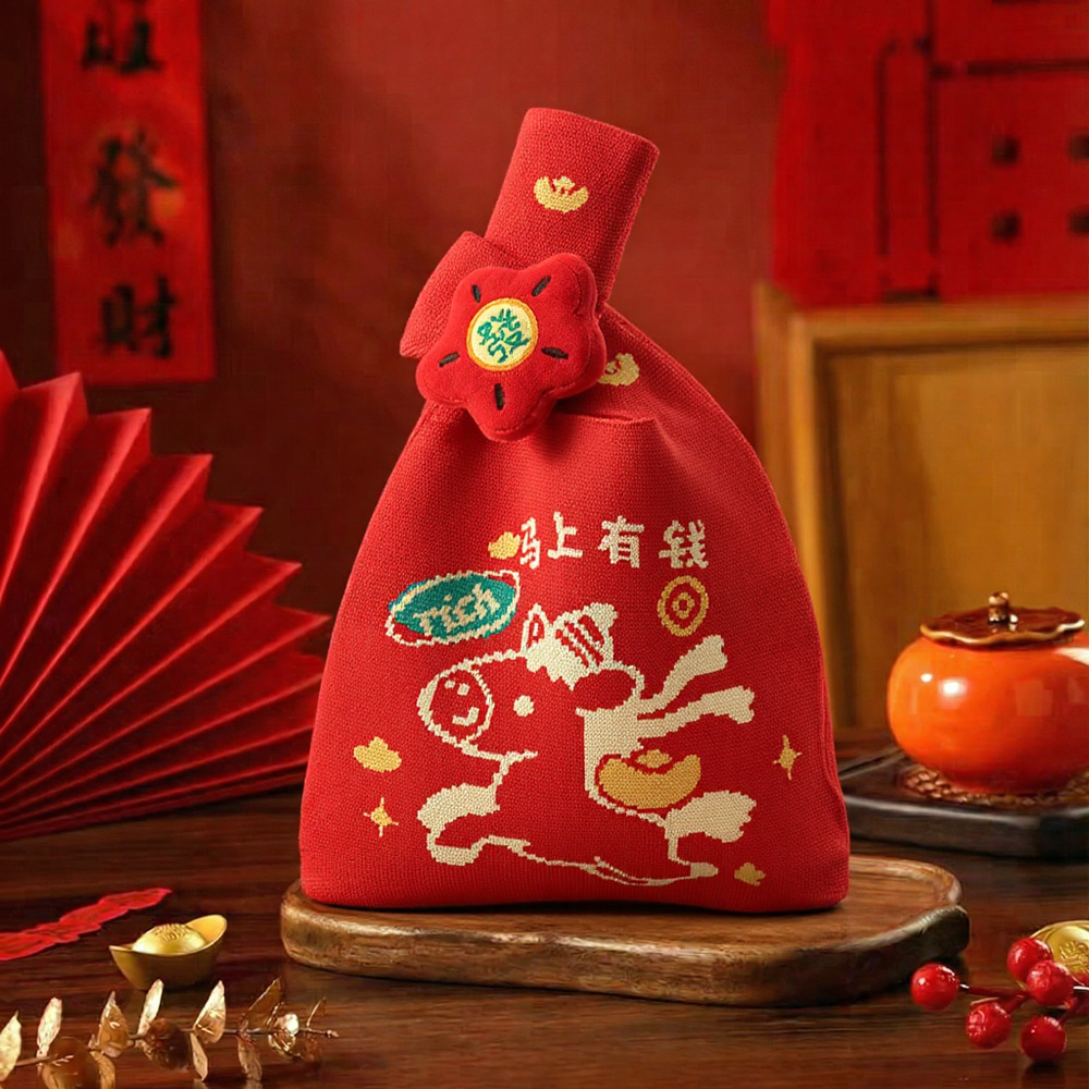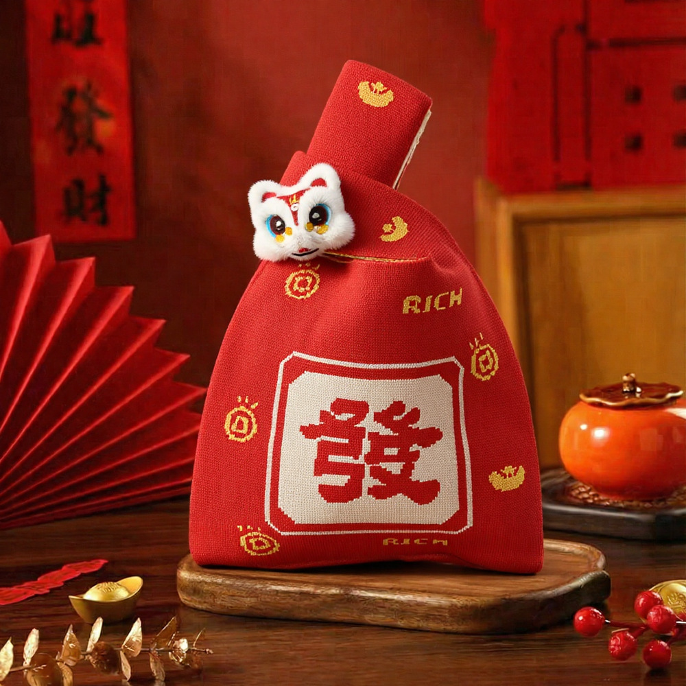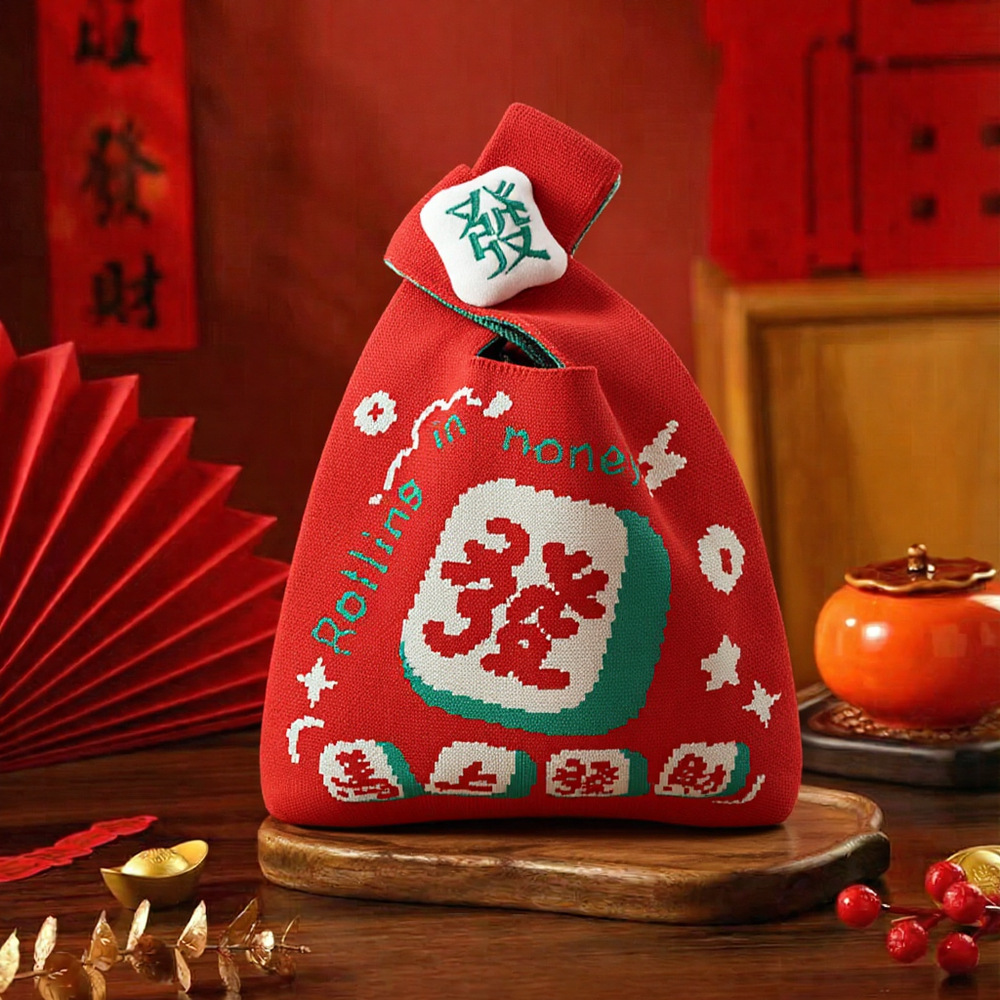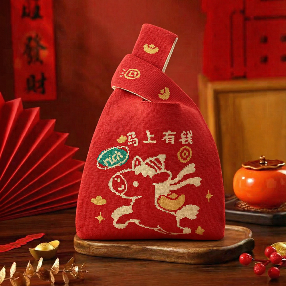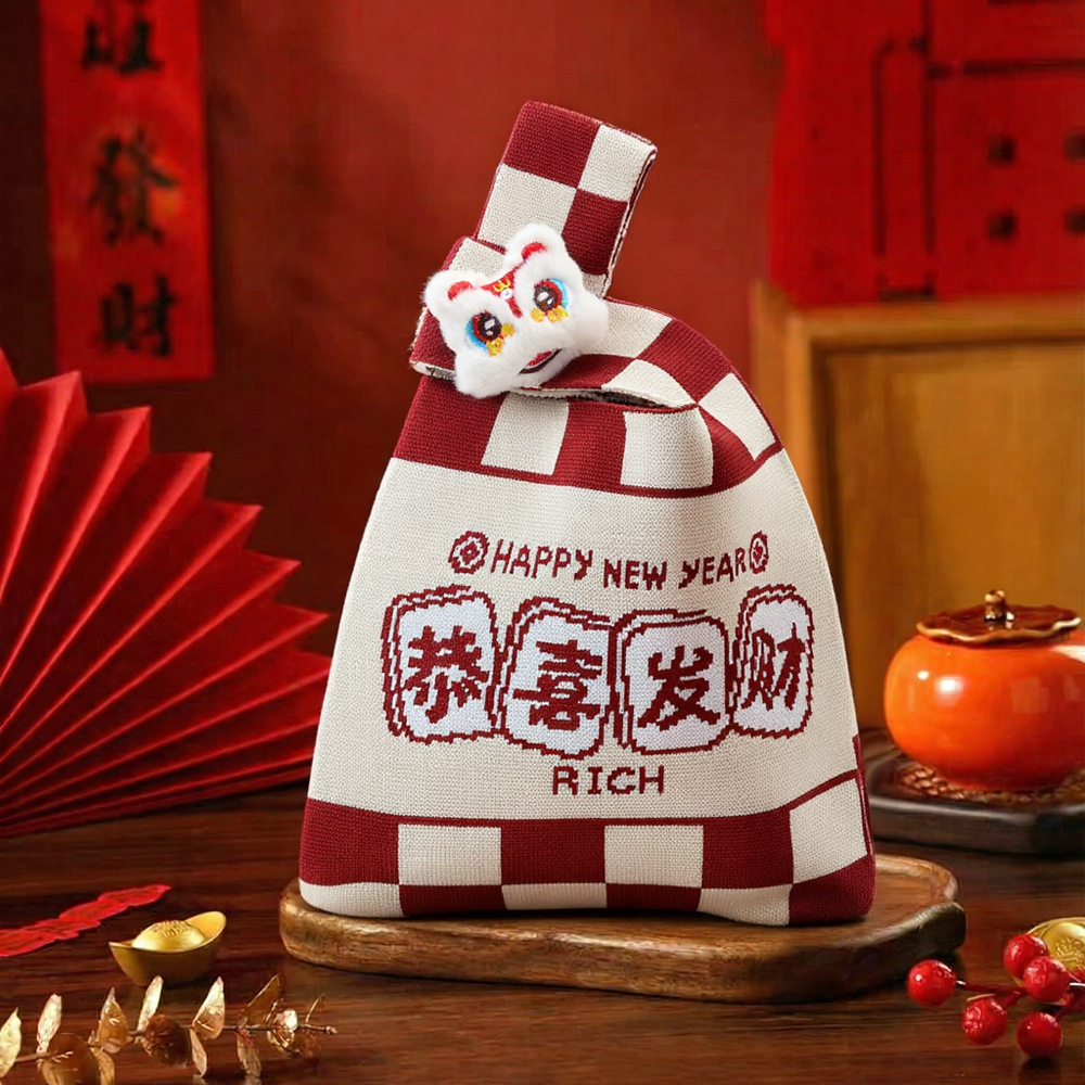 새해 머리 인쇄 축제 니트 핸드백 대용량 통근 보관 가방 Guofeng 손 선물 회사 연례 회의스토어 가기