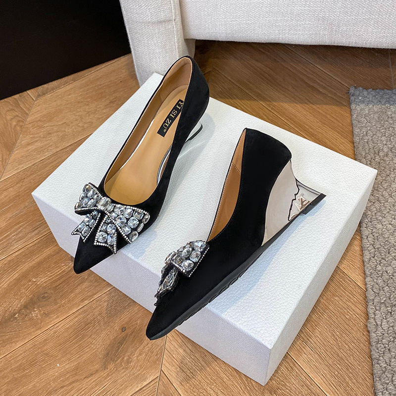 작업 신발 여성 블랙 소프트 하단 쐐기 신발 여성 활 뾰족한 하이힐 전문 신발 호텔 하이힐 작업 신발스토어 가기