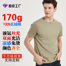 高级感170g双面液氨丝光棉t恤纯棉长绒棉短袖免烫青年圆领男式T恤