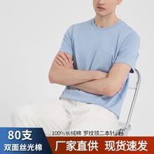 80高级感双面丝光棉t恤短袖夏季纯色液氨薄款体恤半袖纯棉男士t恤