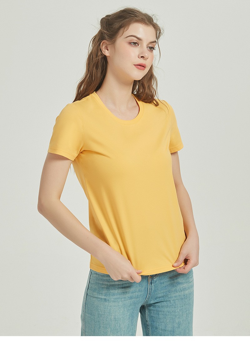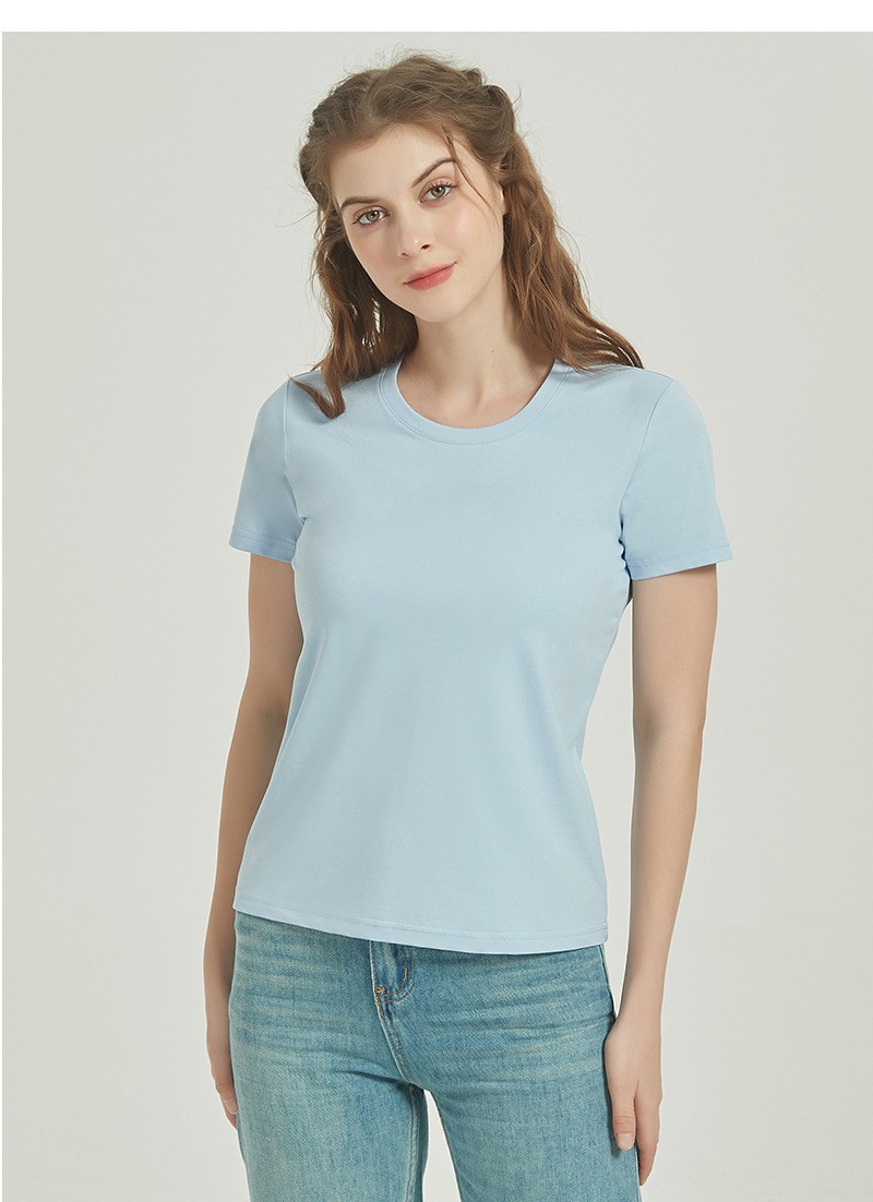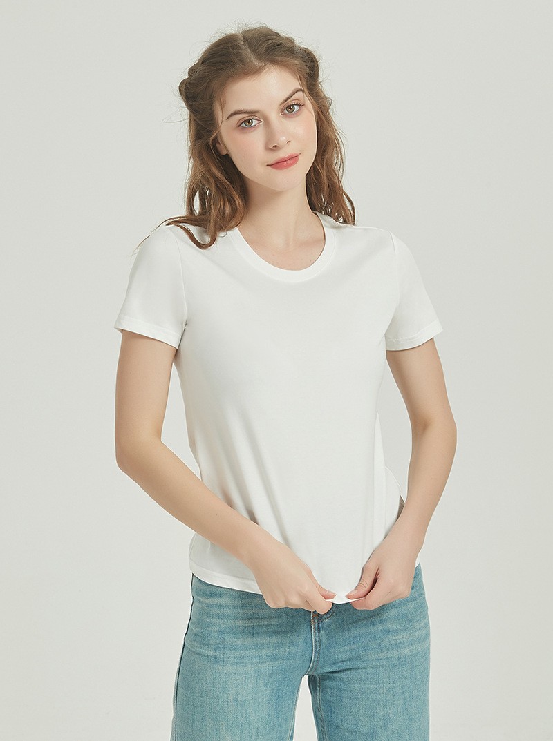 120s双面丝光棉t恤女短袖圆领纯色夏季白色半袖凉感免烫纯棉t恤女