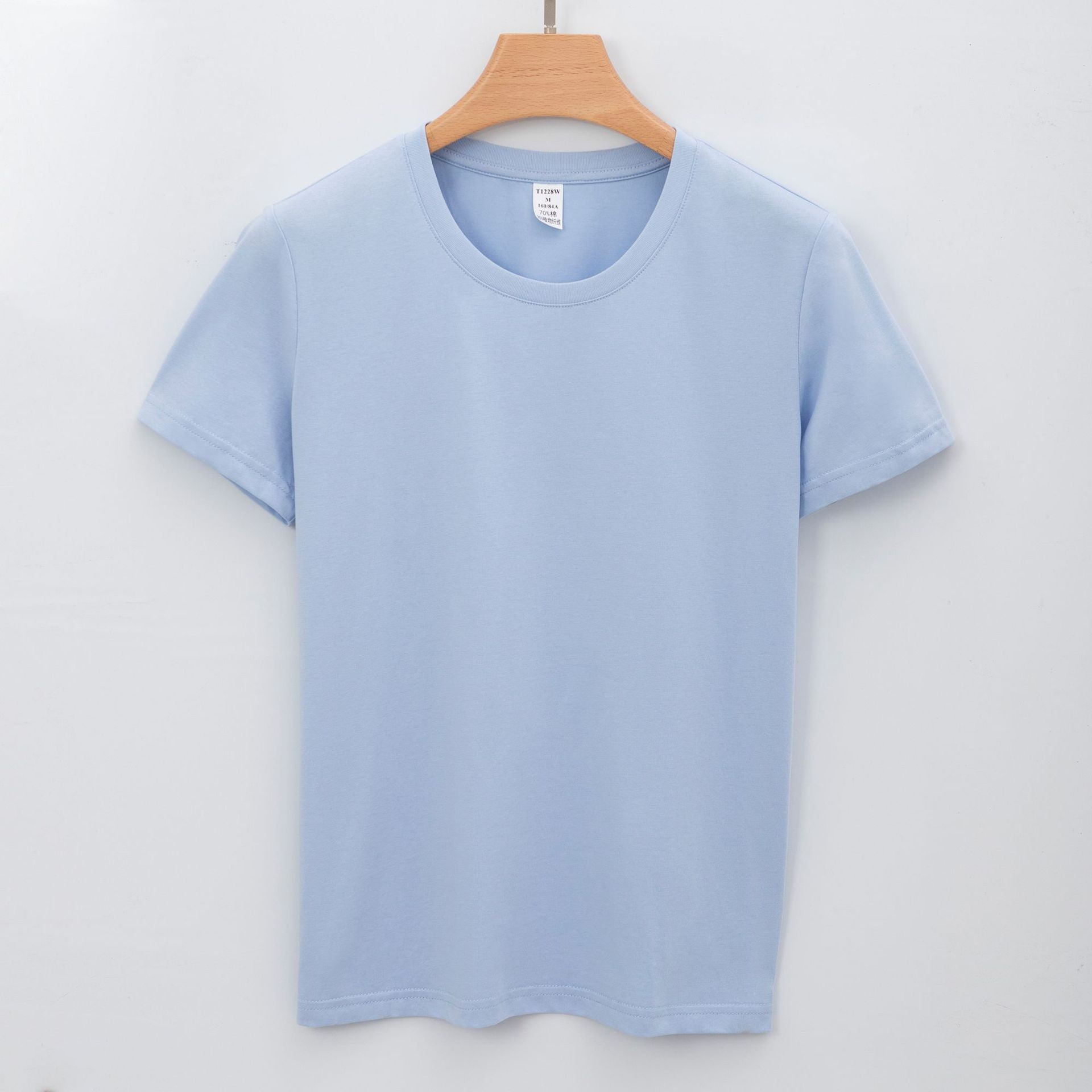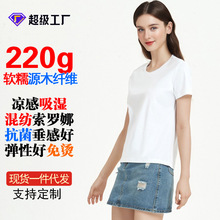 新双面液氨纯棉t恤短袖圆领纯色白色双面丝光棉女短袖夏季女式T恤
