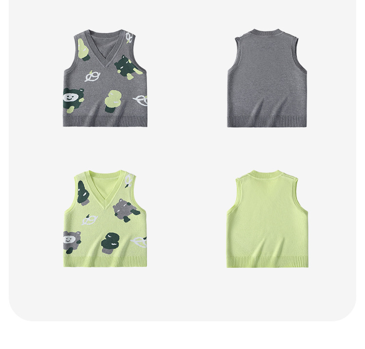 MQDmini 아동복 어린이 V-Neck 니트 조끼 봄 새로운 어린이 캐주얼 민소매 스웨터