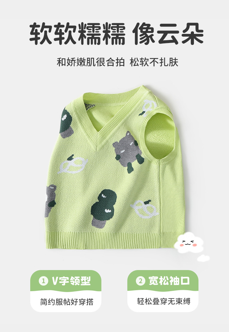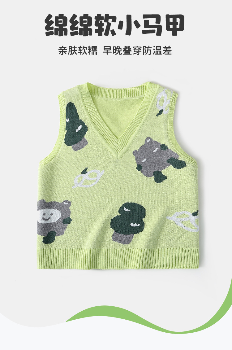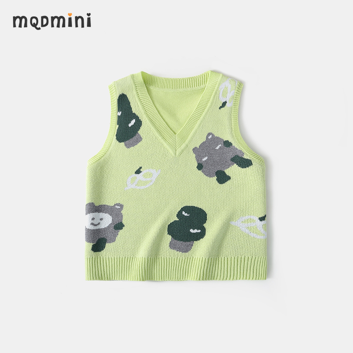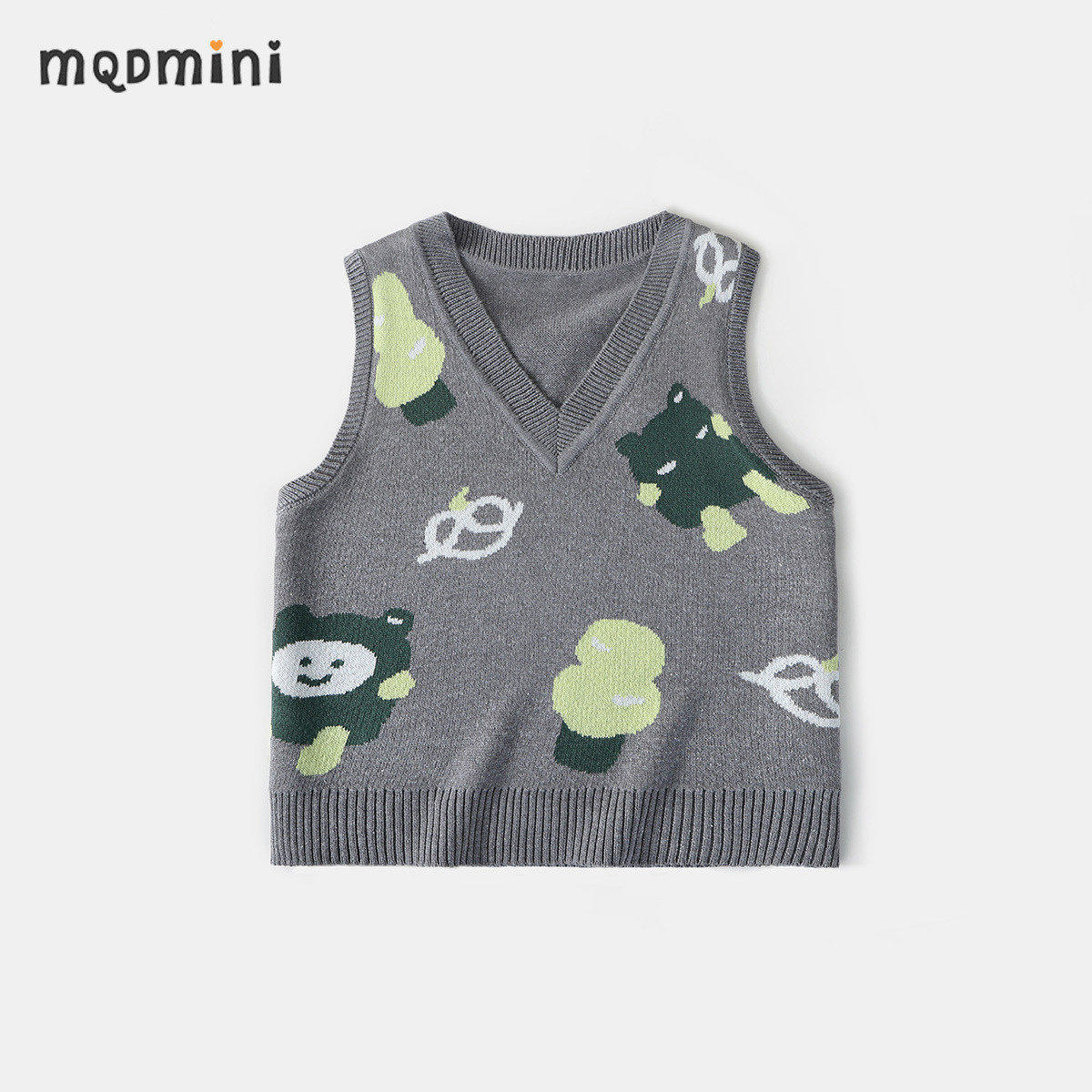 MQDmini 아동복 어린이 V-Neck 니트 조끼 봄 새로운 어린이 캐주얼 민소매 스웨터스토어 가기
