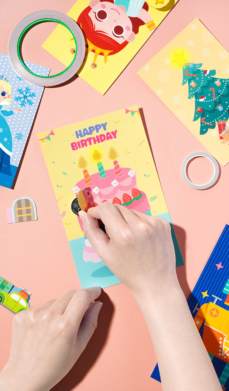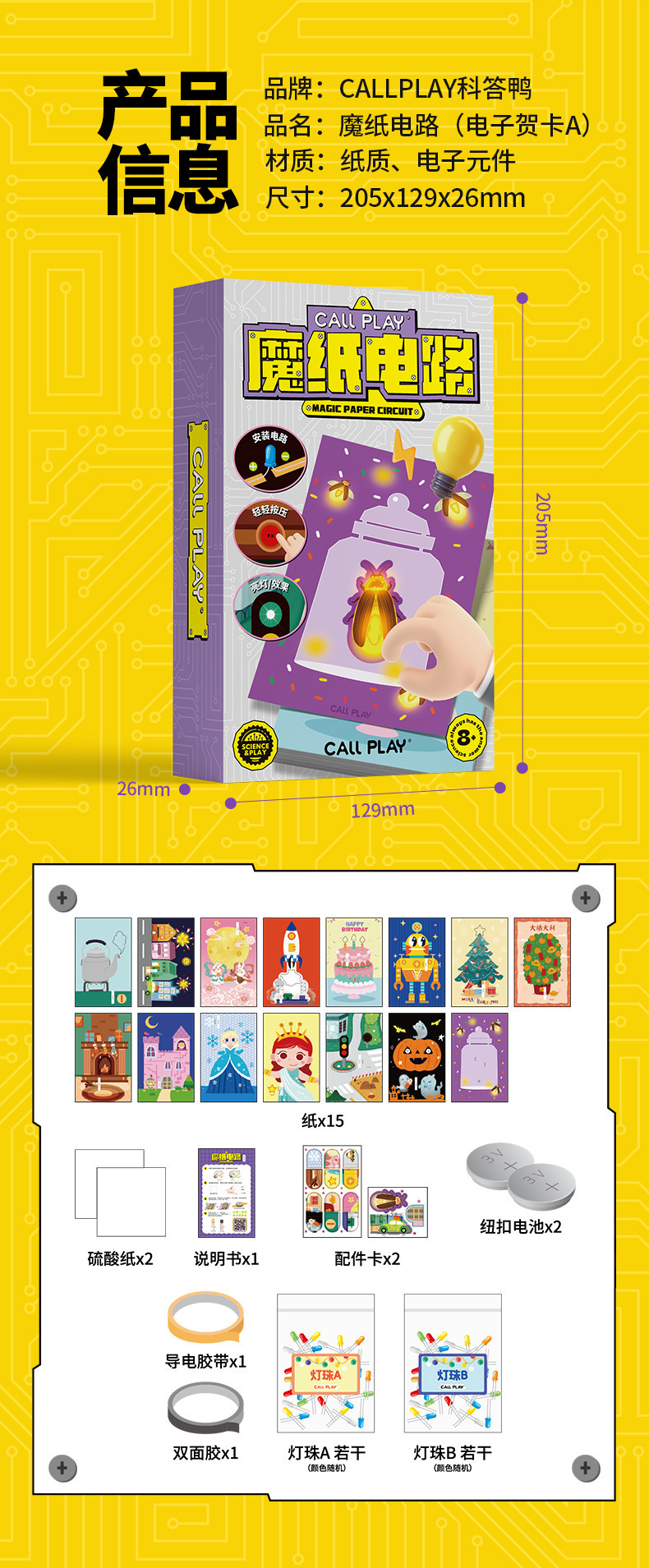 KoA 오리 새해 빛나는 인사말 카드 DIY 매직 종이 회로 과학 실험 재료 패키지 물리학 지식 교육 완구스토어 가기