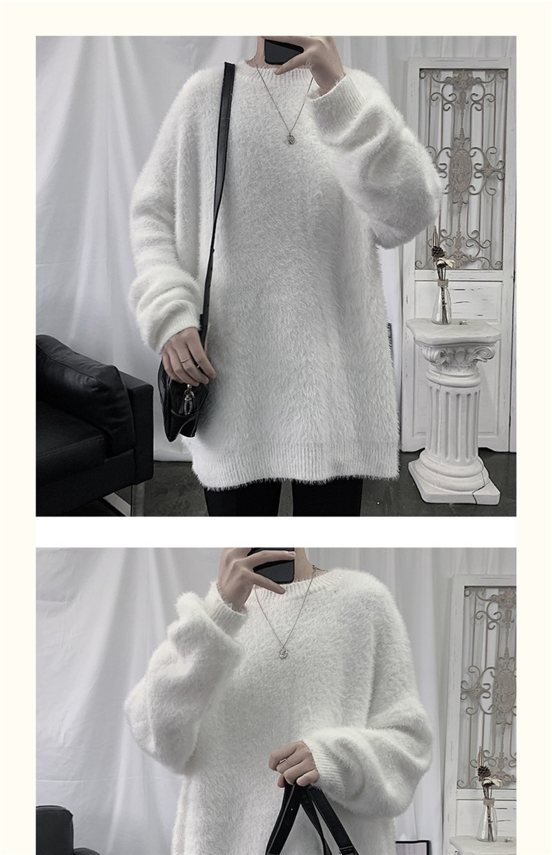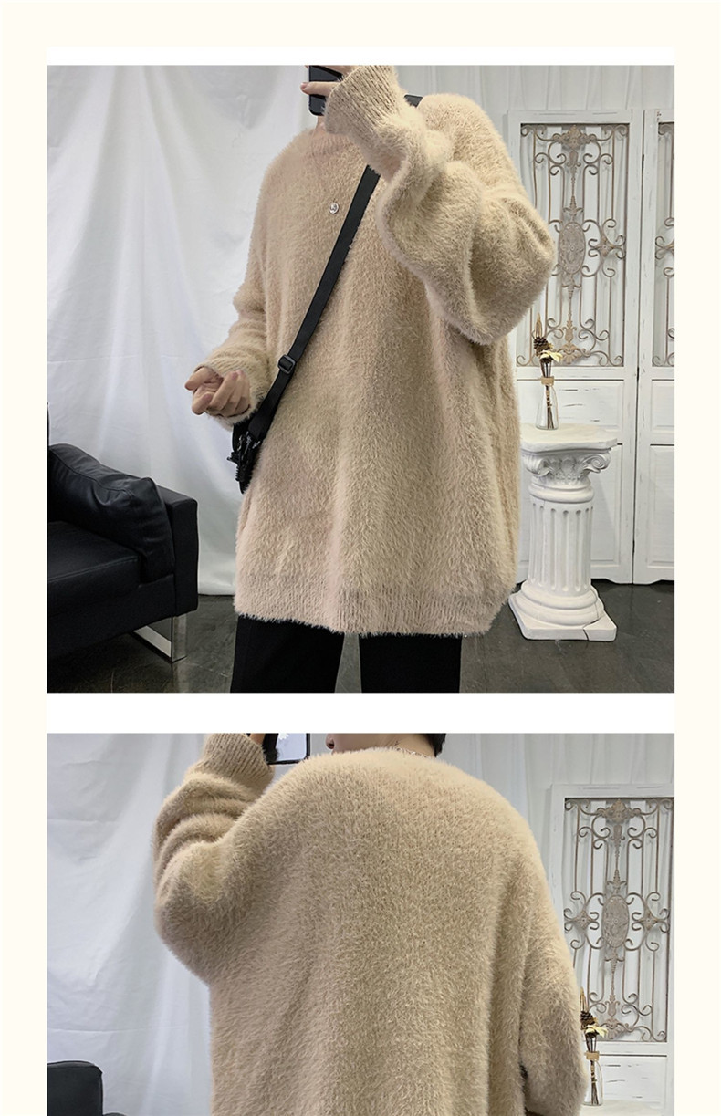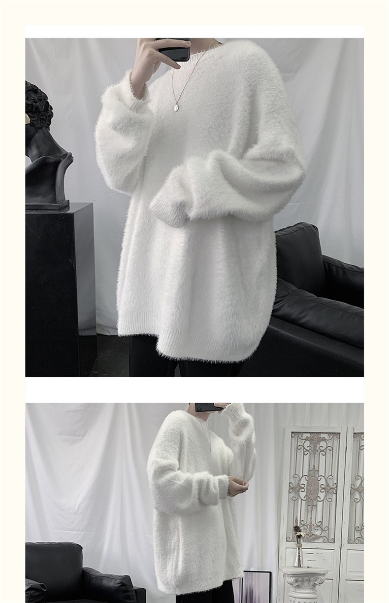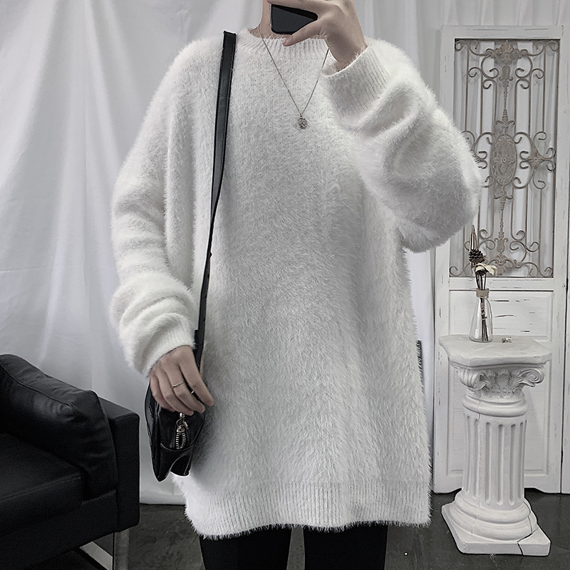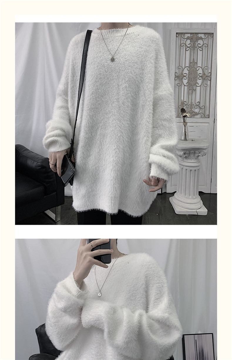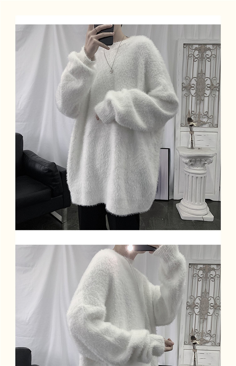 2025 가을과 겨울 두꺼운 크루 넥 스웨터 남성용 겉옷 느슨한 게으른 스타일 화이트 울 니트 재킷 한국 유행스토어 가기