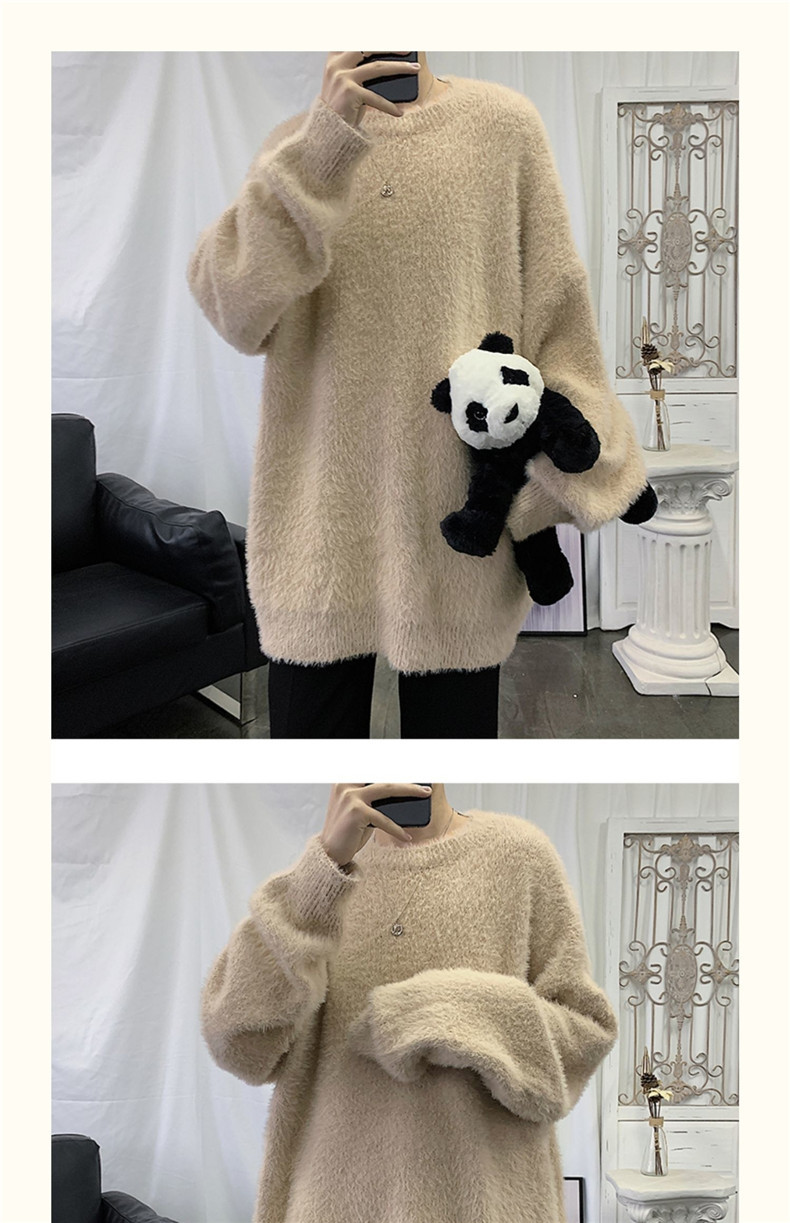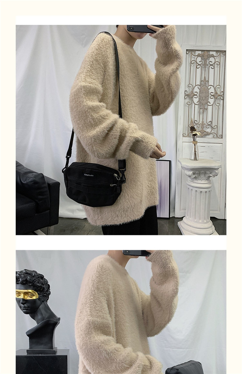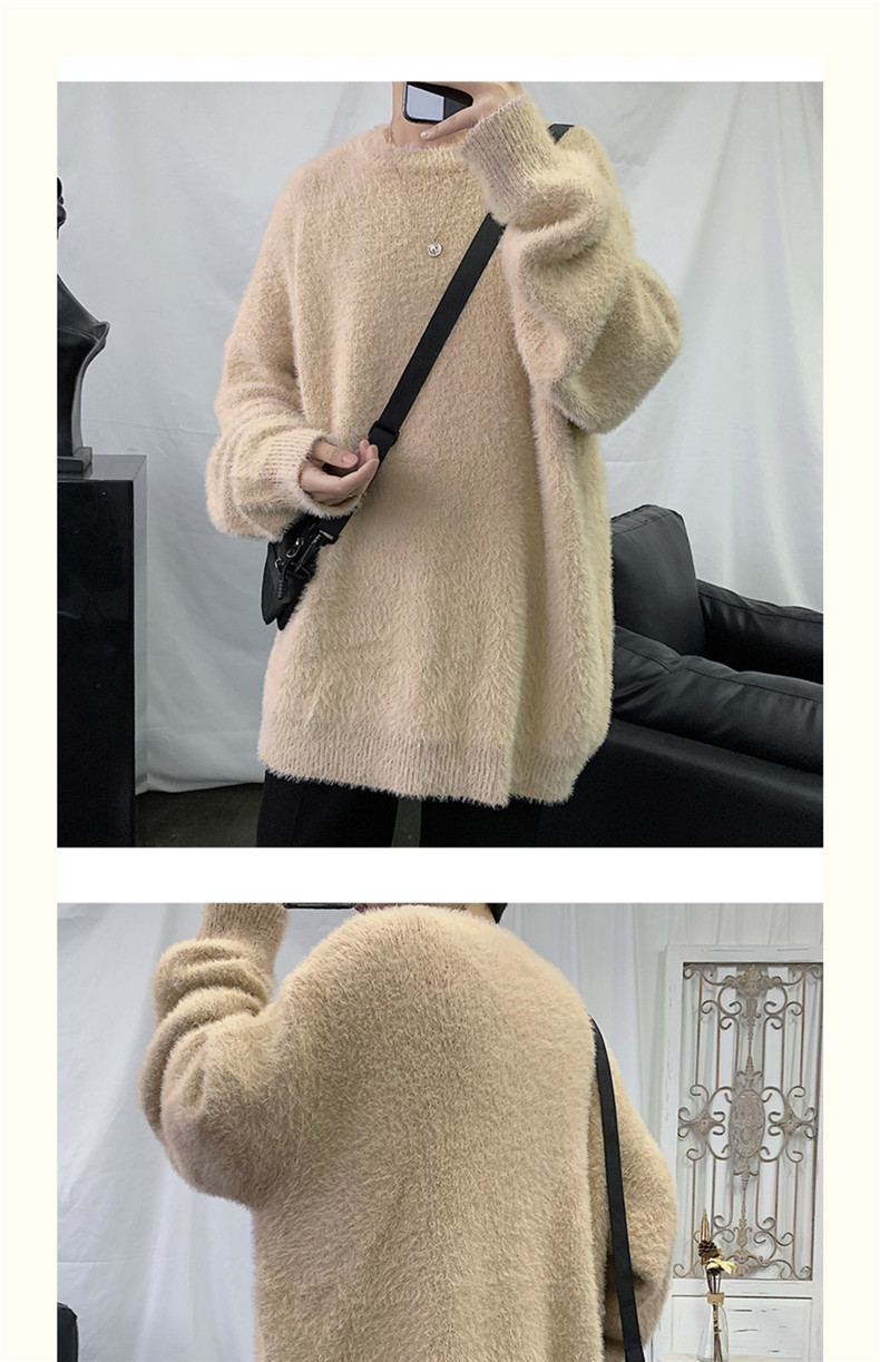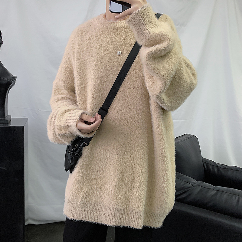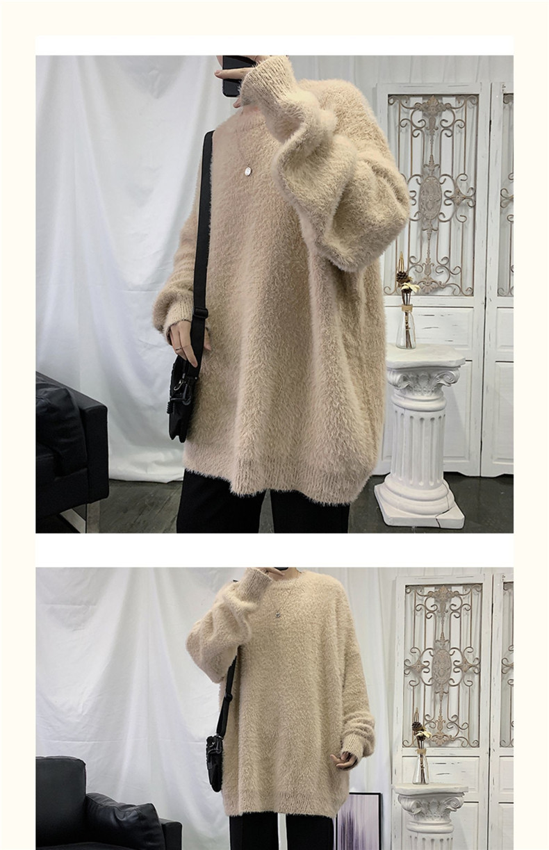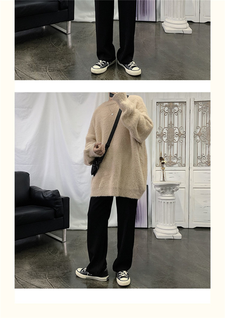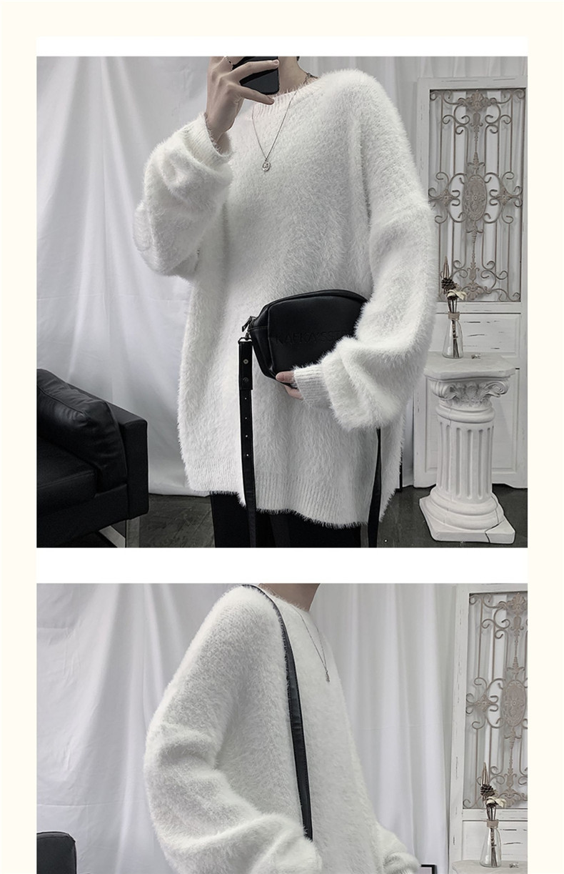 2025 가을과 겨울 두꺼운 크루 넥 스웨터 남성용 겉옷 느슨한 게으른 스타일 화이트 울 니트 재킷 한국 유행스토어 가기