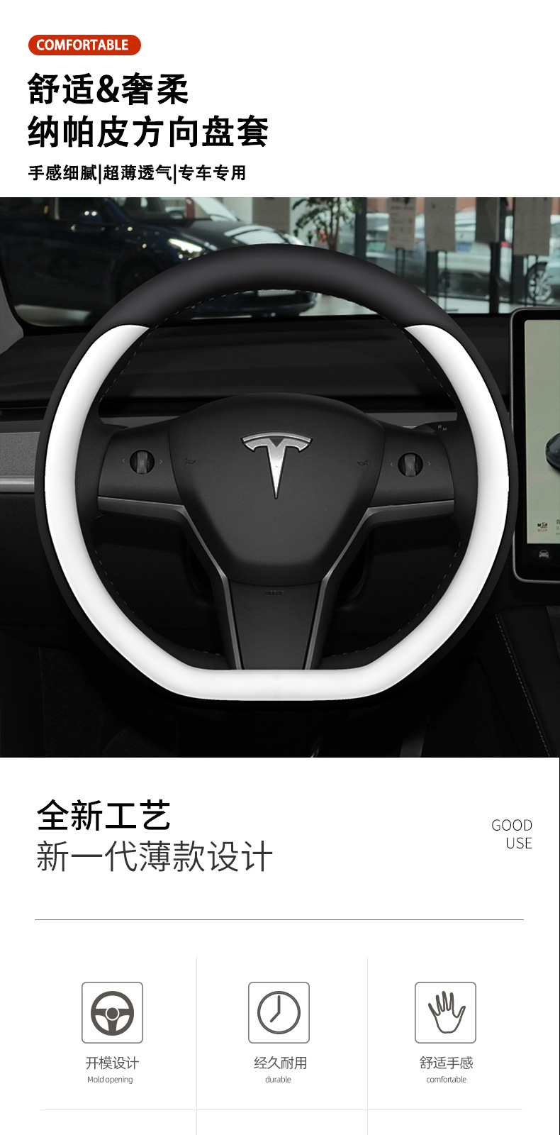 테슬라 스티어링 휠 커버 소프트 모델3 모델Y 테슬라 초박형 핸들 커버에 적합스토어 가기