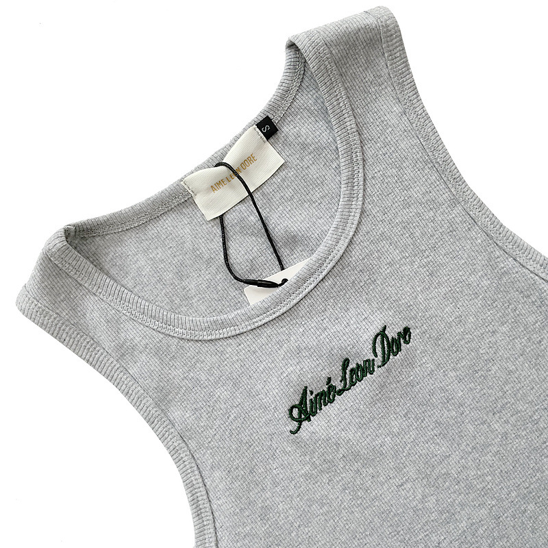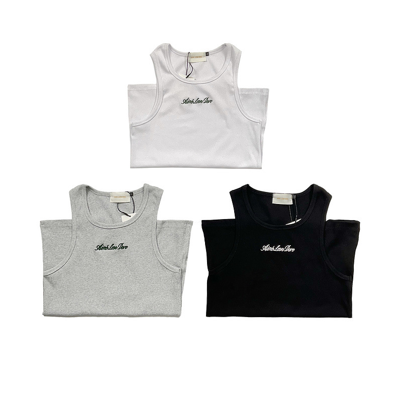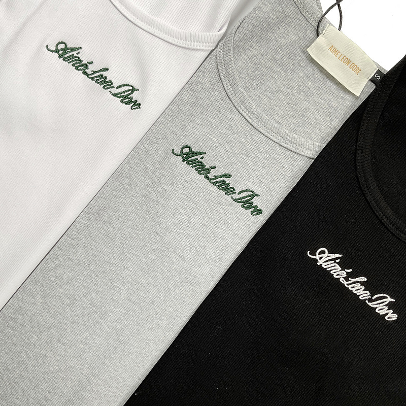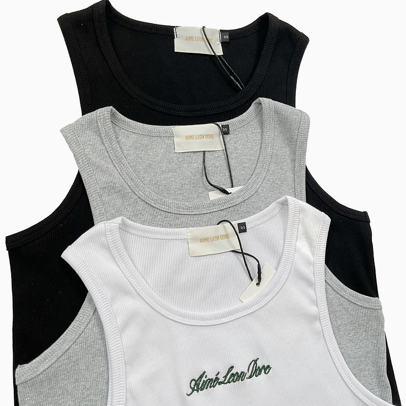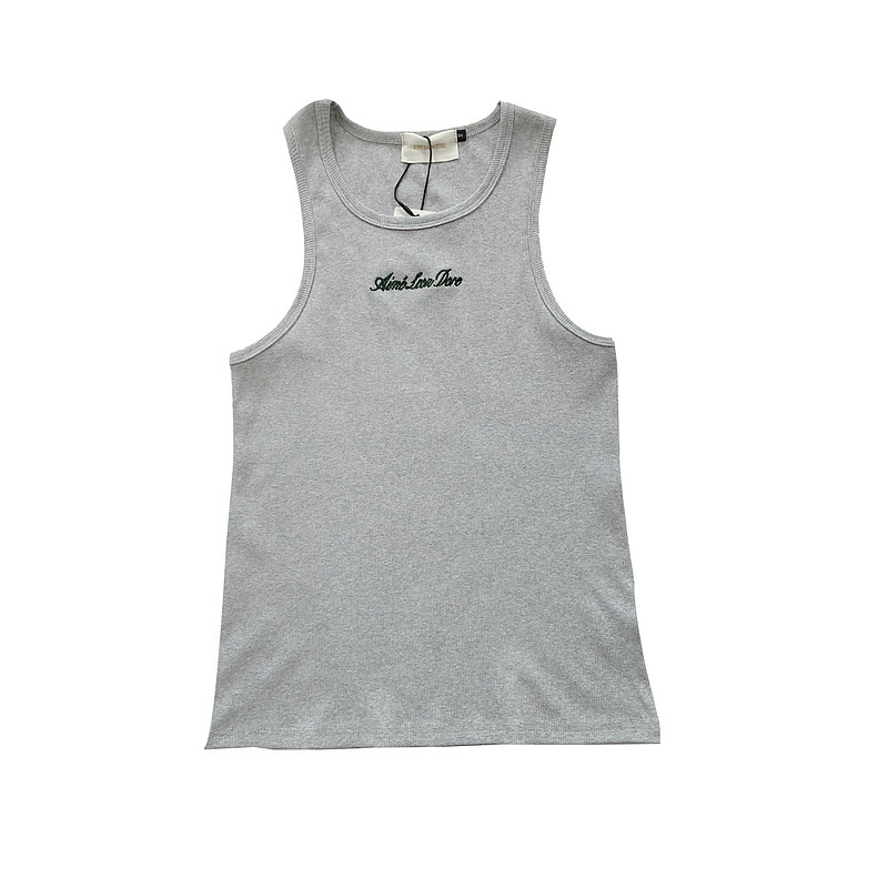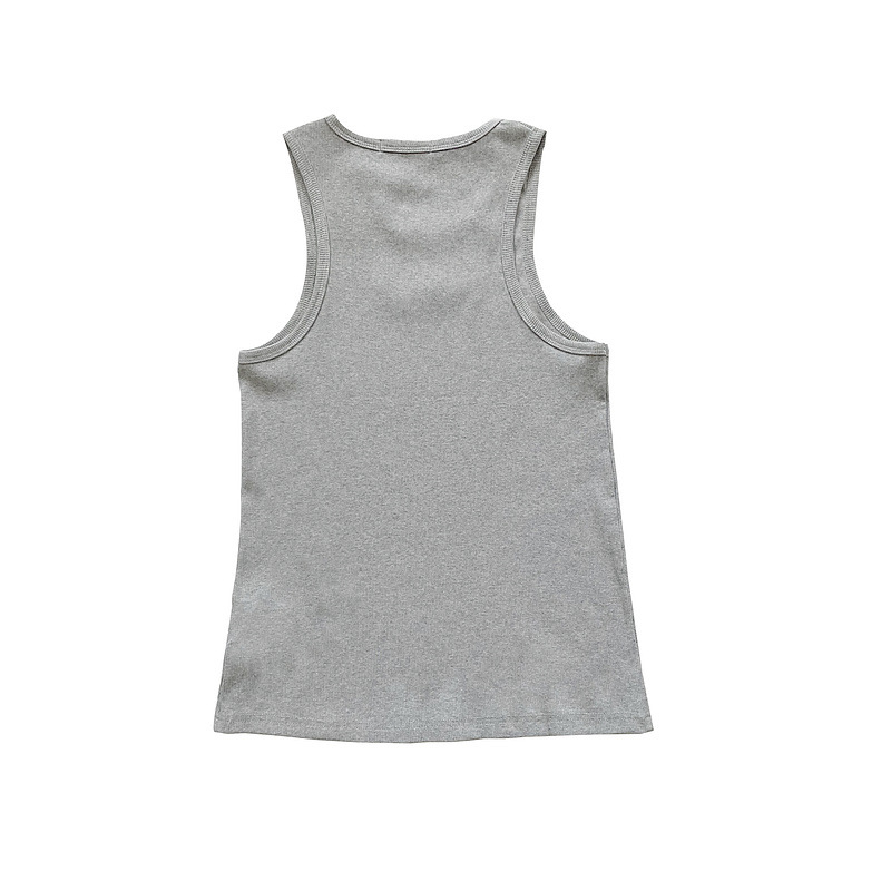 헤비급 미국 중공업 슬로건 자수 스레드 니트 솔리드 컬러 조끼 남성용 슬림 스포츠 피트니스 탑 트렌디스토어 가기
