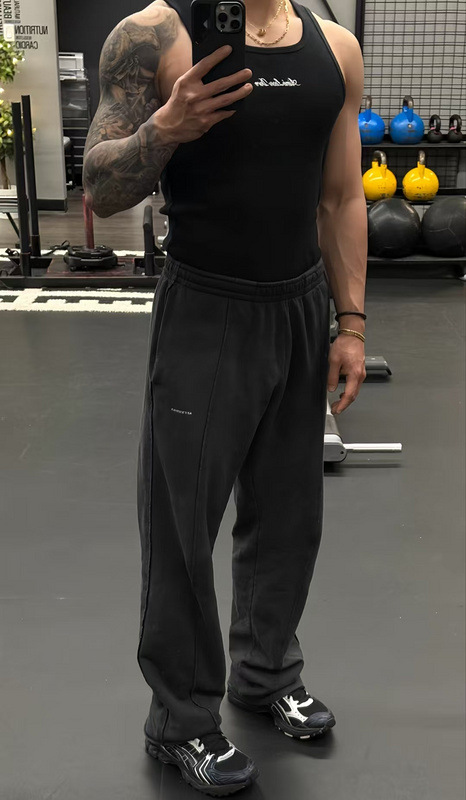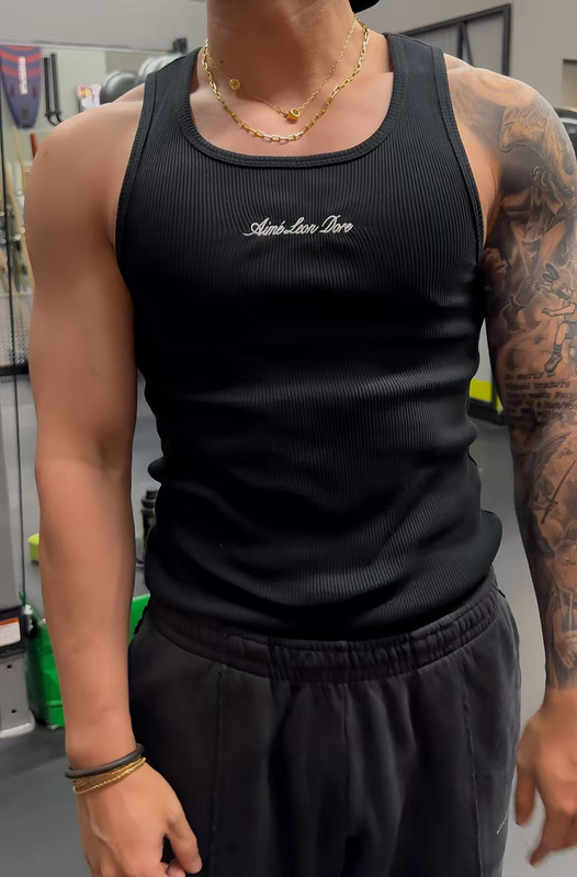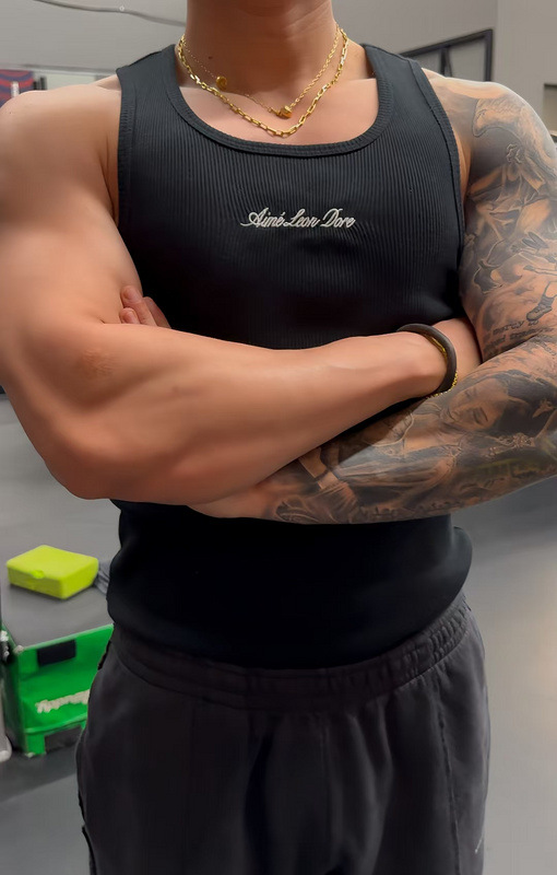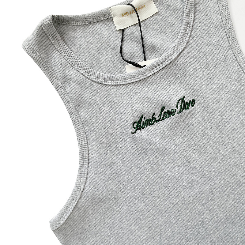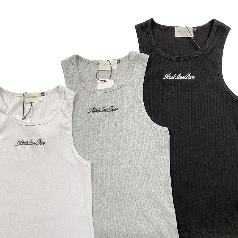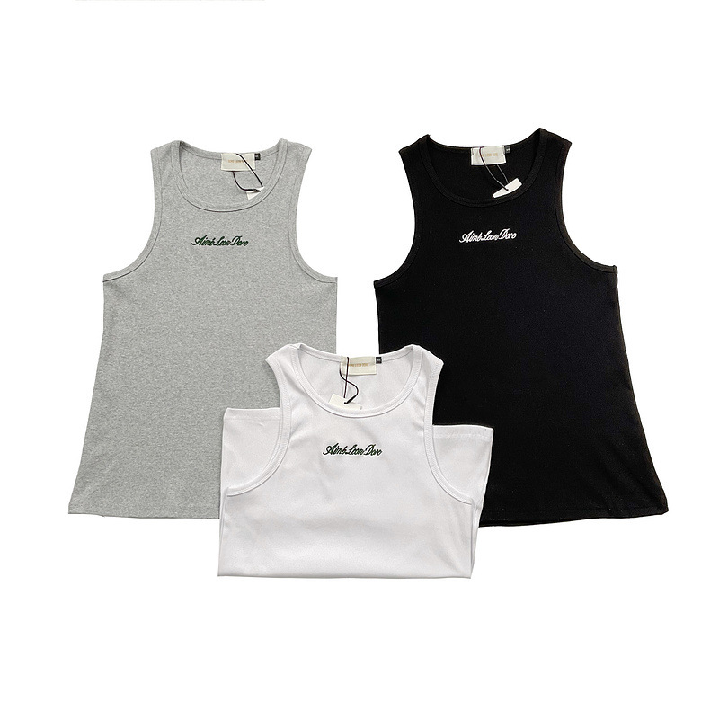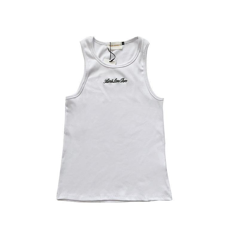 헤비급 미국 중공업 슬로건 자수 스레드 니트 솔리드 컬러 조끼 남성용 슬림 스포츠 피트니스 탑 트렌디스토어 가기