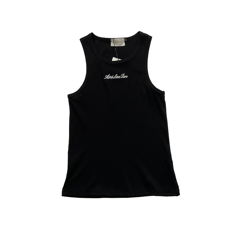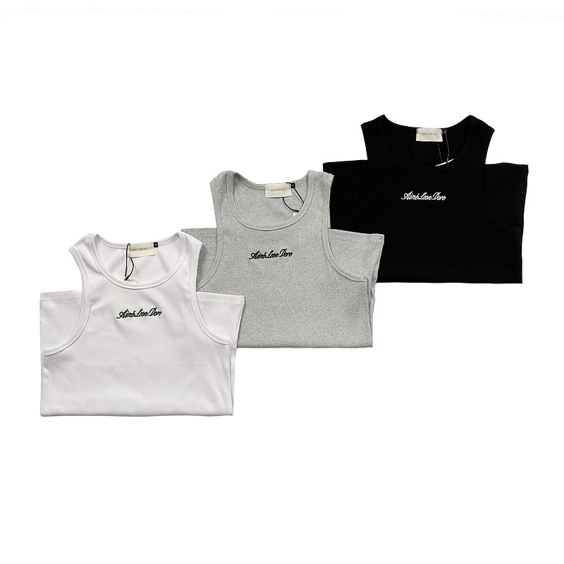 헤비급 미국 중공업 슬로건 자수 스레드 니트 솔리드 컬러 조끼 남성용 슬림 스포츠 피트니스 탑 트렌디