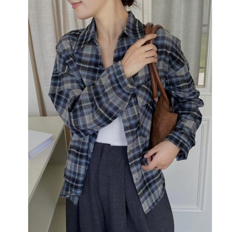 공장 직판 체크무늬 셔츠 여성용 긴팔 2026 봄 가을 신상 홍콩 스타일 문학적 복고풍 레이어드 이너 셔츠스토어 가기