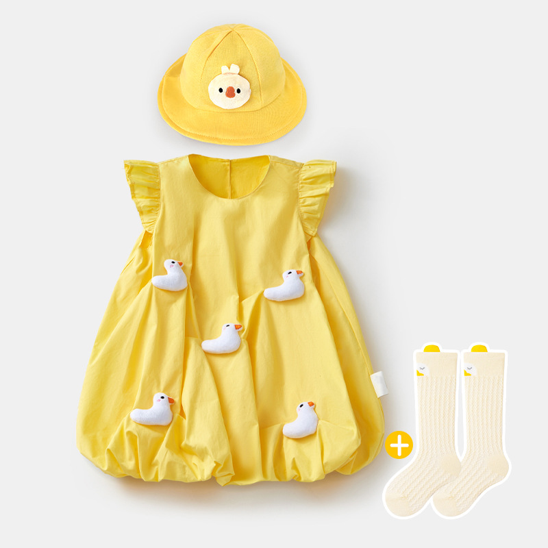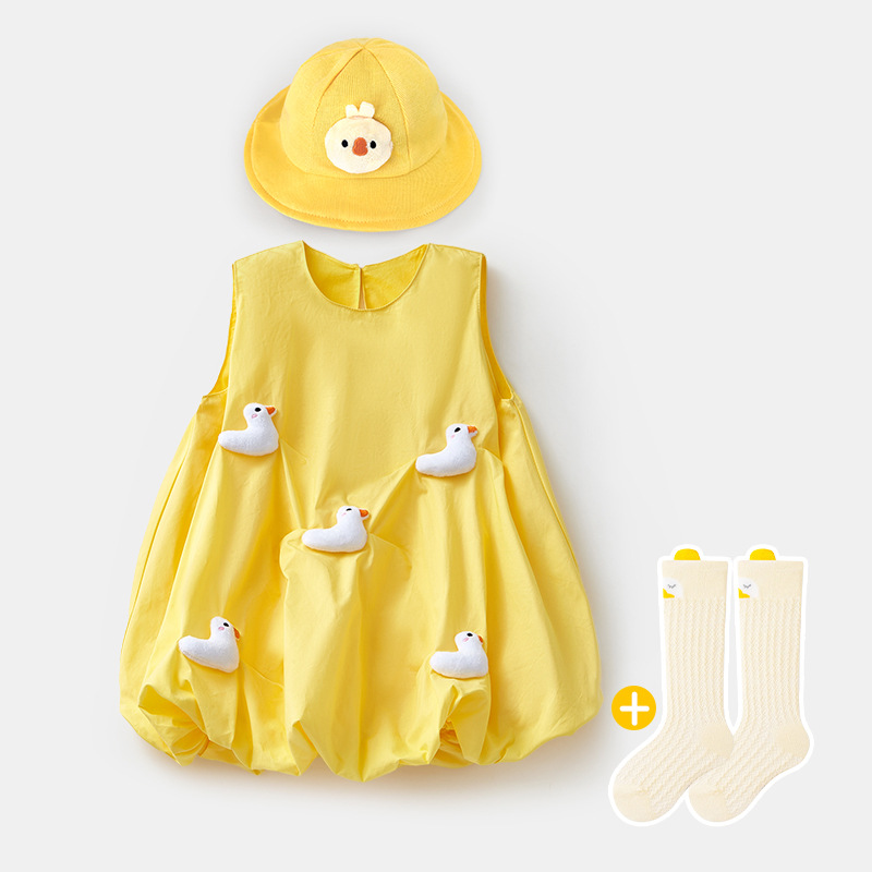 • 노란색 민소매 스커트 + 오리 모자 + 오리 스타킹