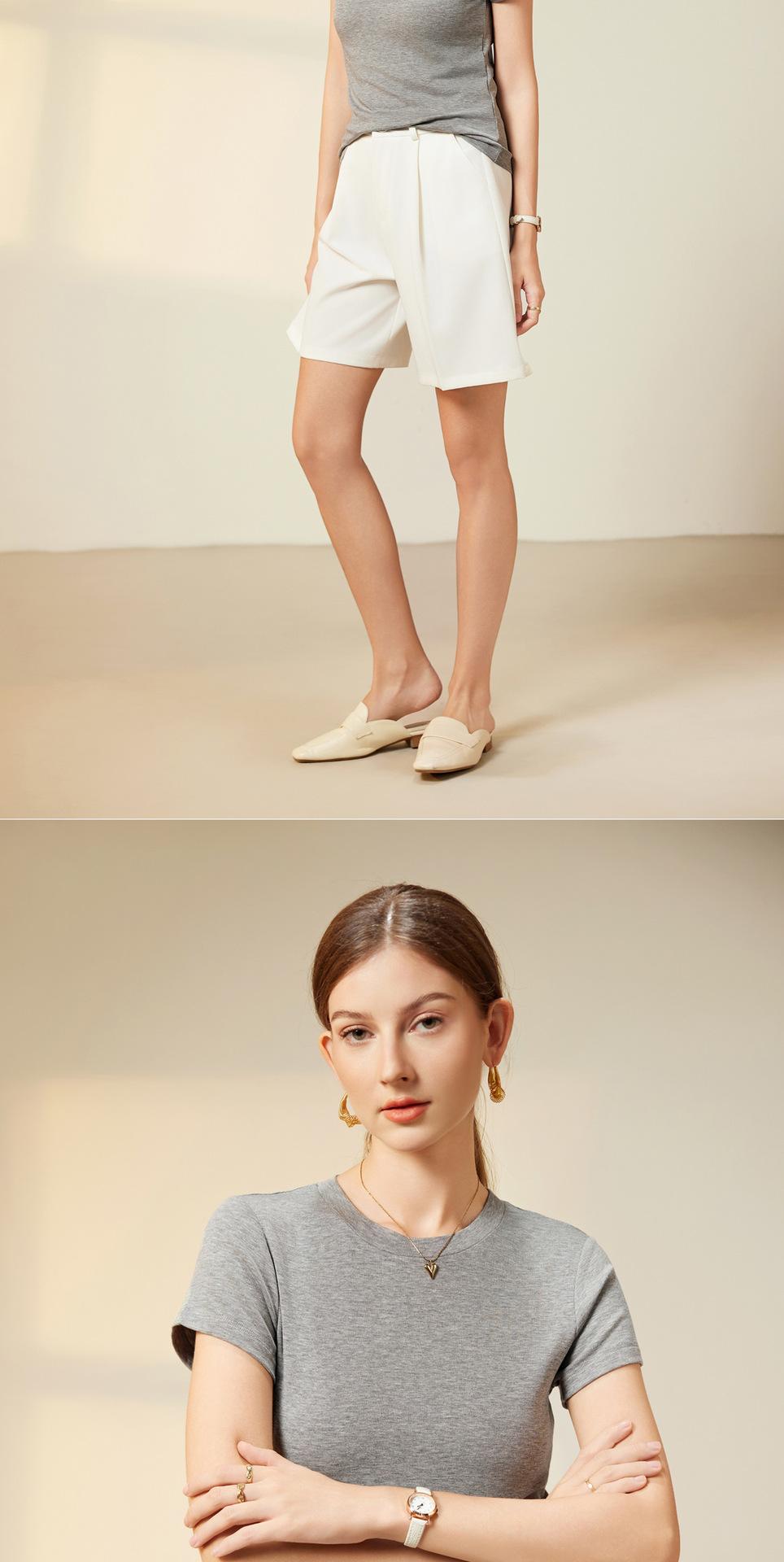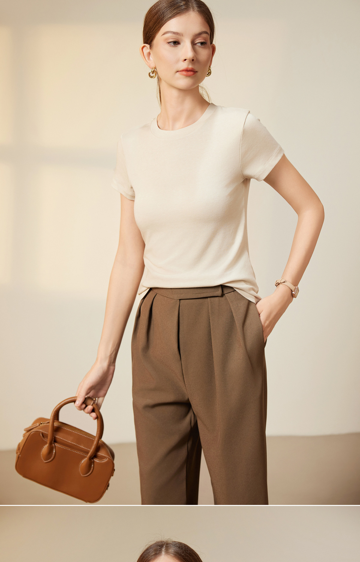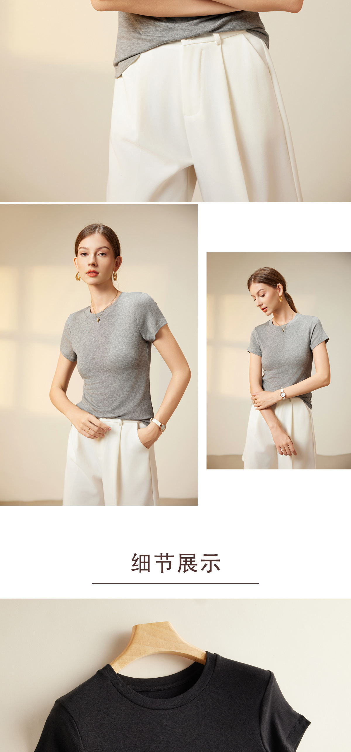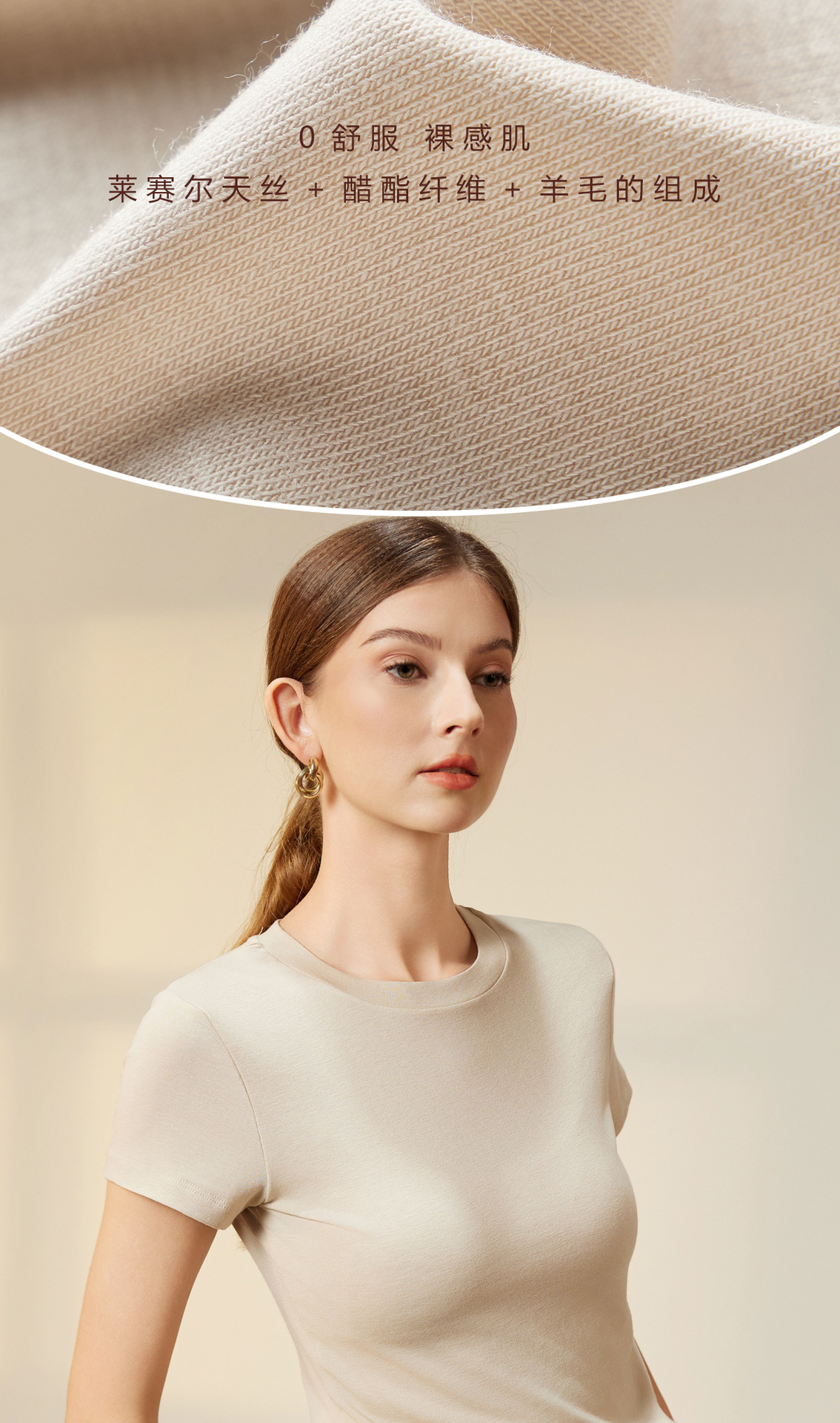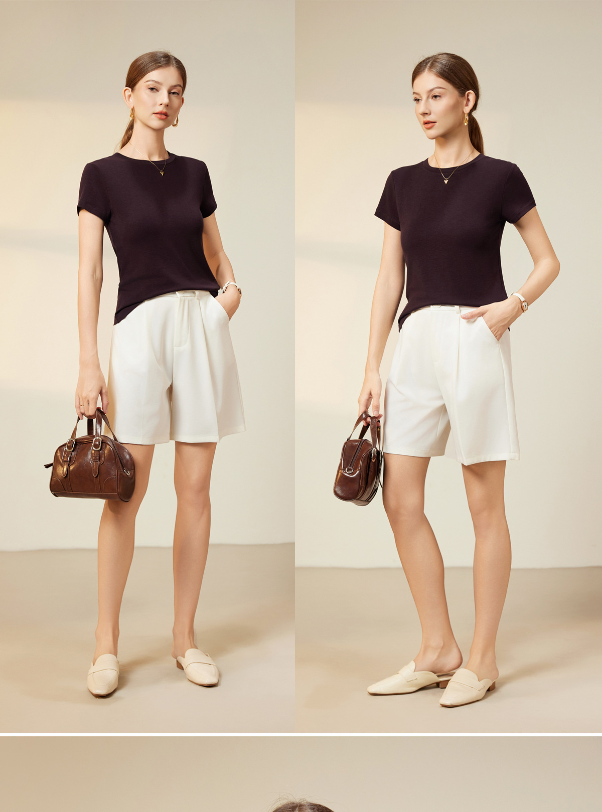 새로운! 여성용 자이언트 소프트 스몰 라운드 넥 탑 2025 봄 여름 여성용 리오셀 + 아세테이트 + 울 티셔츠스토어 가기