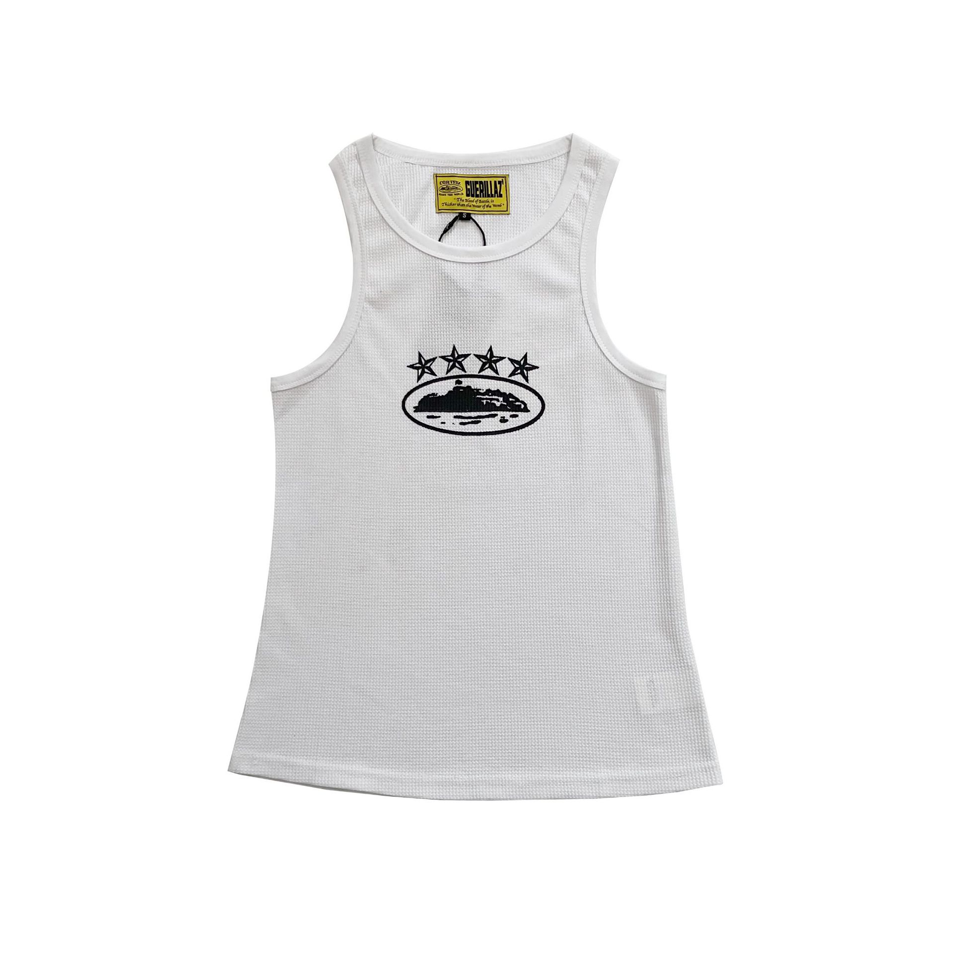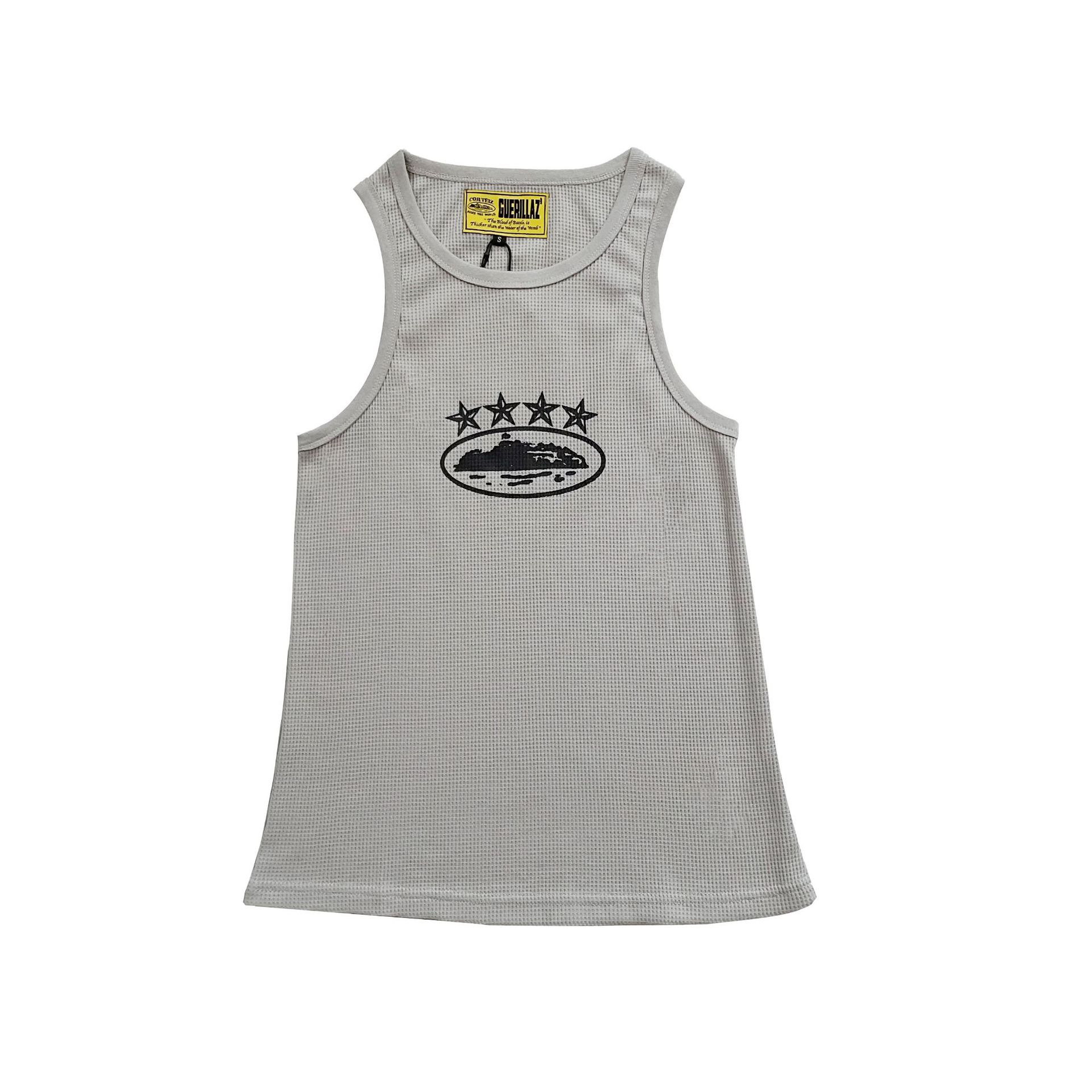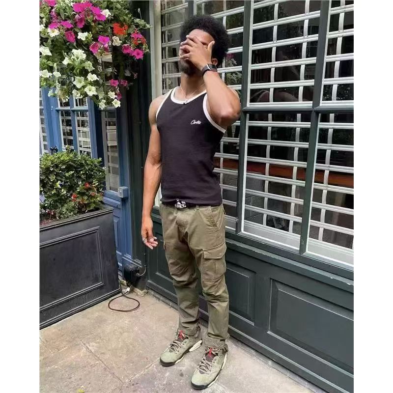 CZ Alcatraz 헤비급 미국 중공업 자수 스레드 니트 조끼 남성 슬림 스포츠 피트니스 탑 트렌디스토어 가기