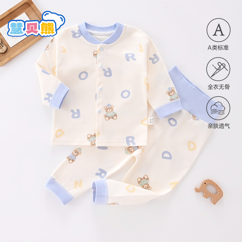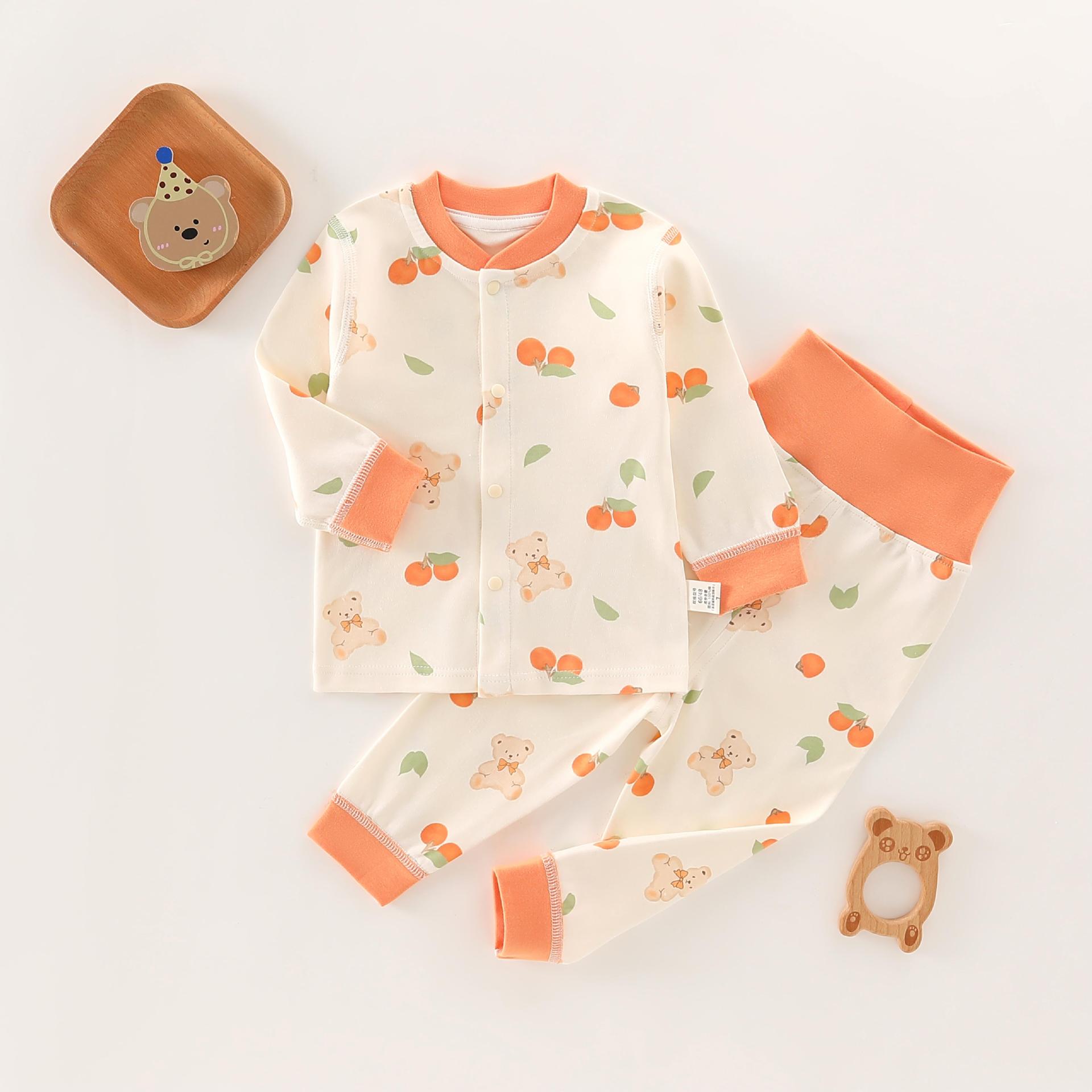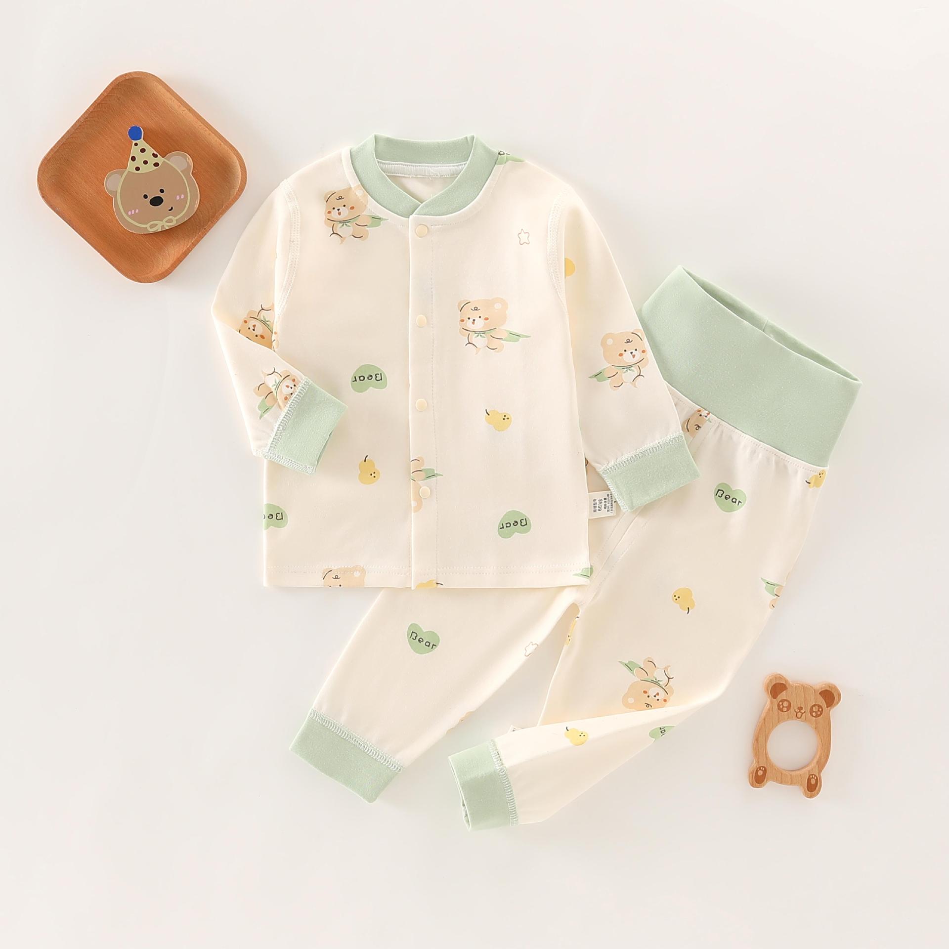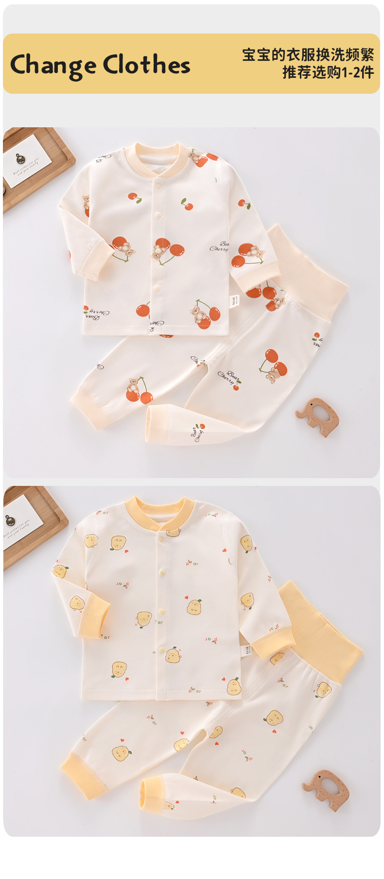 아기 사계절 순면 분할 세트 아기 클래스 봄과 가을 높은 허리 배꼽 보호 두꺼운 옷 가을 옷과 바지스토어 가기