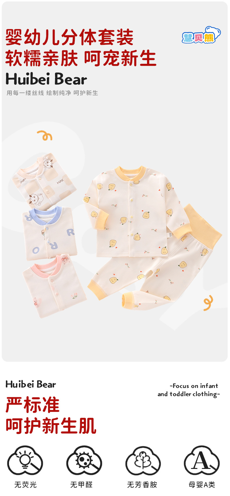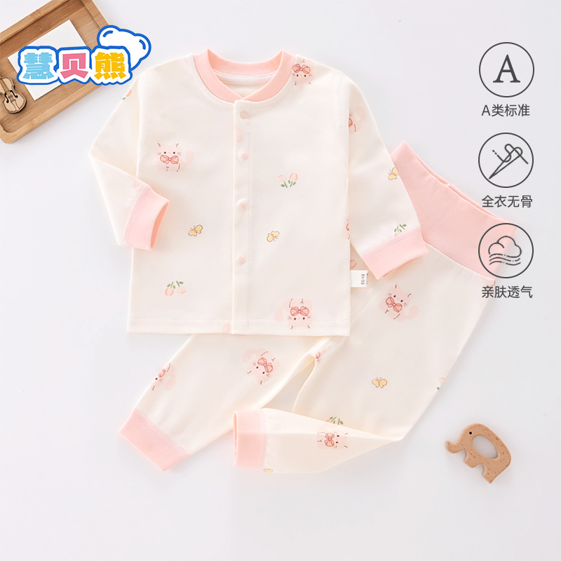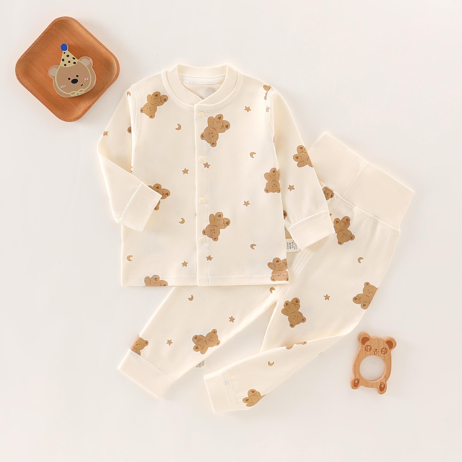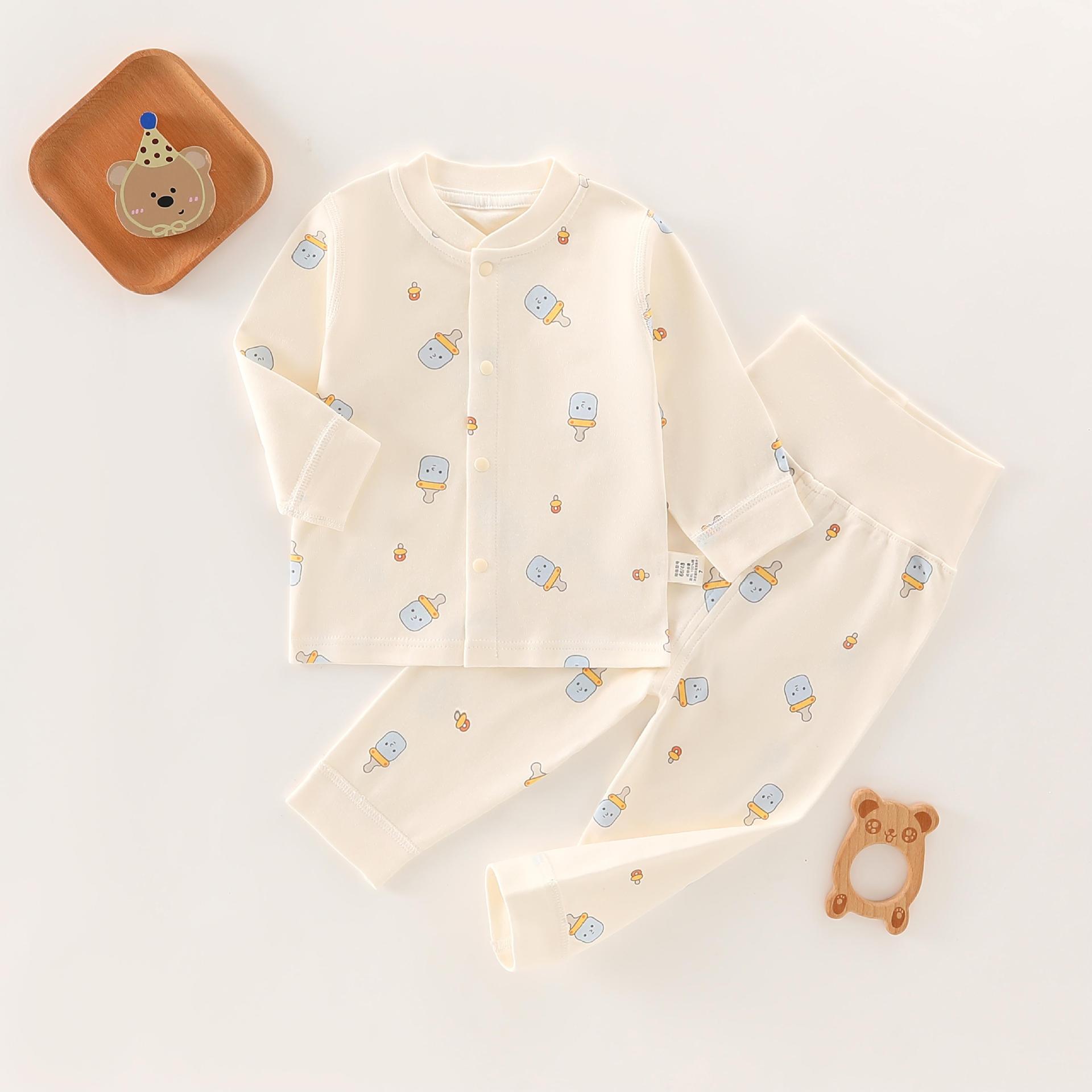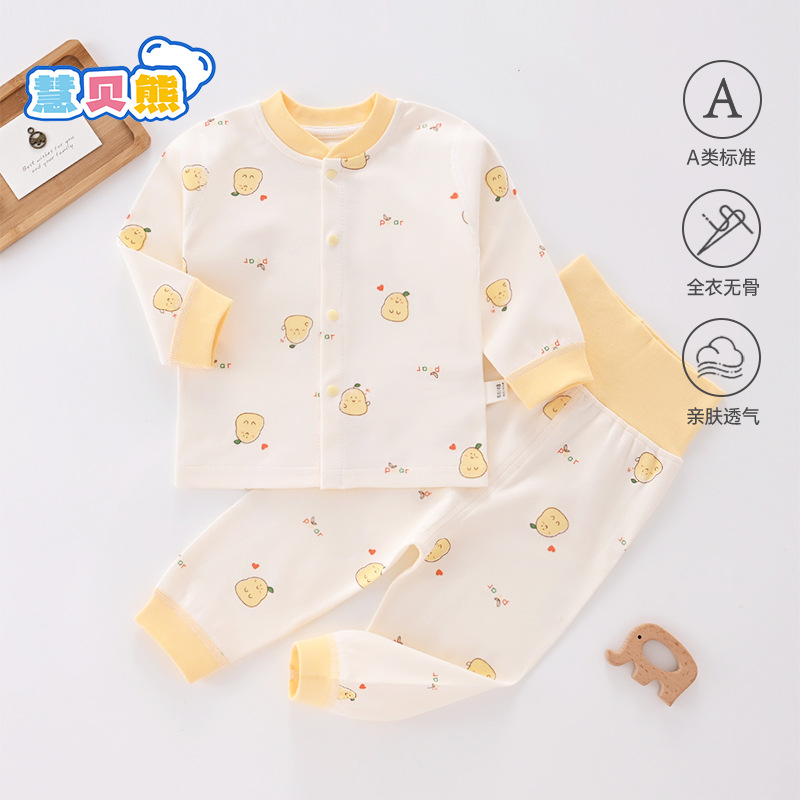 아기 사계절 순면 분할 세트 아기 클래스 봄과 가을 높은 허리 배꼽 보호 두꺼운 옷 가을 옷과 바지스토어 가기